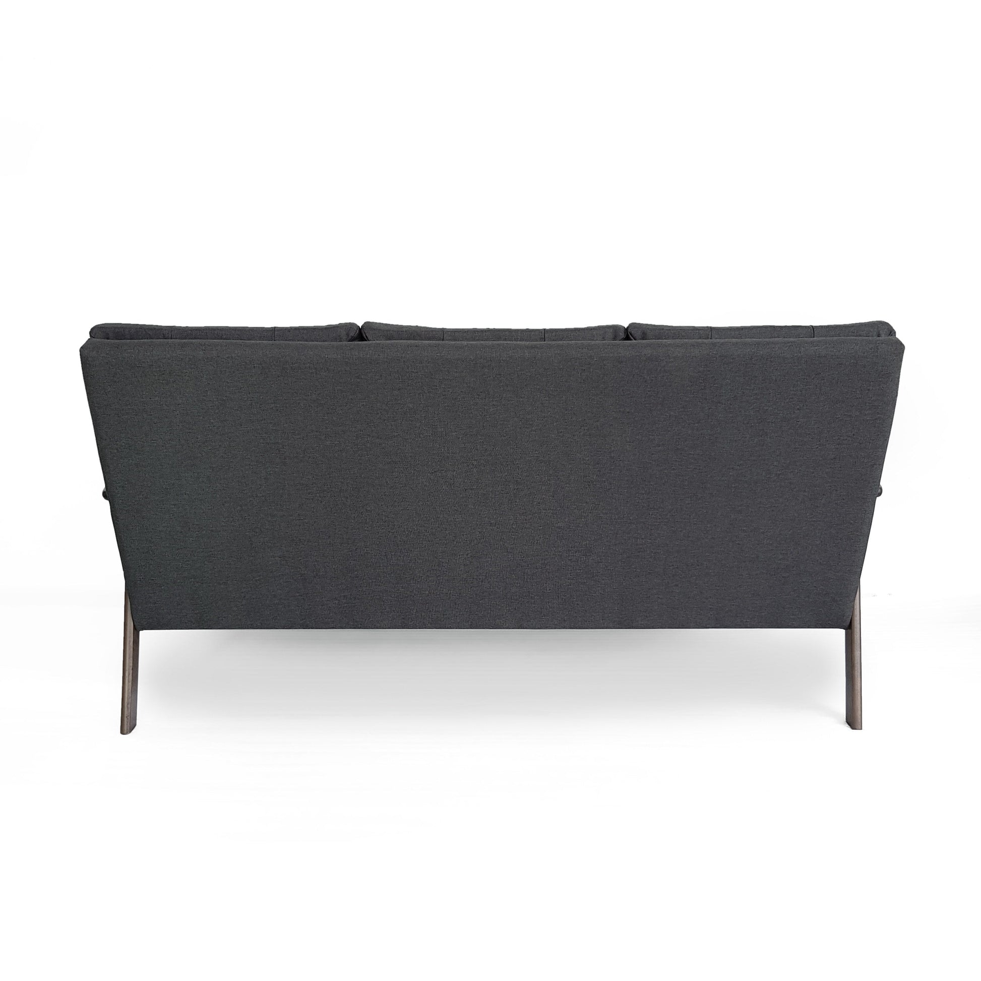 Canapé 3 places gris anthracite style Mid-Century avec capitonnage à boutons et pieds en bois d'hévéa pour le salon