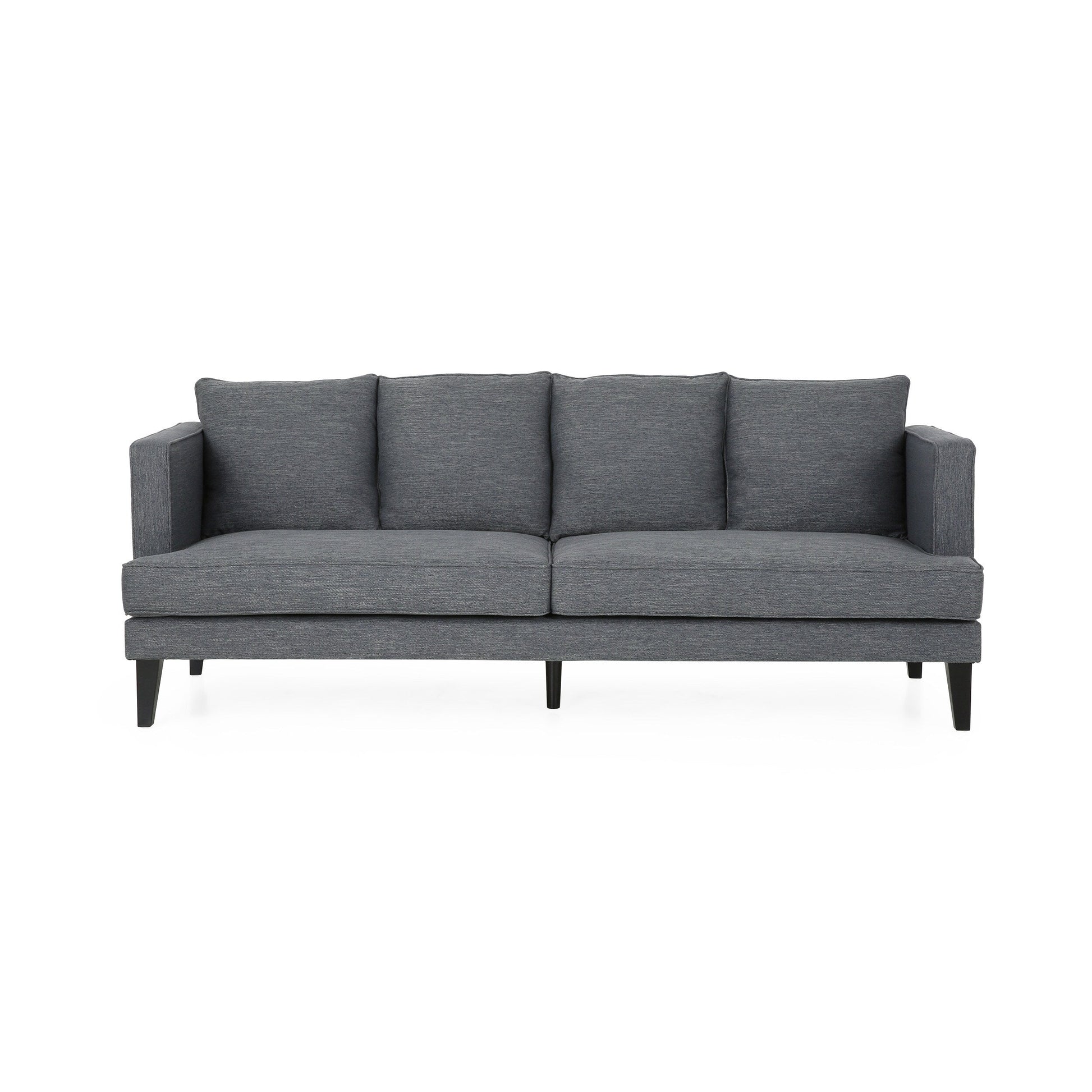 Canapé 3 places moderne anthracite 86 avec pieds en bois et dossier capitonné pour le salon