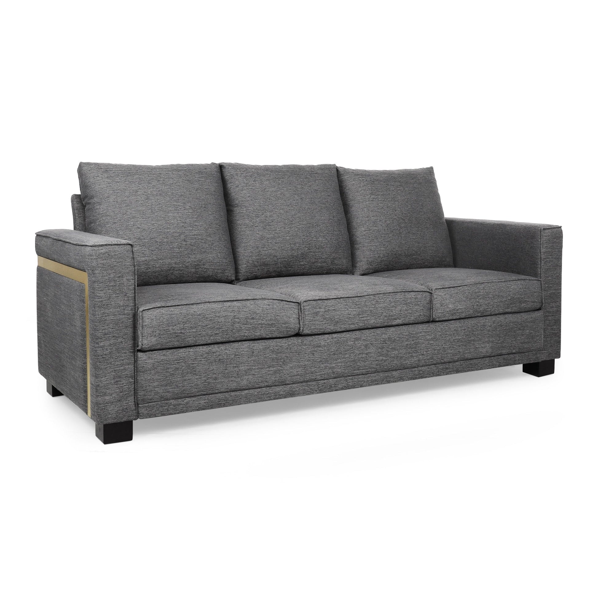 Canapé 3 places rembourré en anthracite avec coussins et pieds en bois