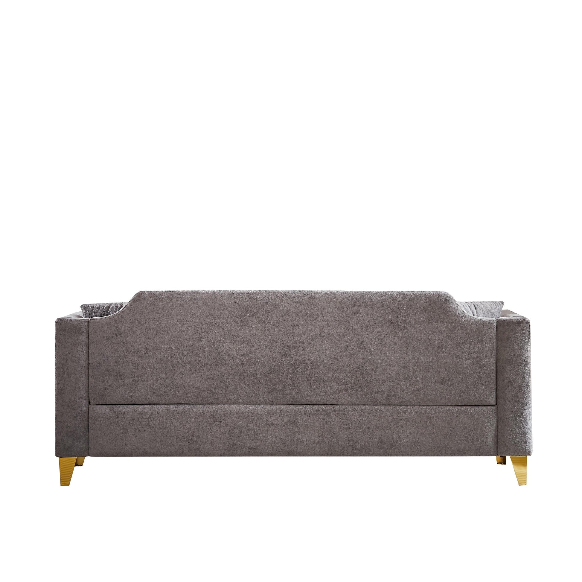 - L'association unique de pieds en métal doré et de clous en laiton sur les accoudoirs lui confère une allure haut de gamme. Le design des boutons incrustés lui confère également une touche de noblesse. Ce canapé apportera une touche lumineuse et harmonieuse à votre intérieur ou à votre bureau.