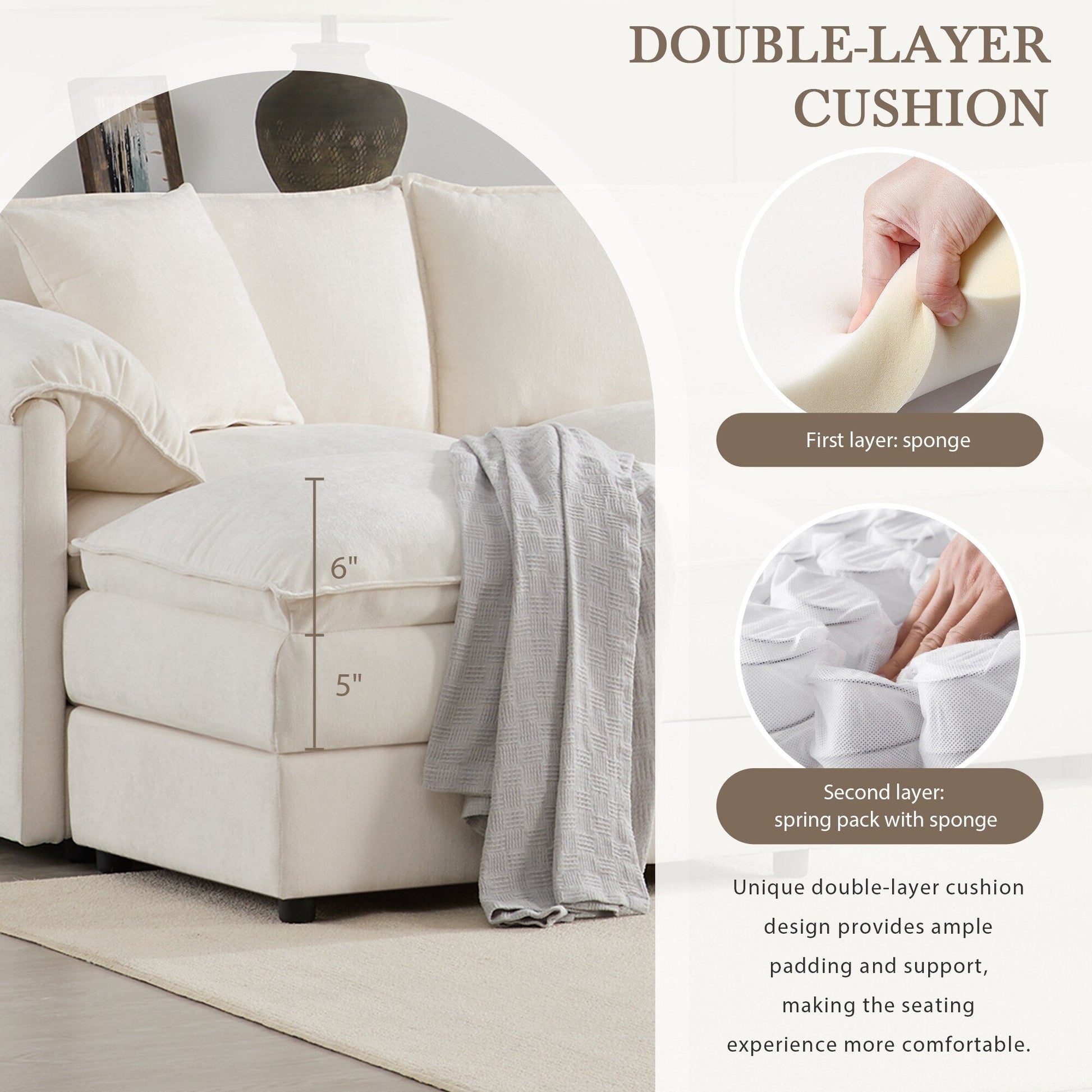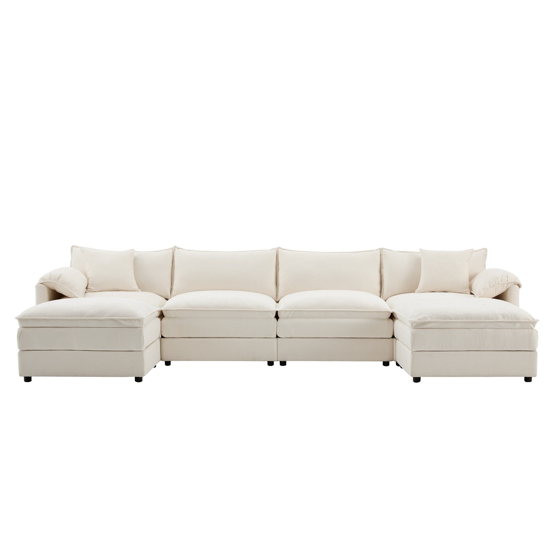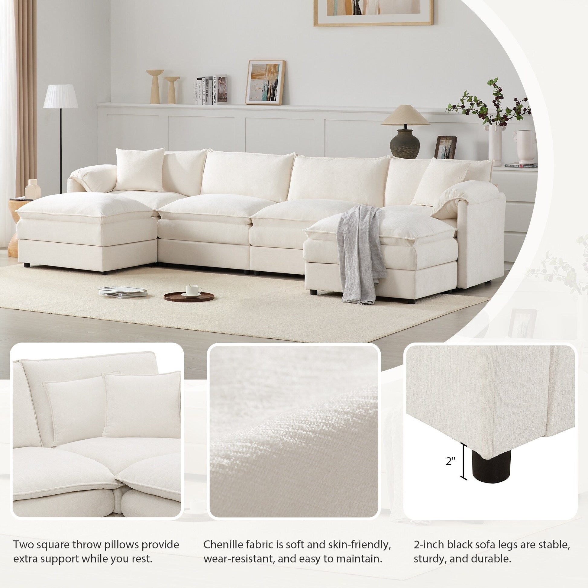 Canapé modulaire sectionnel en chenille, ensemble de canapés nuage en U avec coussins doubles, canapé 6 places avec poufs amovibles