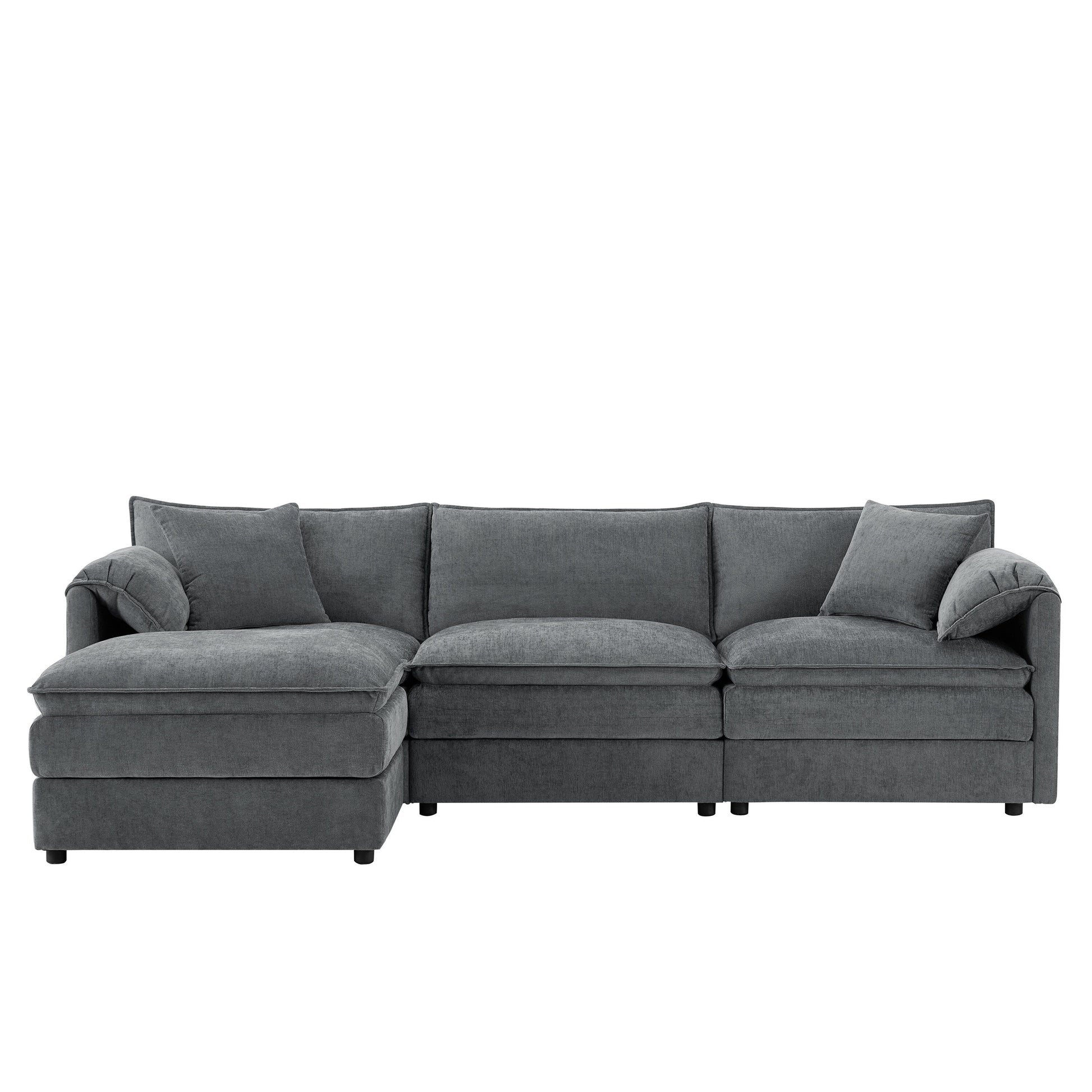 Canapé modulaire sectionnel en chenille avec assise profonde et large, ensemble de canapés nuage en L avec coussins doubles, canapé avec pouf amovible