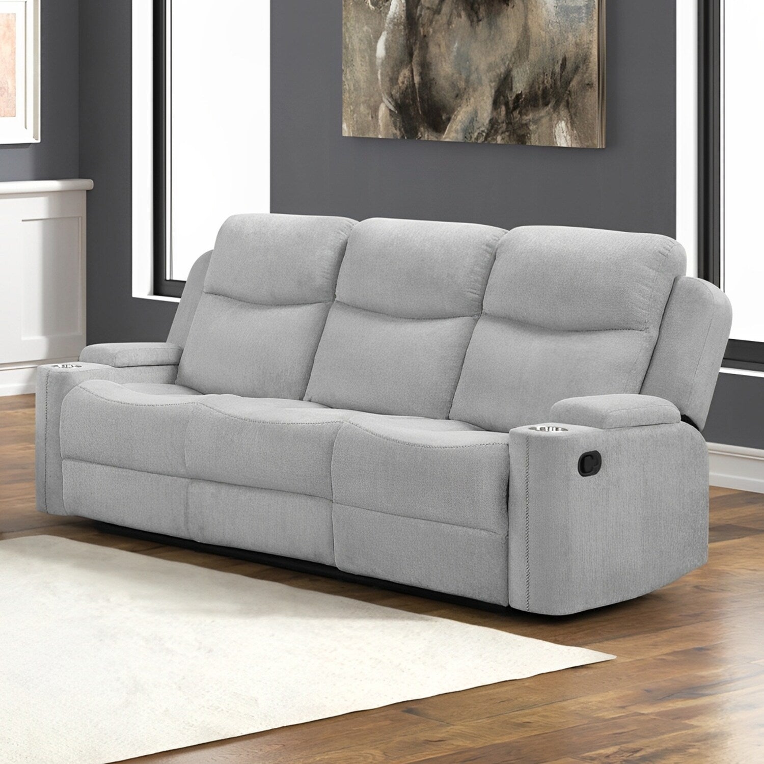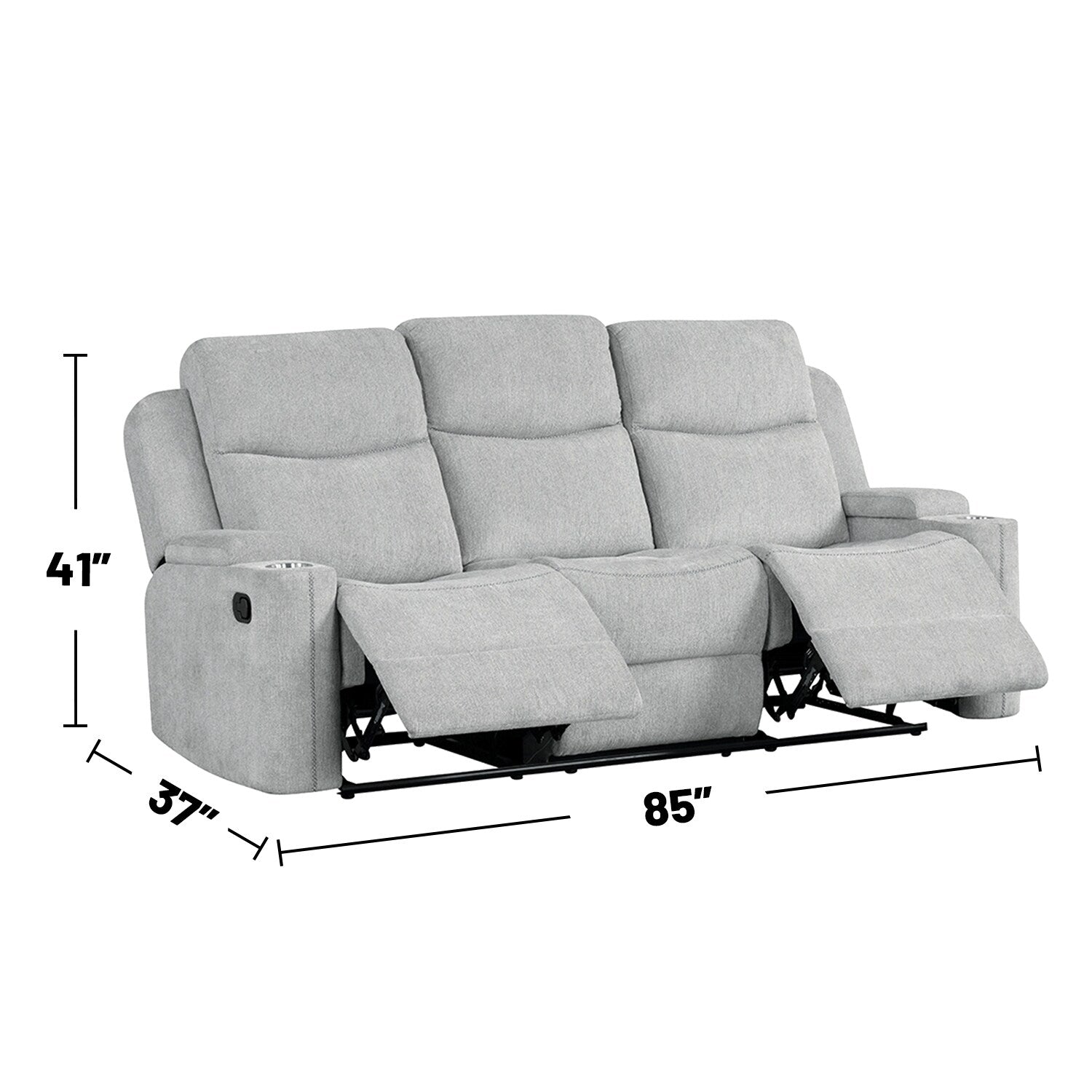 Canapé à mouvement manuel rembourré en chenille avec 2 porte-gobelets, gris clair