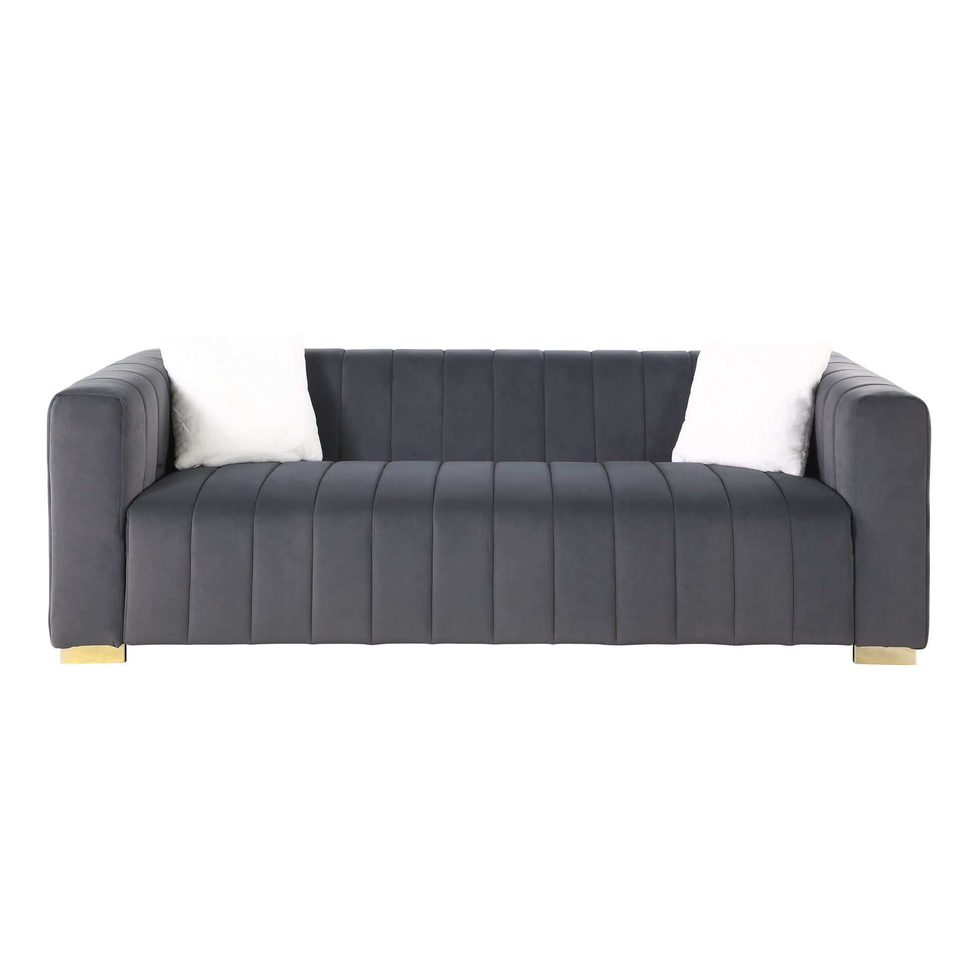 Ce canapé-causeuse est un ajout luxueux et élégant à tout intérieur. Ses coussins moelleux en mousse multi-densité offrent un confort inégalé, vous permettant de vous détendre avec style et aisance. Son design moderne à canaux, inspiré du Chesterfield classique, fait de ce canapé une pièce maîtresse au design élégant. Un velours riche est canalisé à l'intérieur et à l'extérieur de la structure, créant un détail de design remarquable, appréciable sous tous les angles de la pièce. Les coussins simples de type « banquette » offrent une assise confortable à plusieurs personnes, sans les inconvénients des coussins séparés, garantissant une assise harmonieuse et chaleureuse.