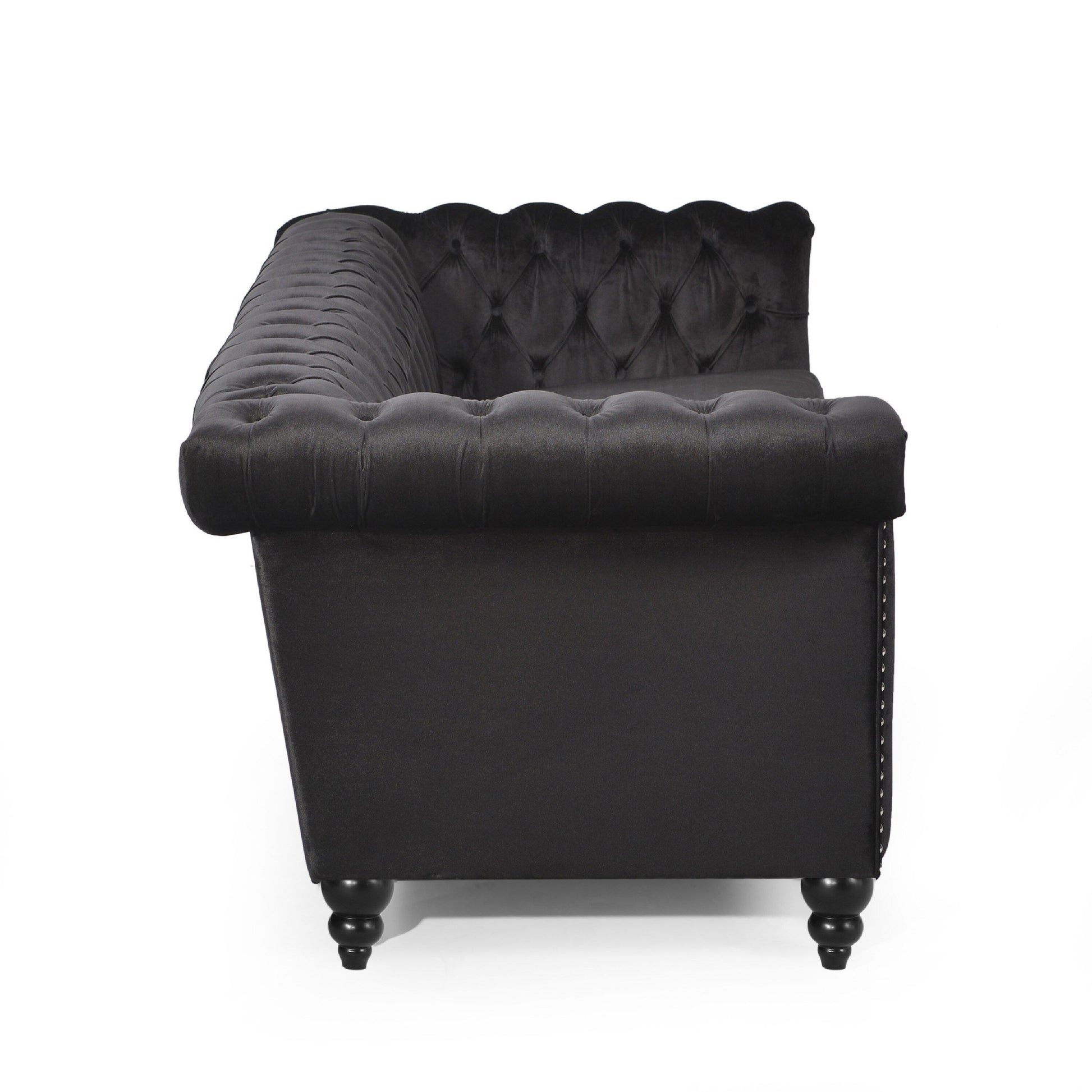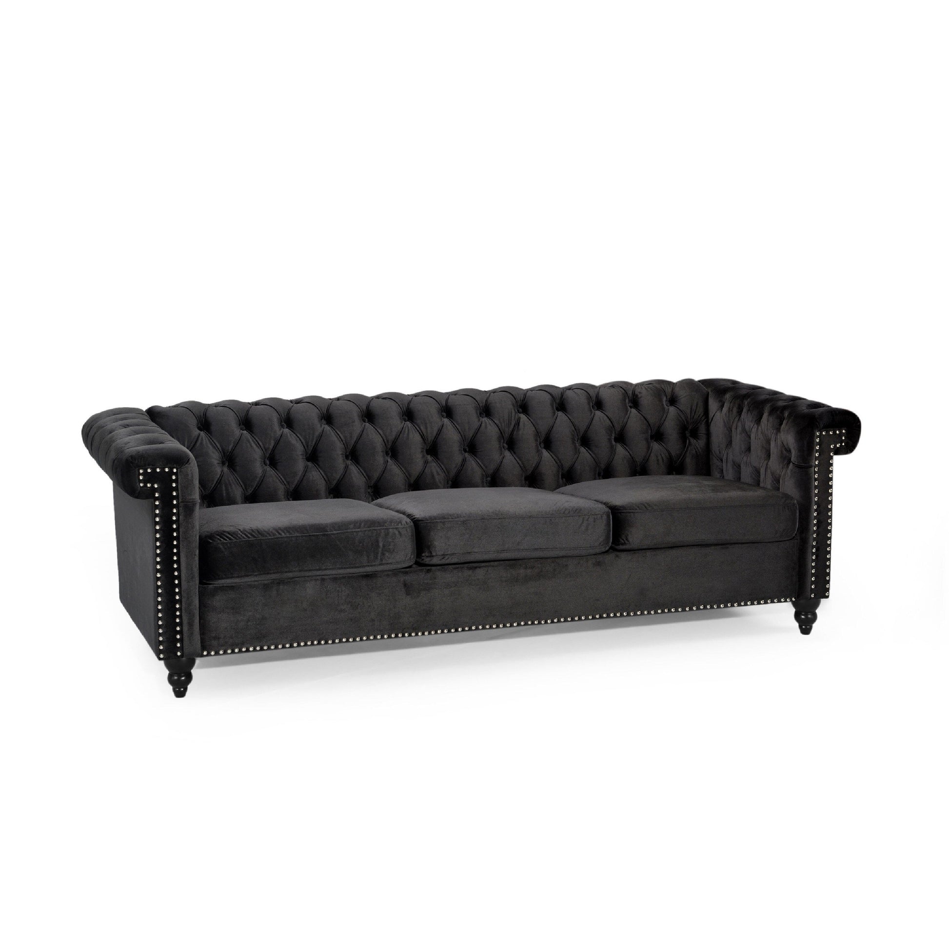 Canapé 3 places Chis, Chesterfield capitonné en velours noir, 83 pouces