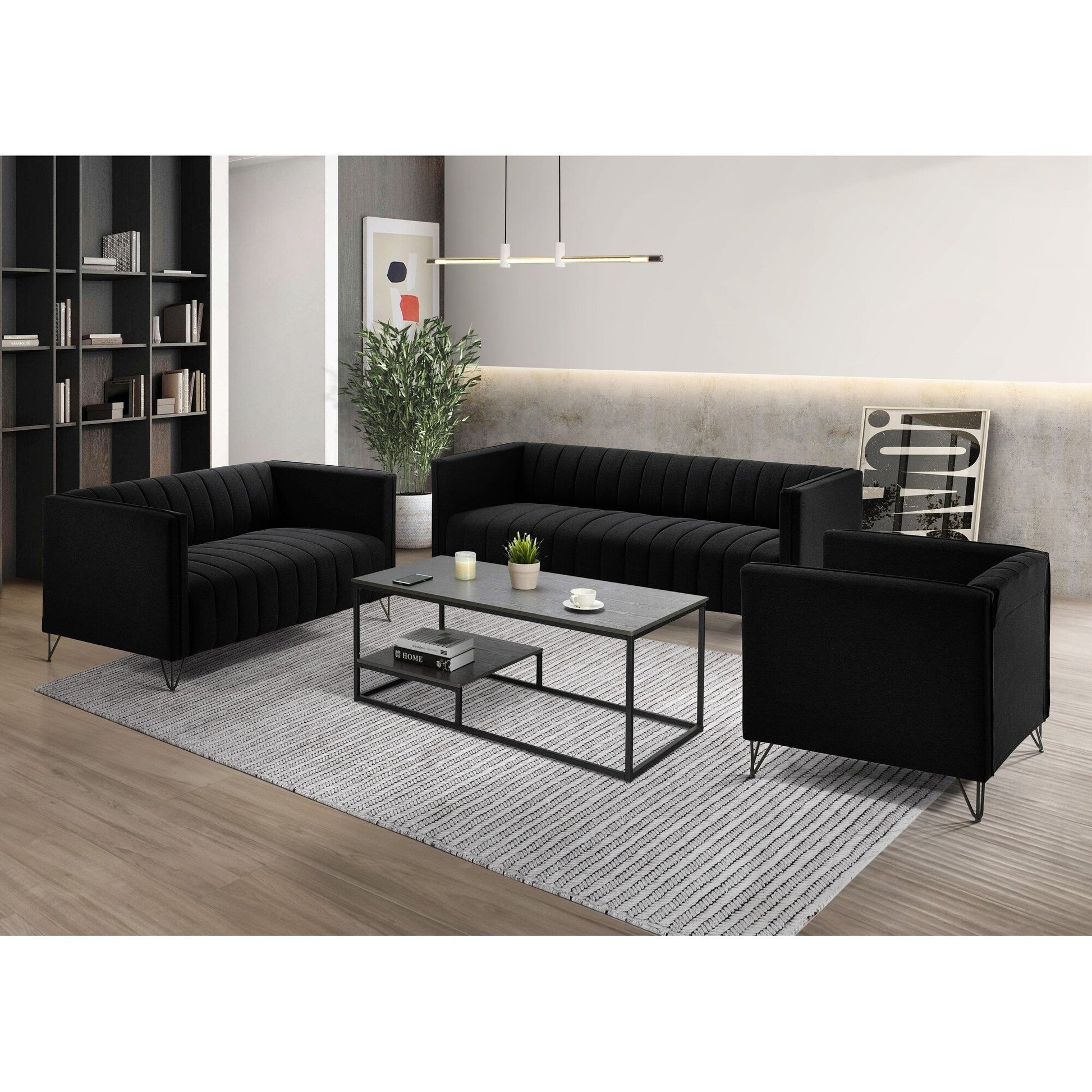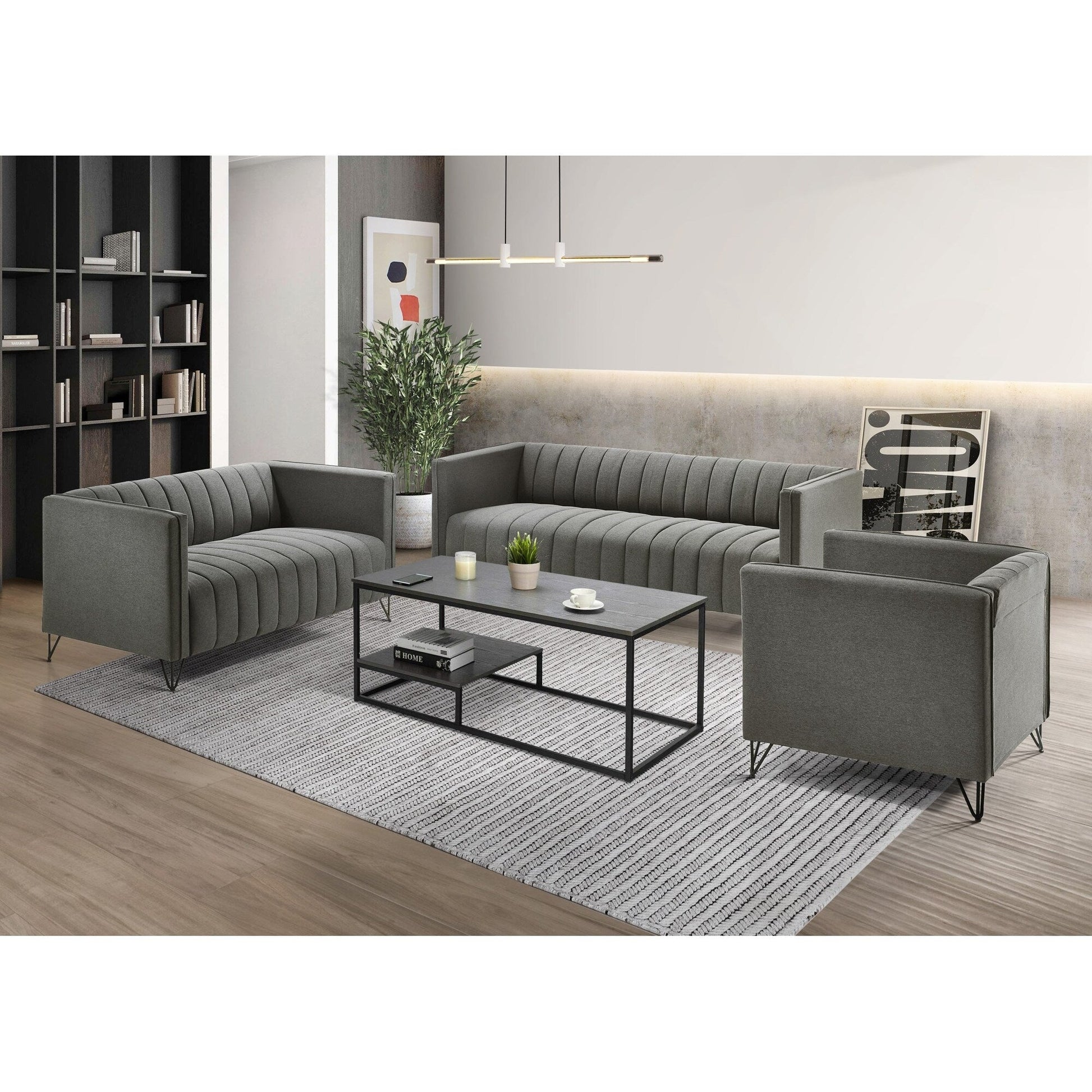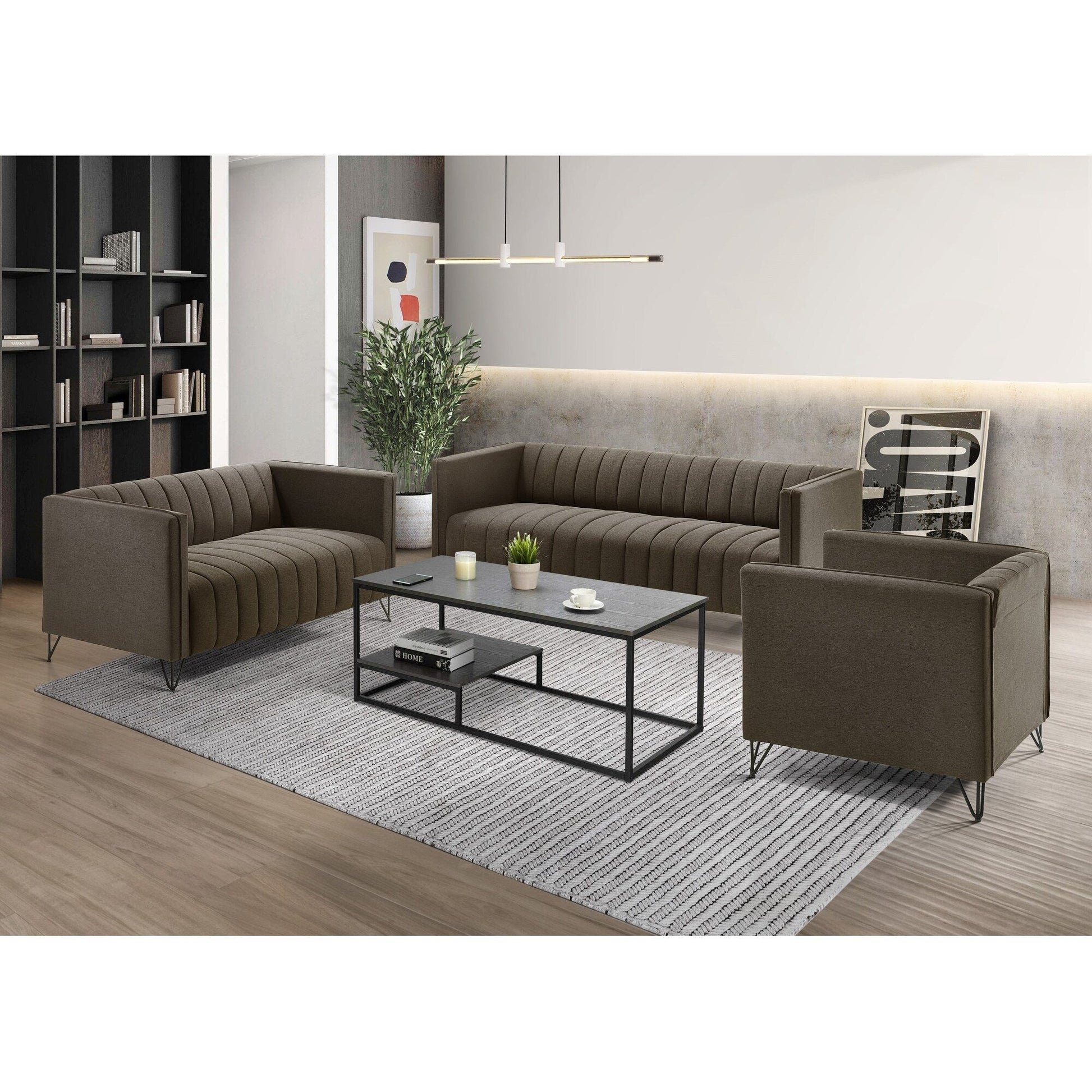 La collection Kurtis à accoudoirs carrés, composée d'un fauteuil, d'une causeuse et d'un canapé, allie modernité et confort au quotidien. Chaque pièce est fabriquée avec une structure en MDF robuste et revêtue d'un tissu doux et de haute qualité pour un style élégant et accueillant. Le design à accoudoirs carrés ajoute une touche de sophistication contemporaine, tandis que les coussins en mousse offrent une assise moelleuse et confortable, idéale pour se détendre ou recevoir. Qu'elle soit utilisée seule ou en ensemble, la collection Kurtis offre un confort et une durabilité durables. Son profil épuré et son design polyvalent en font un complément idéal aux salons, appartements ou bureaux modernes. Conçue pour allier style et fonctionnalité, la série Kurtis allie un savoir-faire de qualité à une esthétique raffinée qui s'intègre à tous les intérieurs.