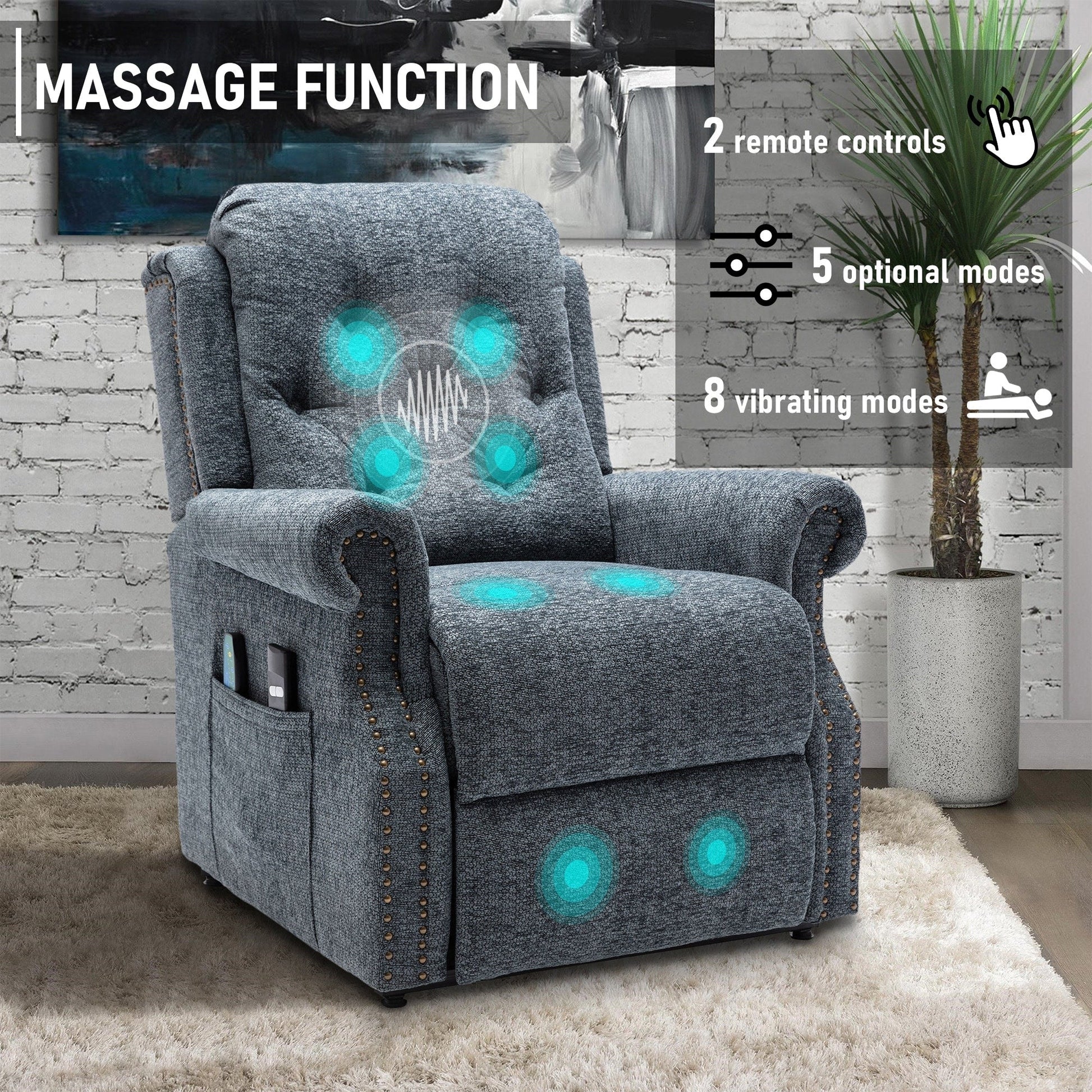 Profitez d'un confort et d'une détente ultimes avec le fauteuil inclinable releveur électrique Clihome en tissu chenille. L'éponge haute densité et le tissu chenille doux procurent une sensation de bien-être, tandis que le fauteuil releveur électrique, robuste et fonctionnel, vous permet de vous ajuster en douceur à n'importe quelle position. Profitez de 8 points de massage pour un massage complet du corps et de deux poches latérales pour plus de confort. Avec ses coussins rembourrés et son dossier haut, ce fauteuil offre un soutien et un confort exceptionnels. Facile à assembler grâce aux instructions et aux outils fournis. Sublimez votre détente avec Clihome.