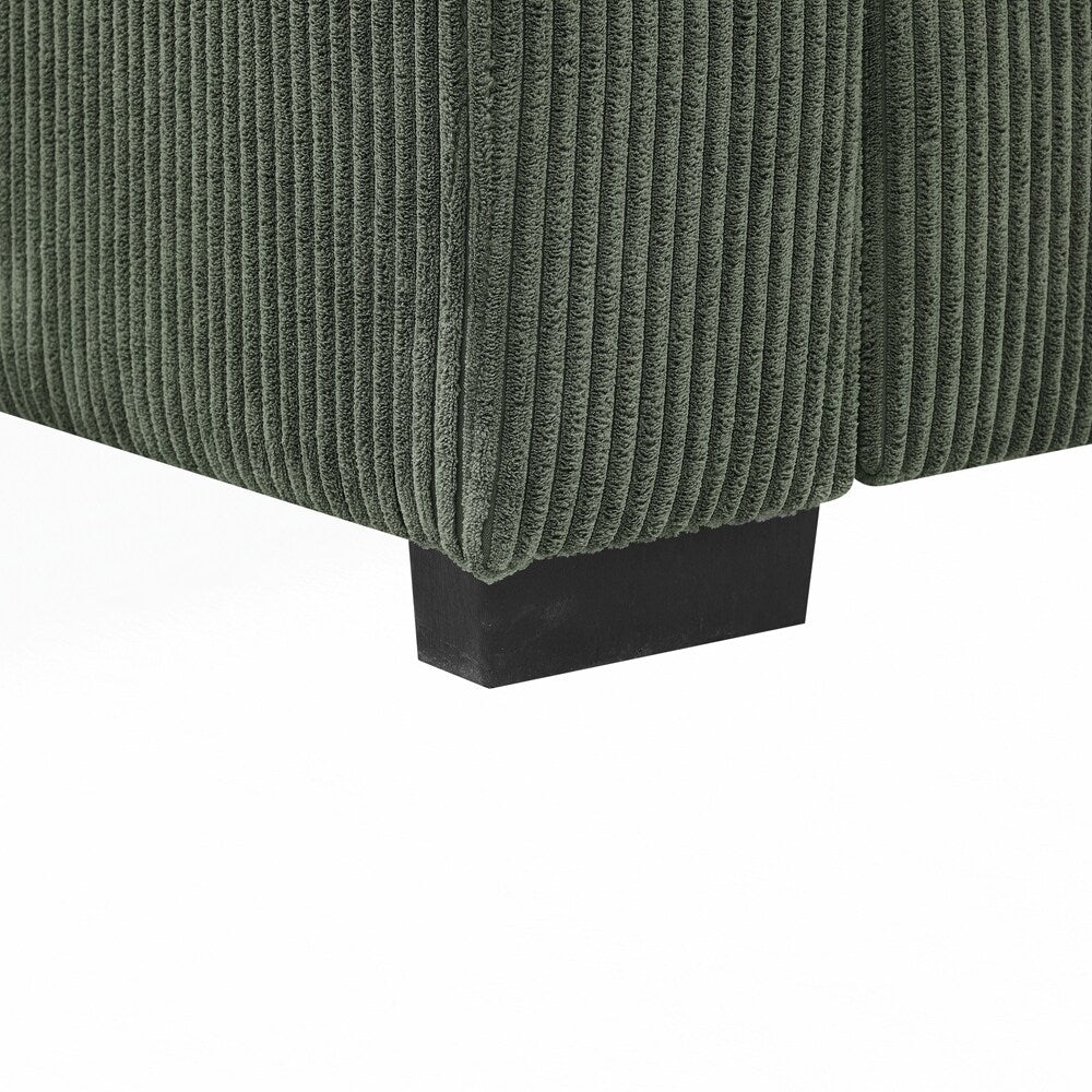 - Recouvert d'un tissu en velours côtelé doux et texturé dans une teinte apaisante, ce canapé évoque le charme serein d'une retraite en bord de mer.