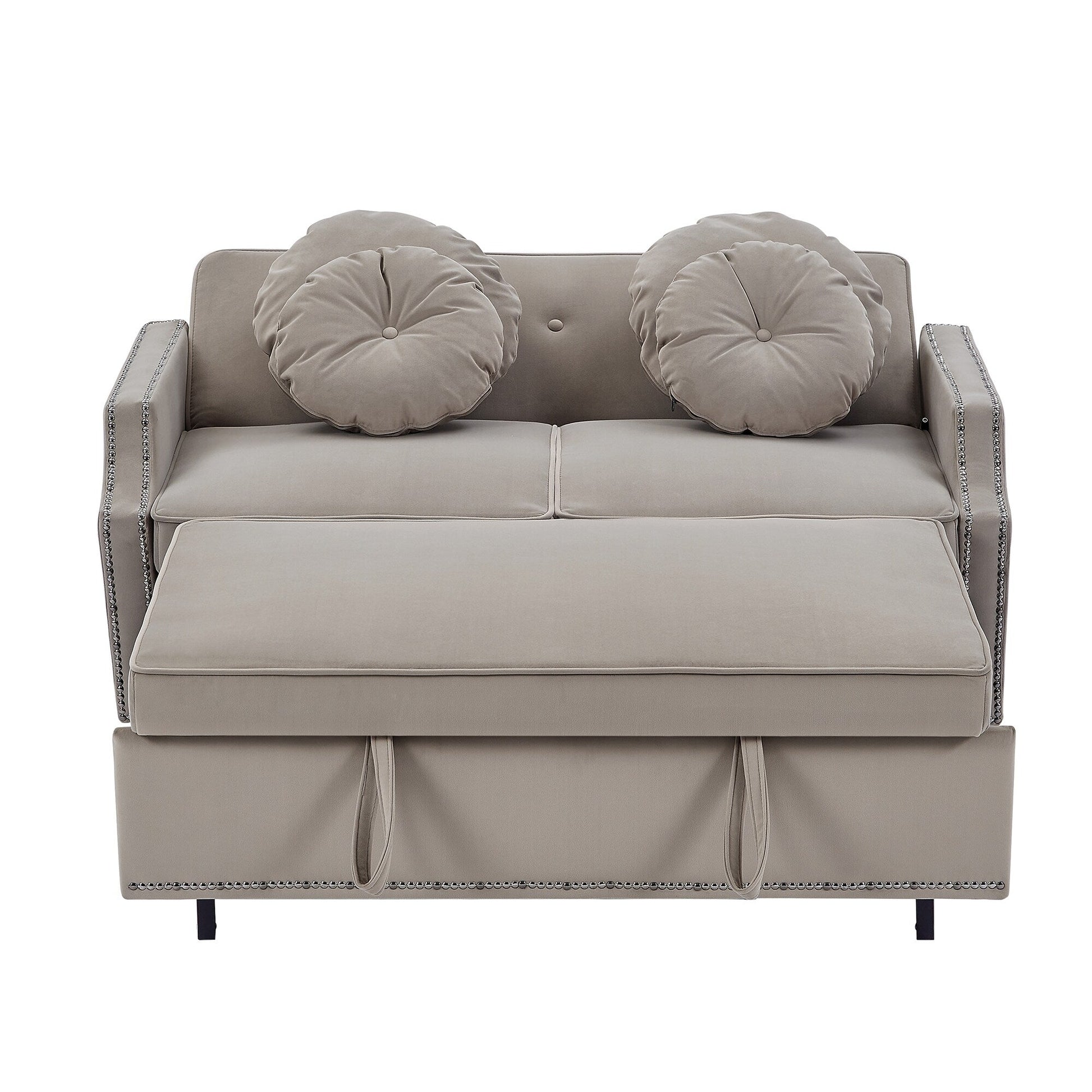 - Style élégant : Ce canapé-lit convertible est livré avec 4 coussins floraux qui apportent une touche de fraîcheur et de charme à votre espace de vie. Ses accoudoirs incurvés ornés de clous décoratifs et son dossier capitonné lui confèrent une allure résolument tendance.