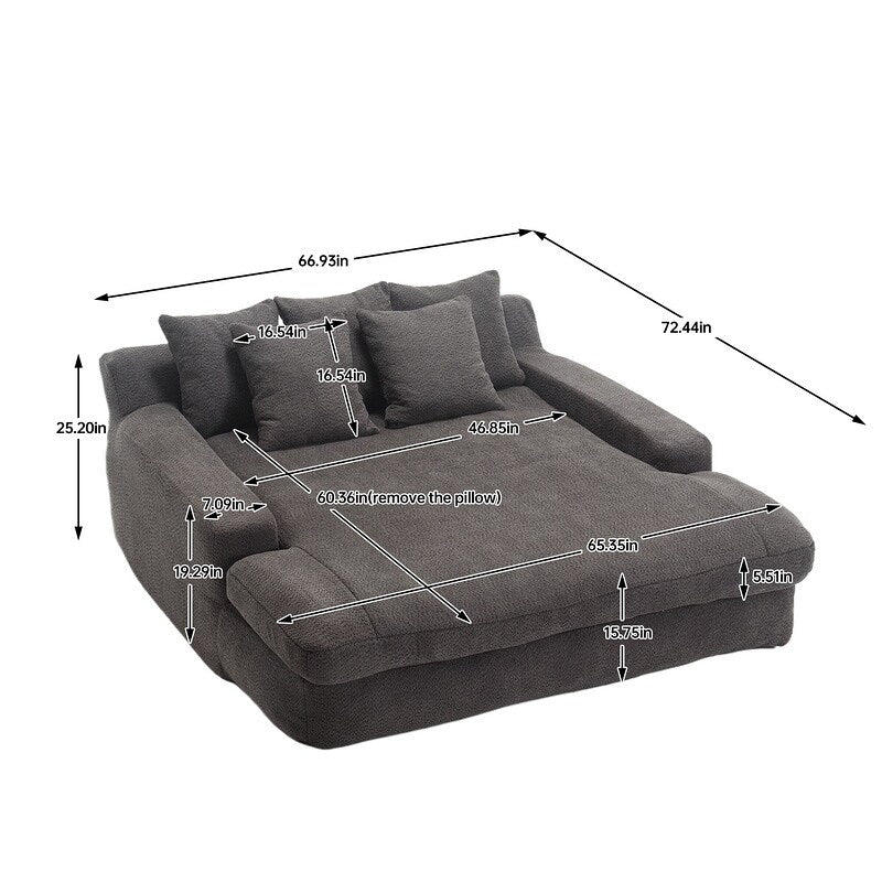 Coussin de siège rembourré inclus Oui Taille du produit 72,44'' x 66,93'' x 25,2'' Longueur du siège 60,36'' Largeur du siège 46,85'' Hauteur du siège 15,75'' Taille du colis 45,27'' x 41,73'' x 7,48'' Poids net/brut 132,66/147,62LBS