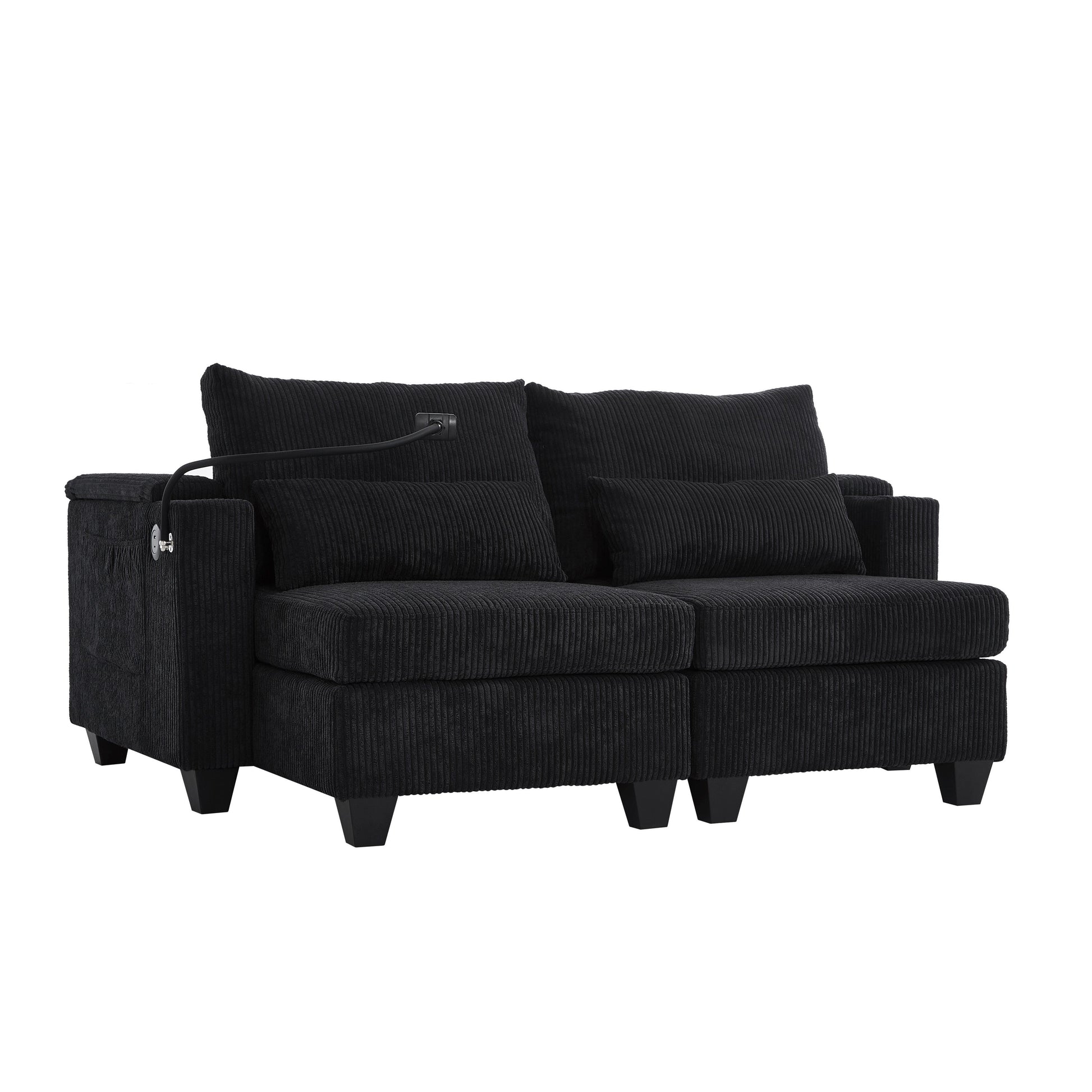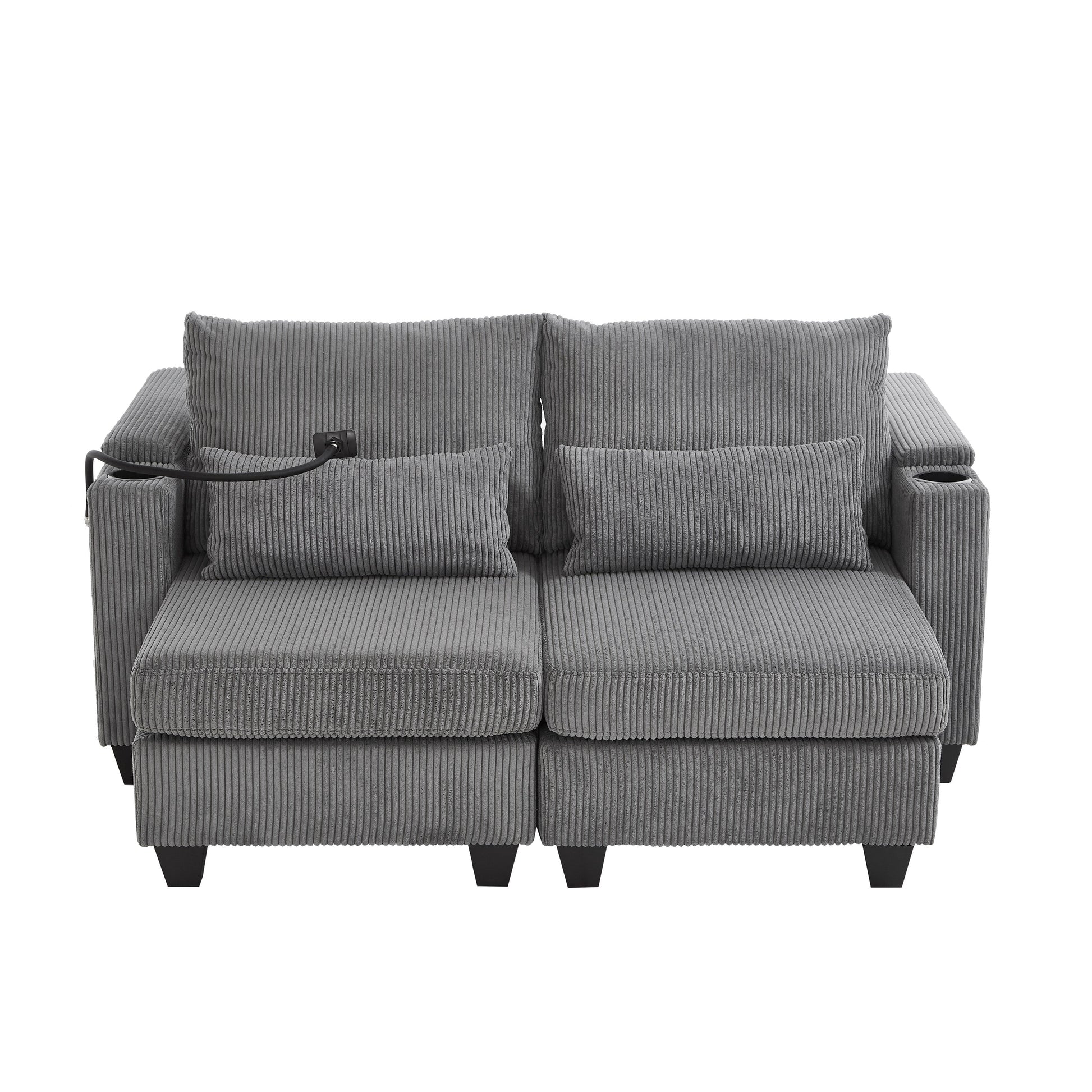 Canapé-lit convertible en velours côtelé avec port USB et deux porte-gobelets