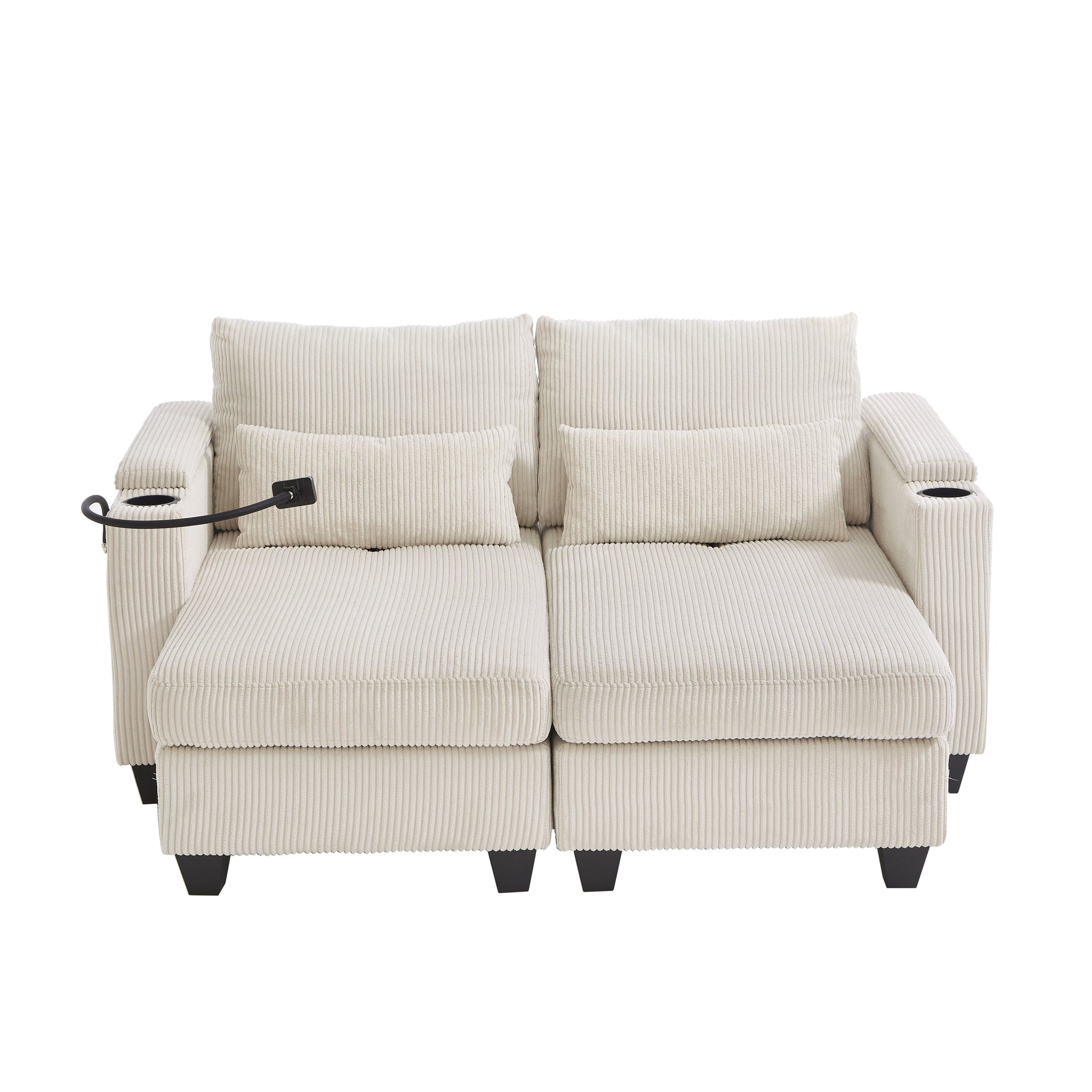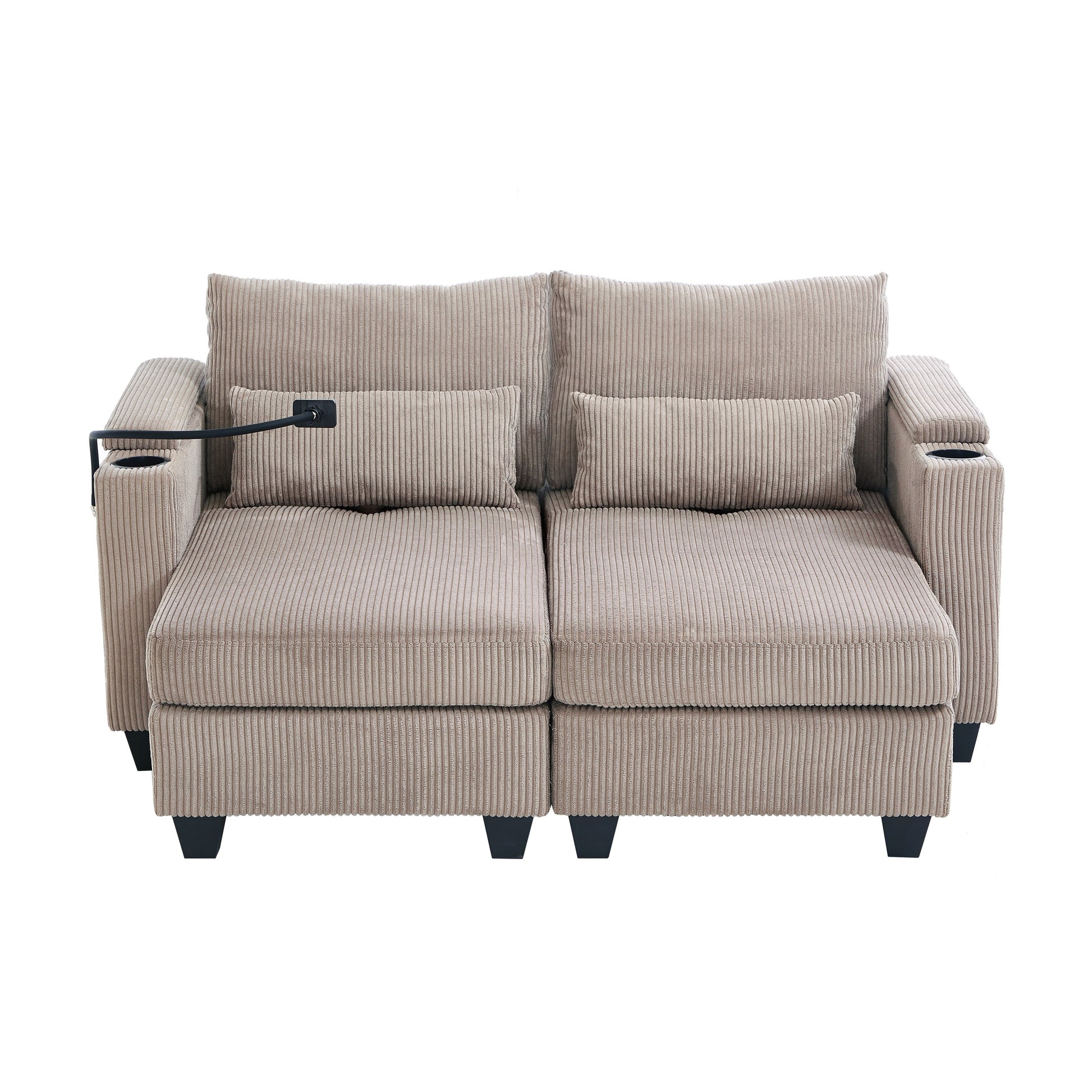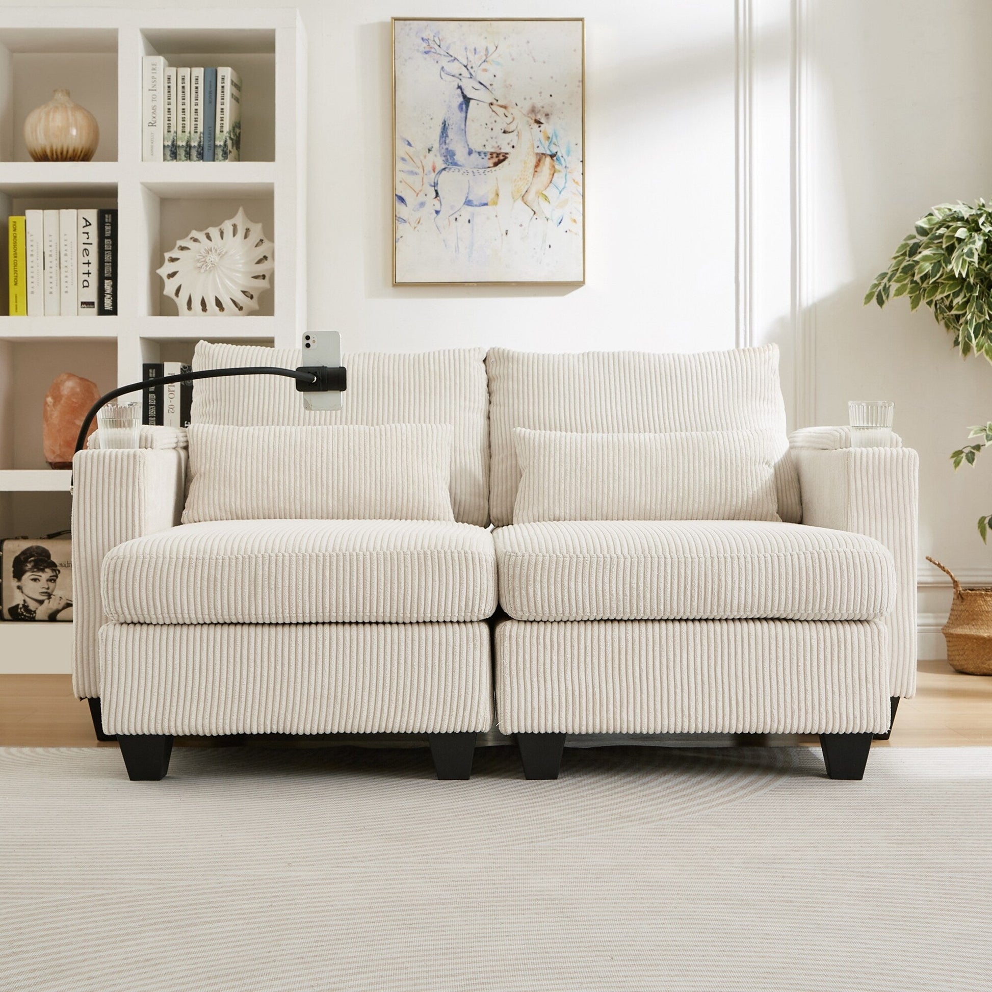 Canapé-lit convertible en velours côtelé avec port USB et deux porte-gobelets