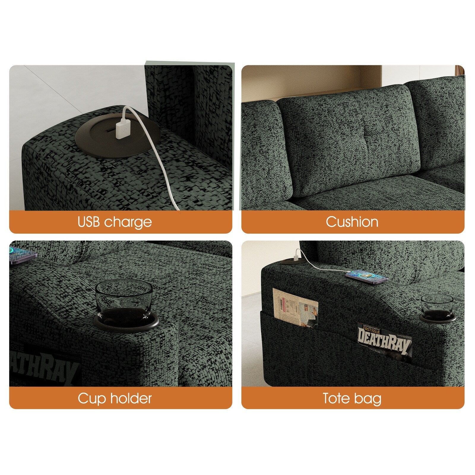 Canapé convertible en L avec repose-pieds et rangement, canapé 3 places