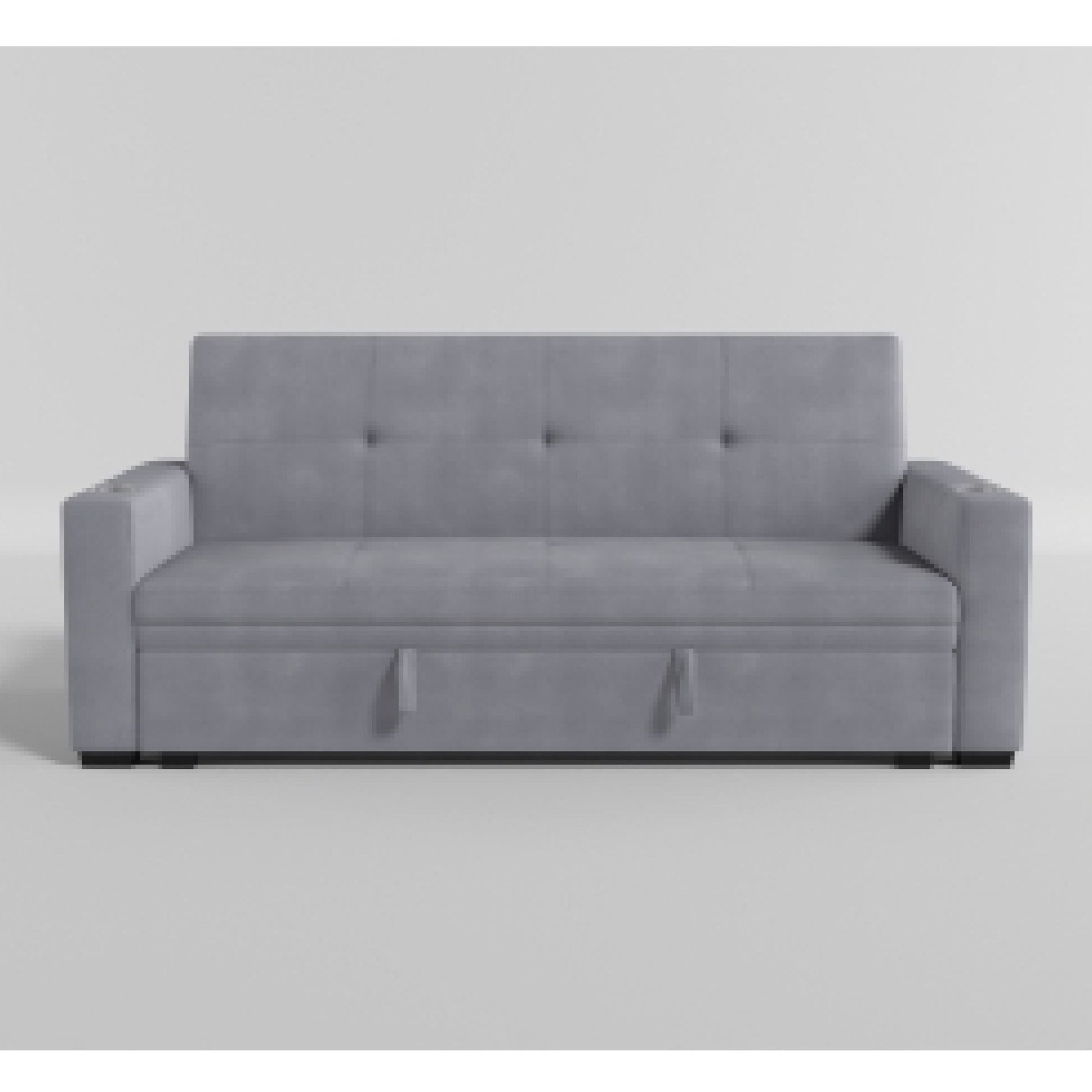 Canapé convertible, dossier en velours capitonné gris, ports de chargement USB, 84 pouces