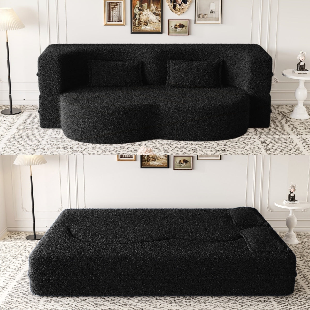 Canapé-lit convertible en tissu Teddy rempli de mousse
