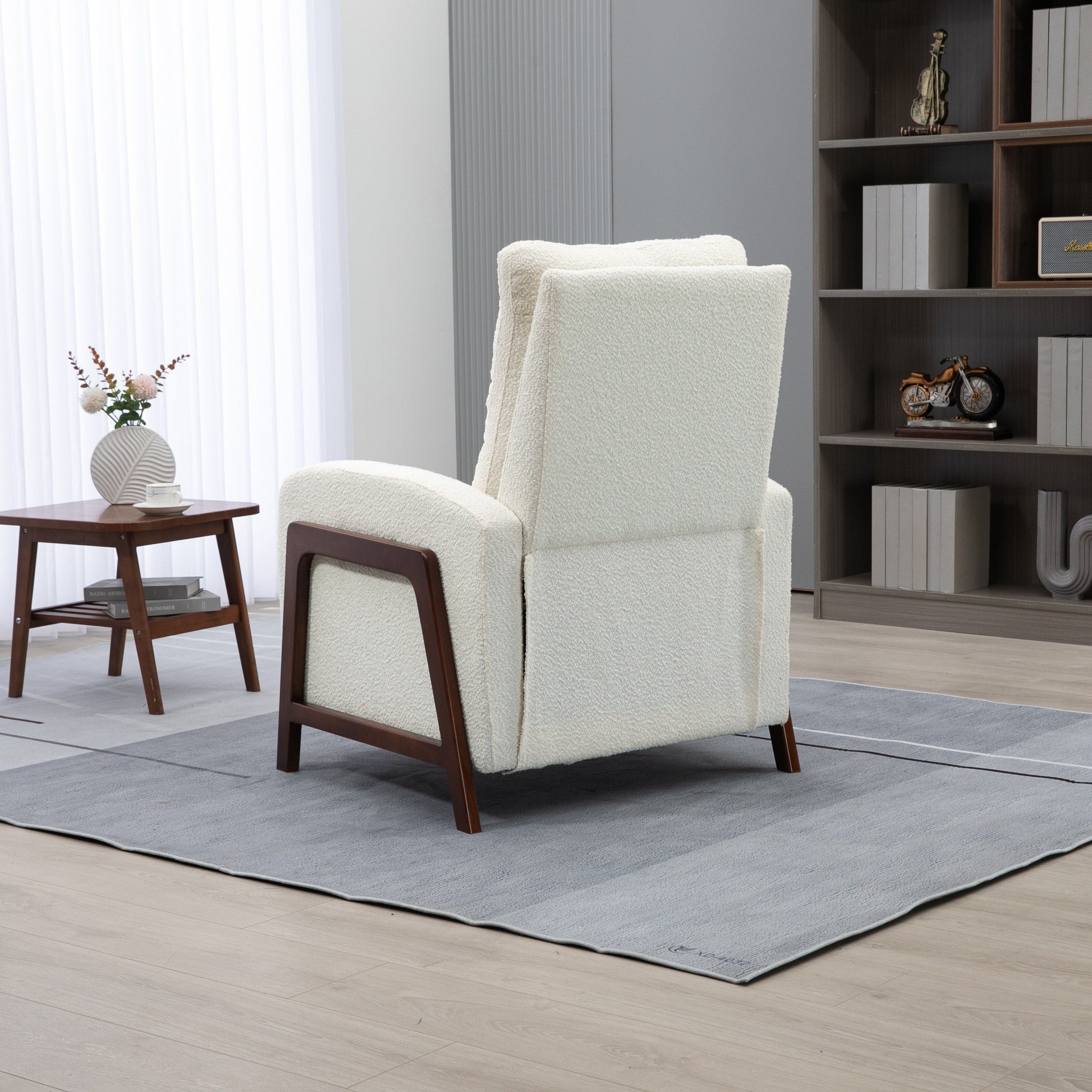 Fauteuil de détente rembourré moderne et confortable pour le salon, fauteuil inclinable pour home cinéma avec soutien lombaire, canapé inclinable pour le salon, fauteuil d'appoint rembourré, canapé de lecture capitonné. Ce fauteuil d'appoint est conçu pour s'adosser, les bras sur l'accoudoir pour un soutien stable des jambes. Il peut être abaissé lorsqu'il n'est pas utilisé. Profitez d'un moment de détente dans ce fauteuil simple, idéal pour vos lectures, jeux et films du soir. Fauteuil classique du milieu du siècle avec accoudoirs, banquette d'appoint et rembourrage en mousse moelleuse pour plus de confort. Structure et pieds en bois massif pour plus de stabilité et de durabilité.