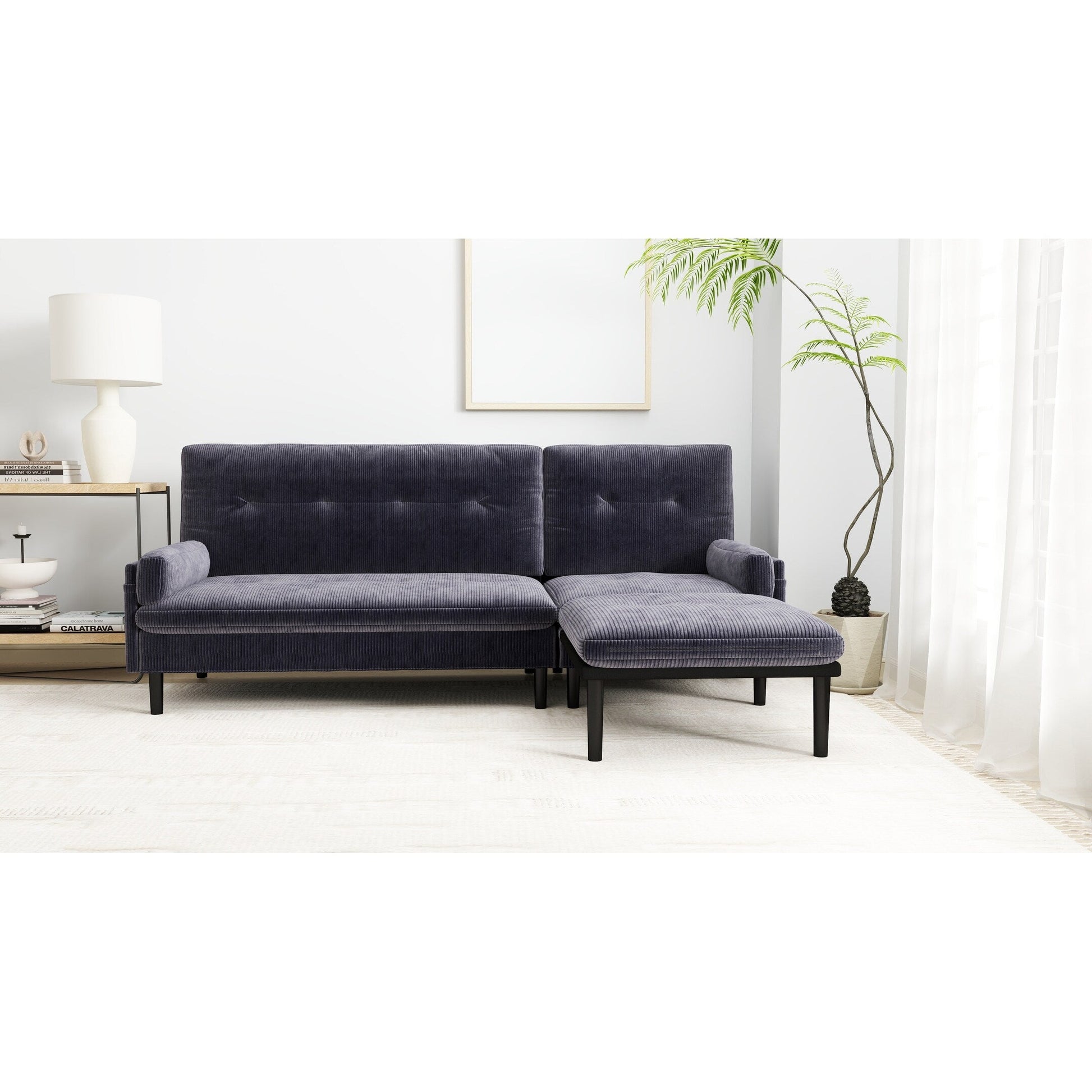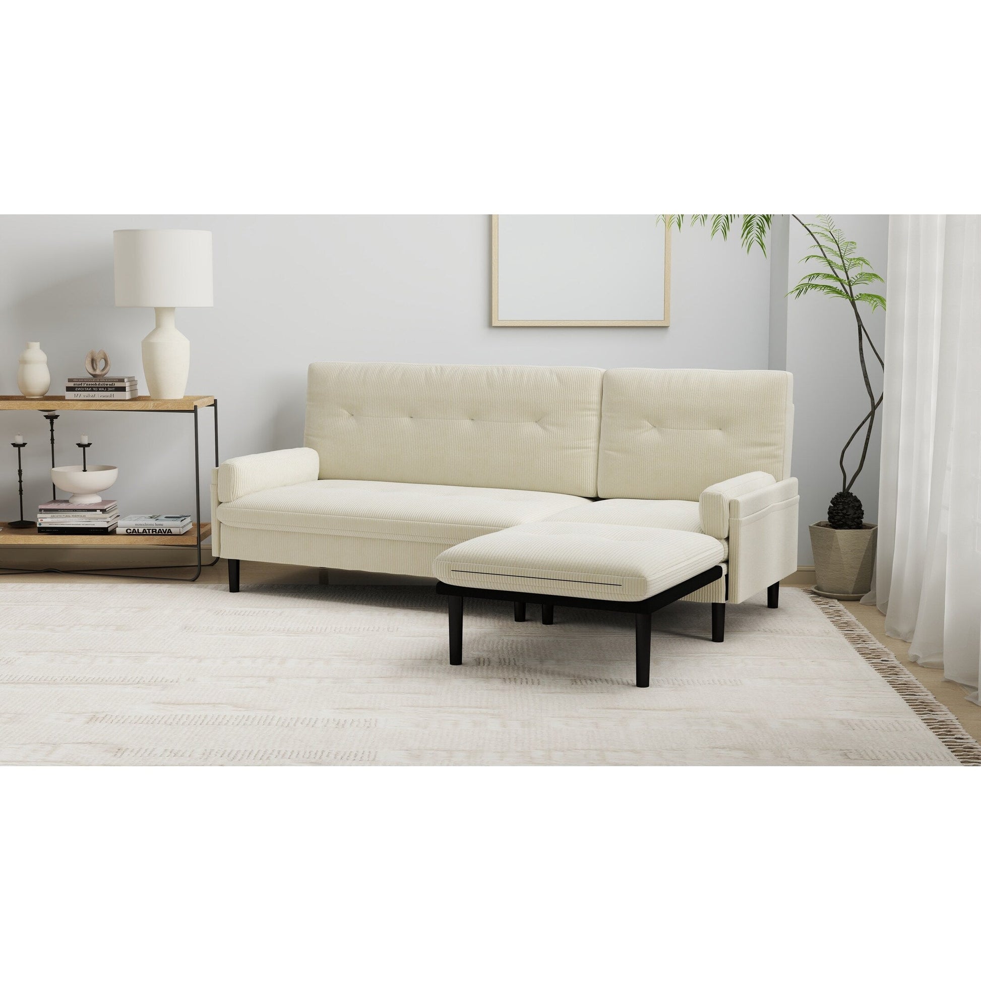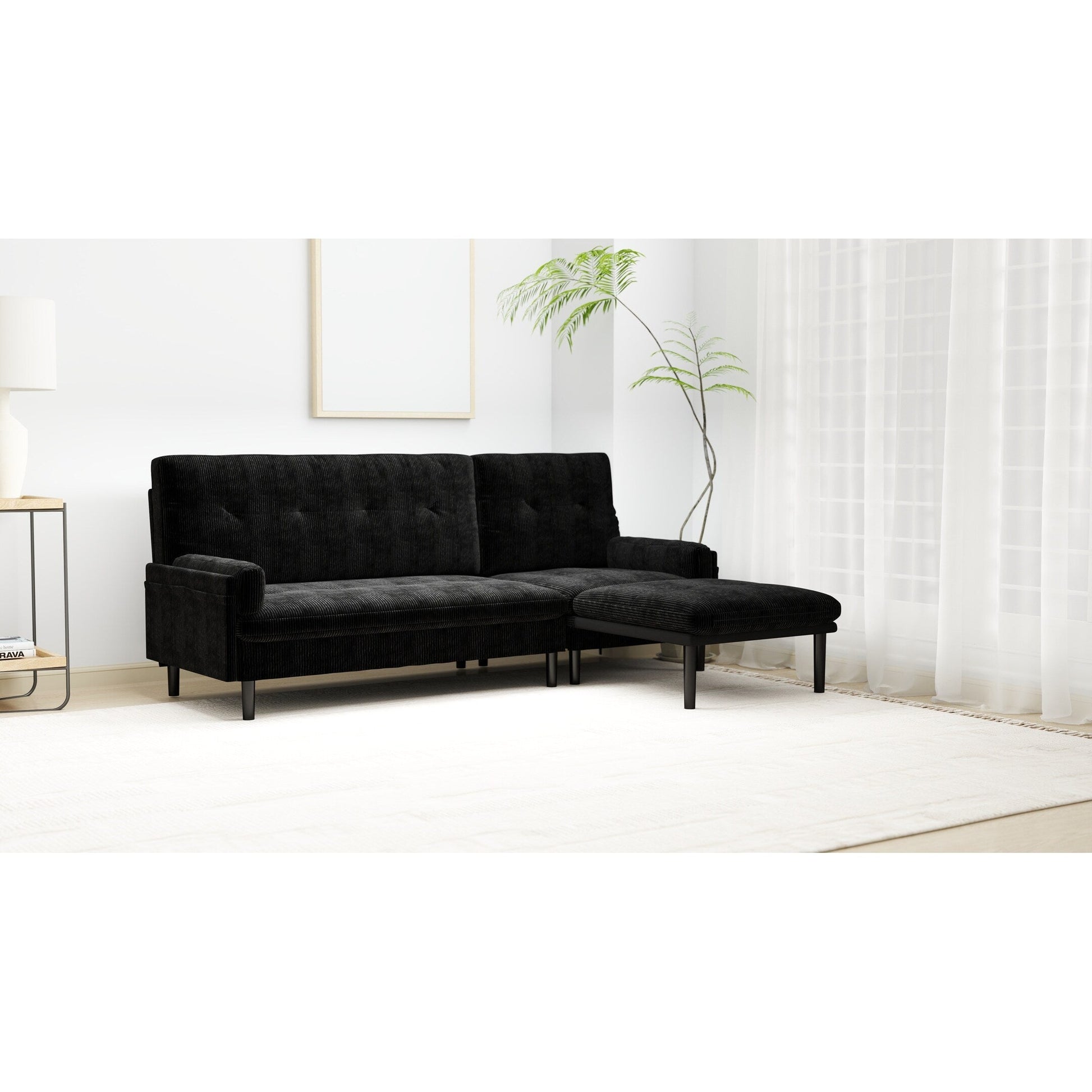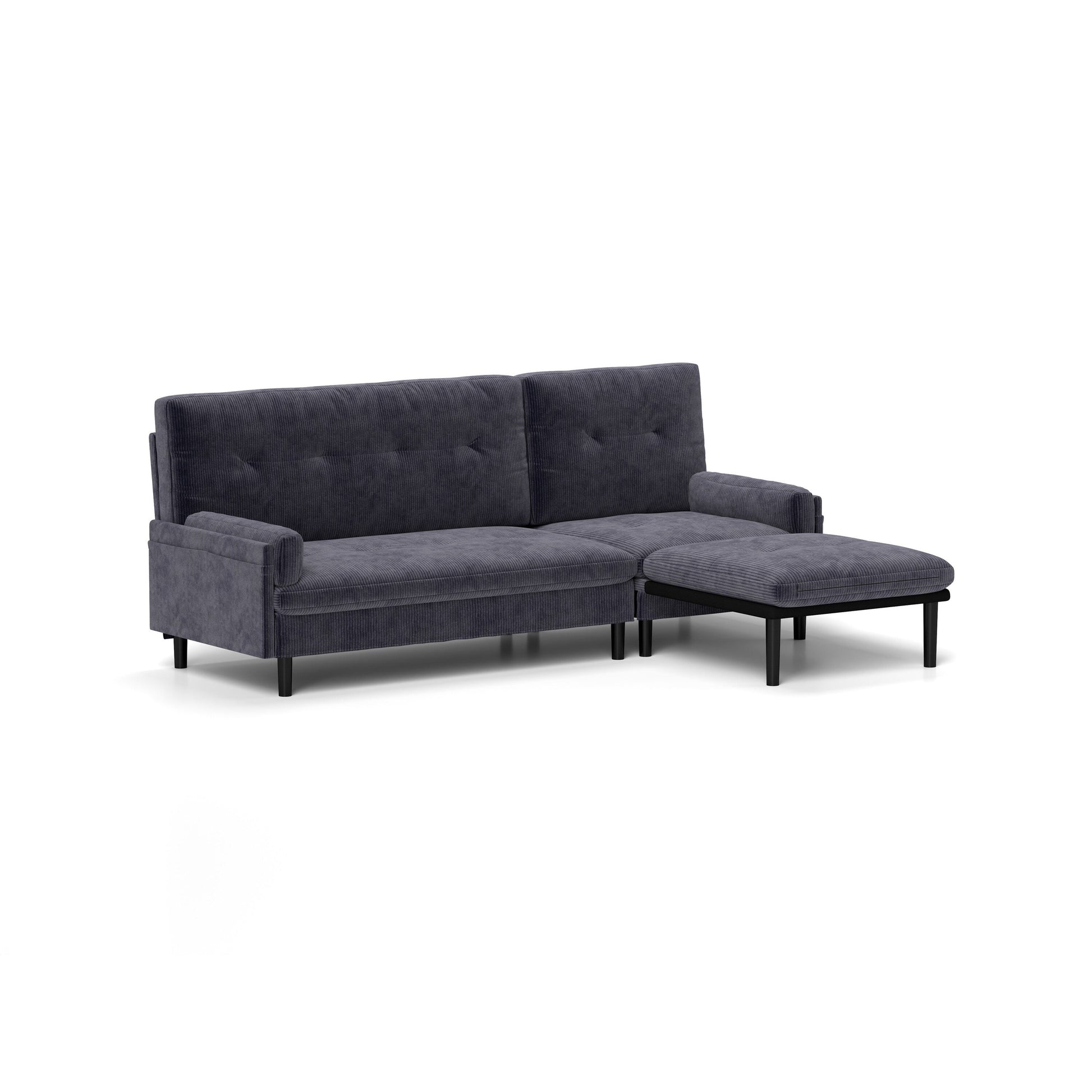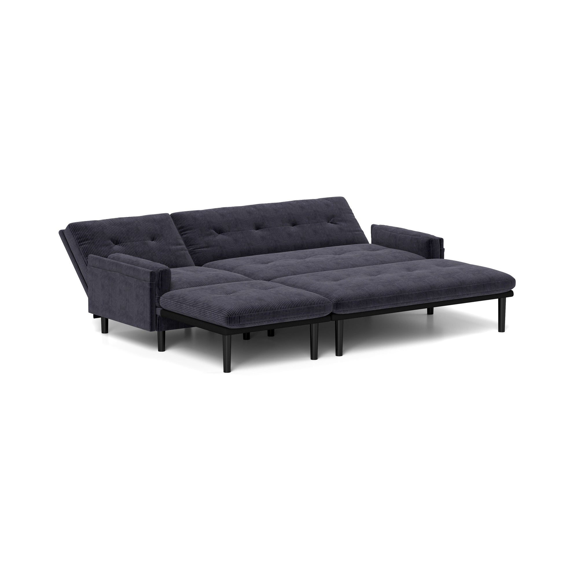 Canapé 3 places réglable en velours côtelé et lit d'appoint
