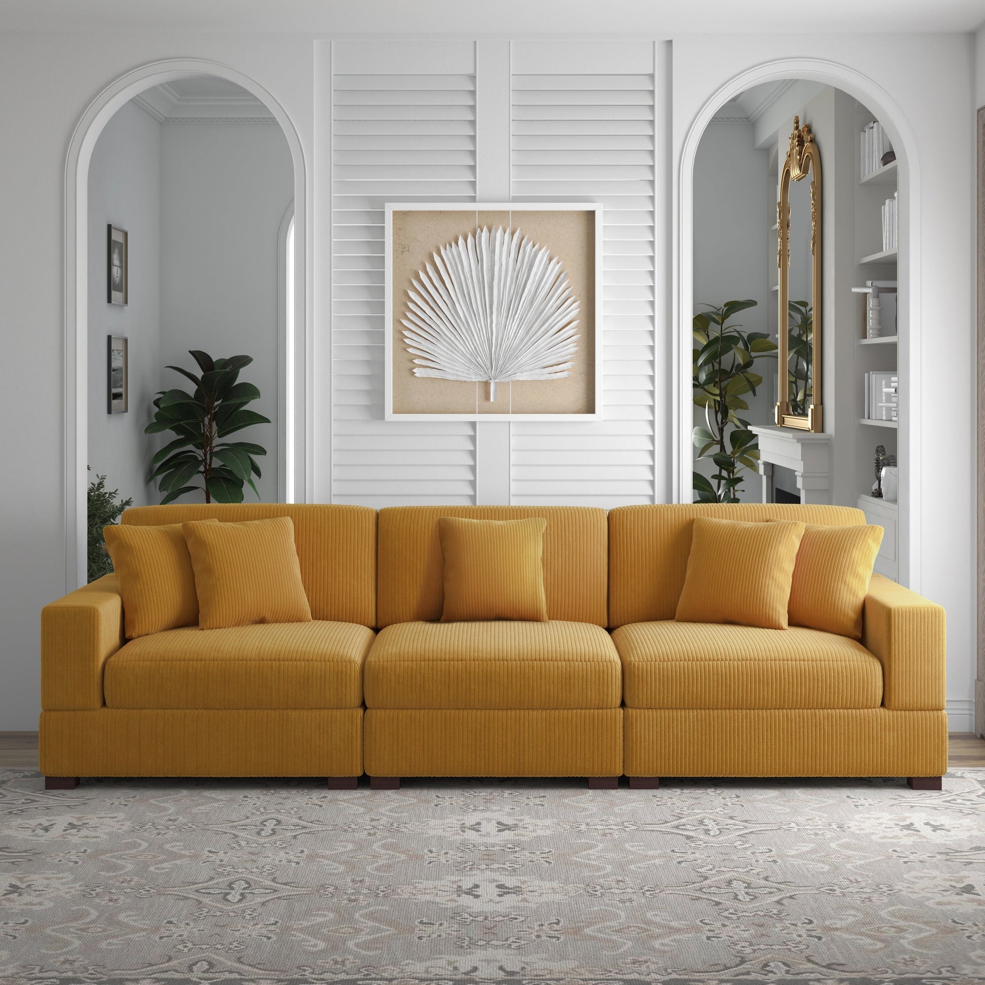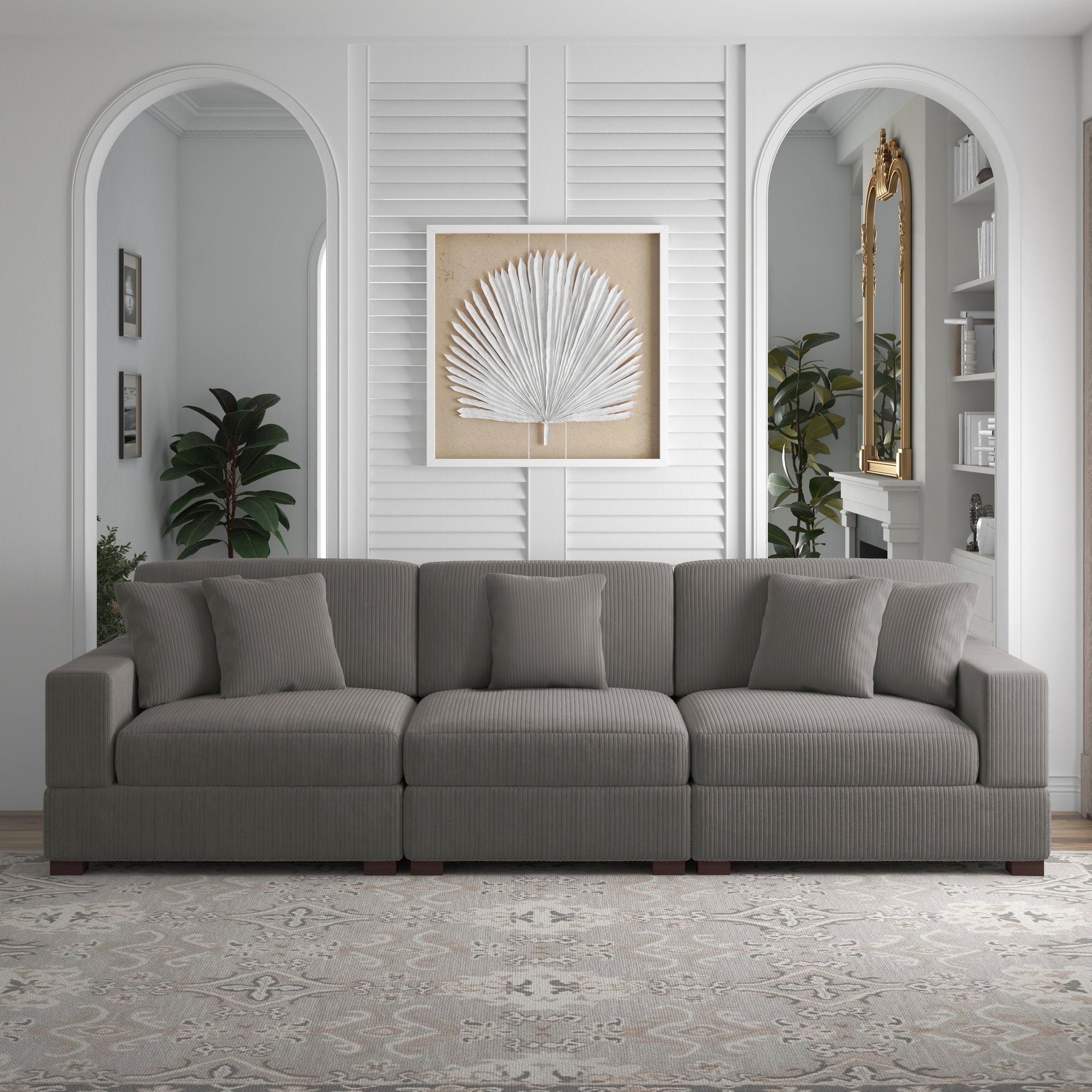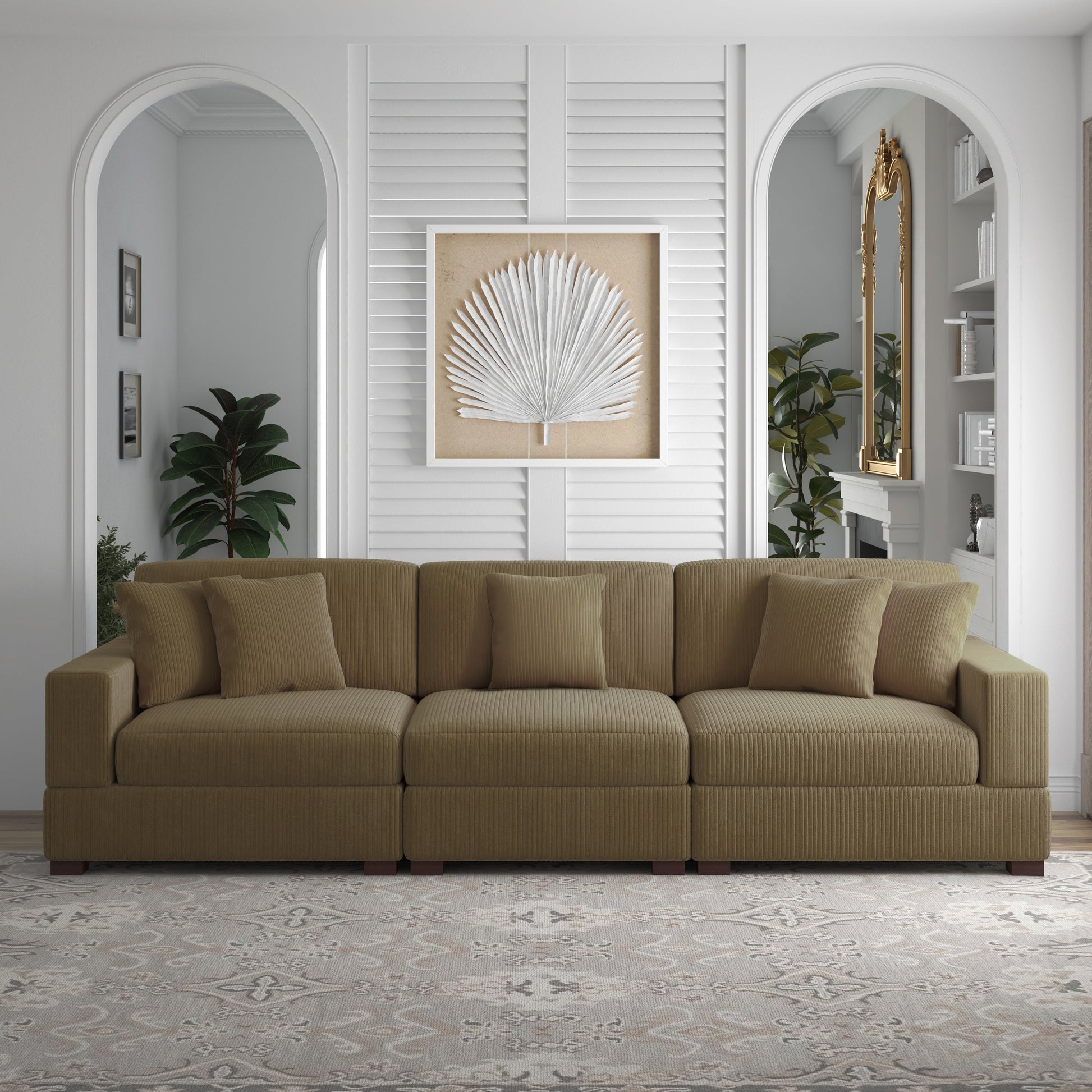Canapé modulable sectionnel en velours côtelé avec oreillers