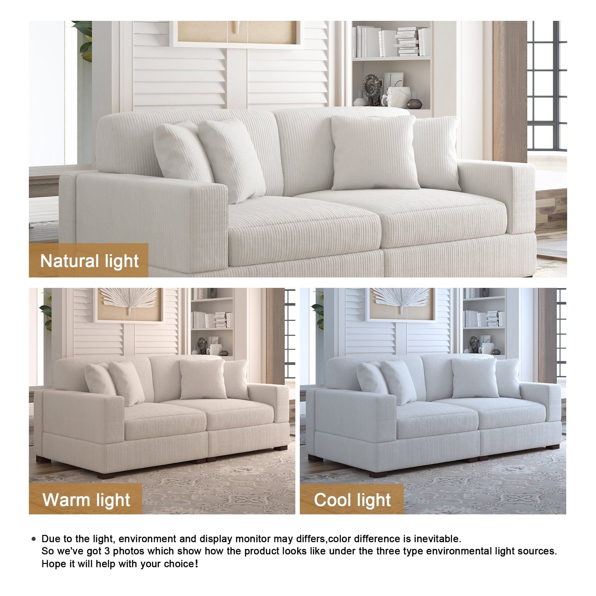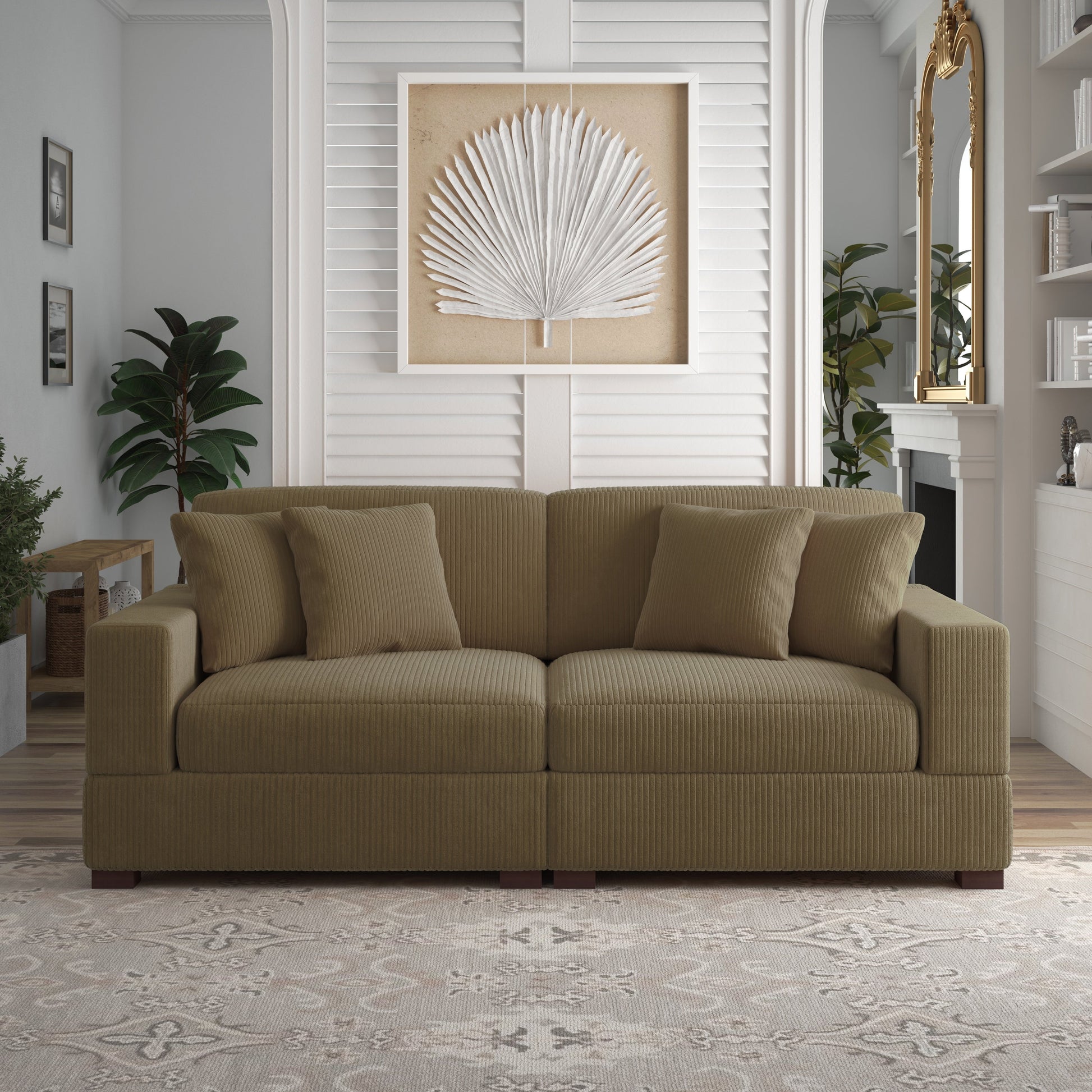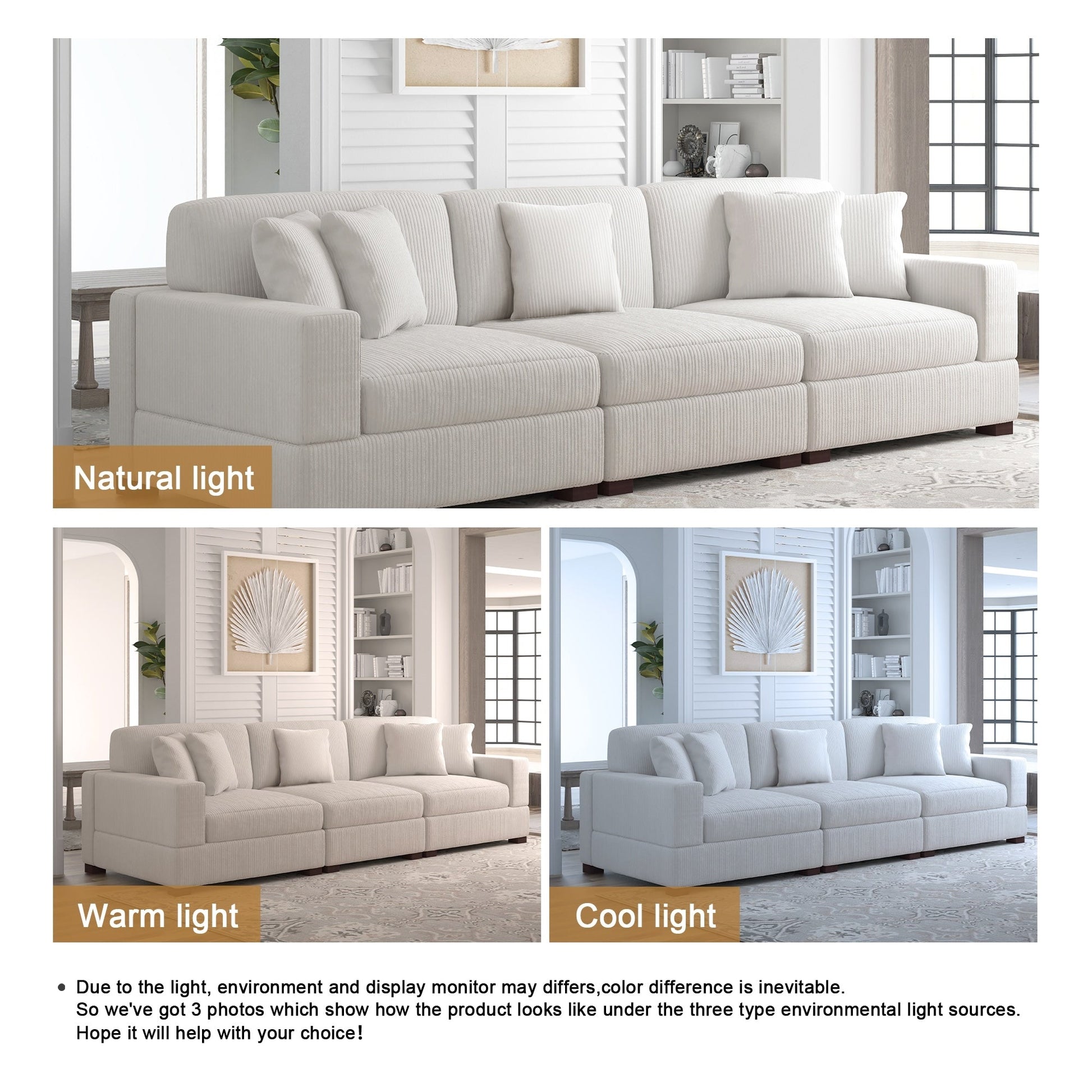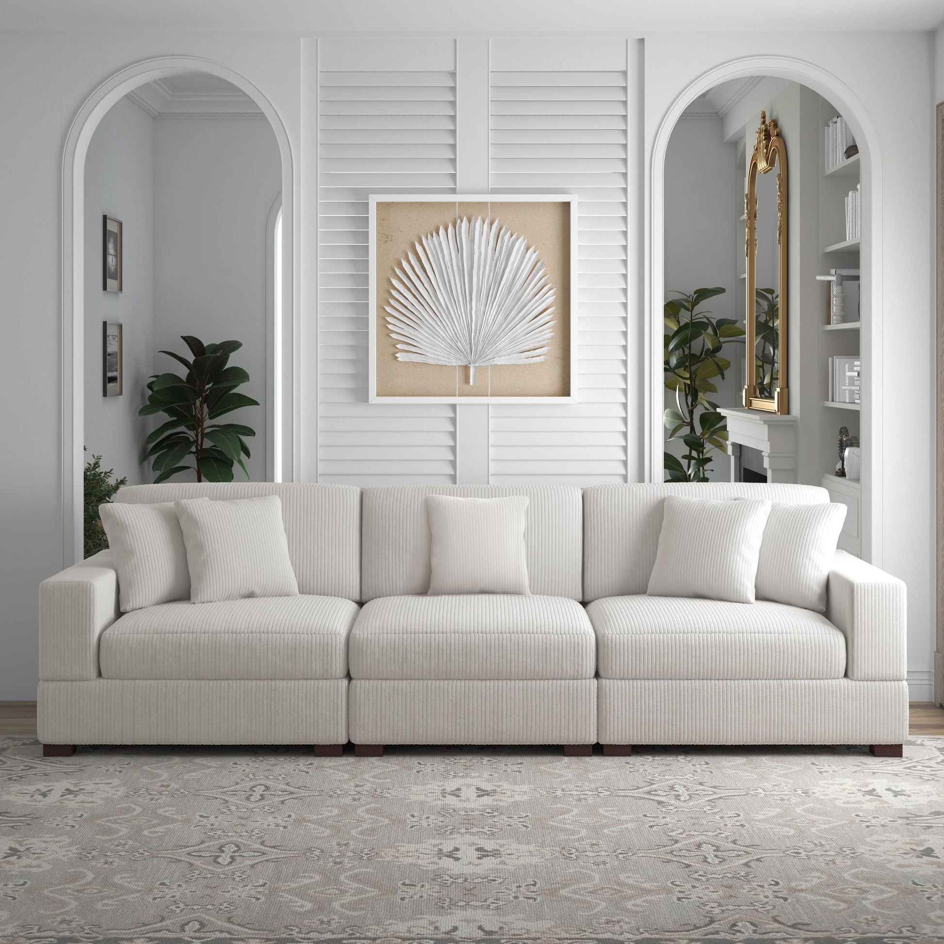 Canapé modulable sectionnel en velours côtelé avec oreillers