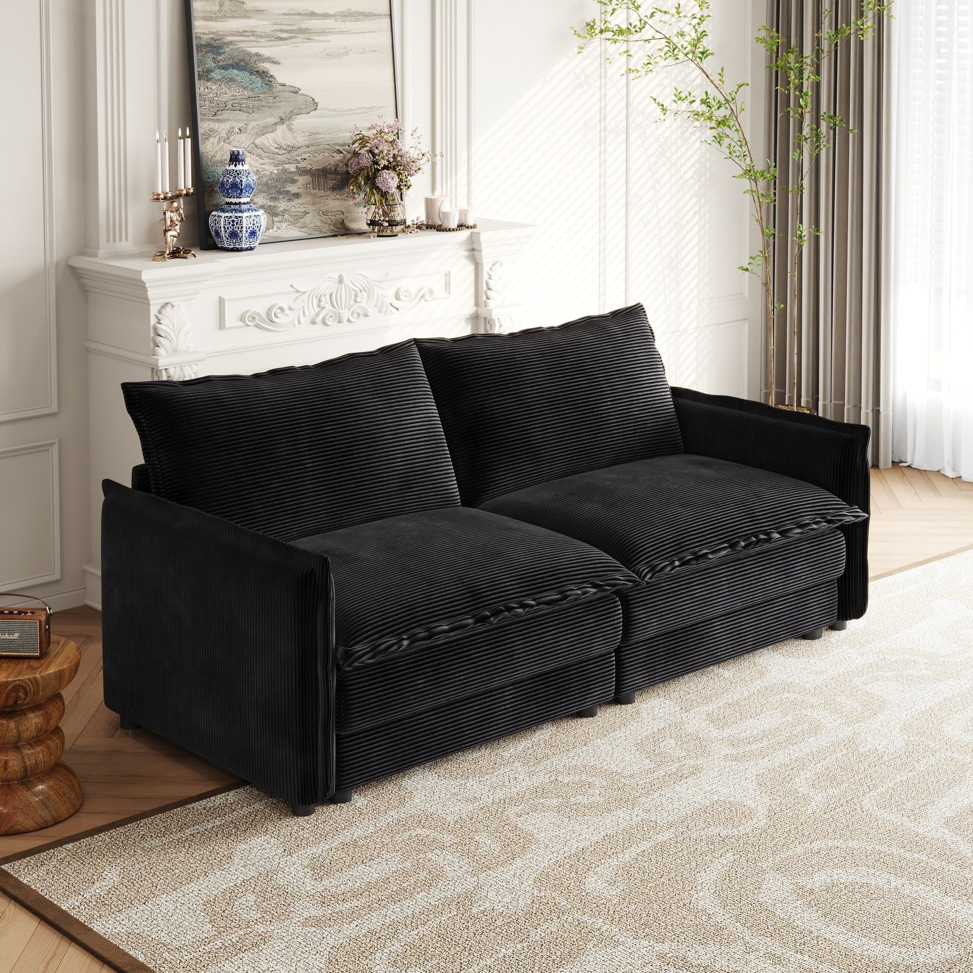 Canapé causeuse en velours côtelé pour salon, canapé 2 places rembourré de grande taille avec assise profonde et 2 oreillers