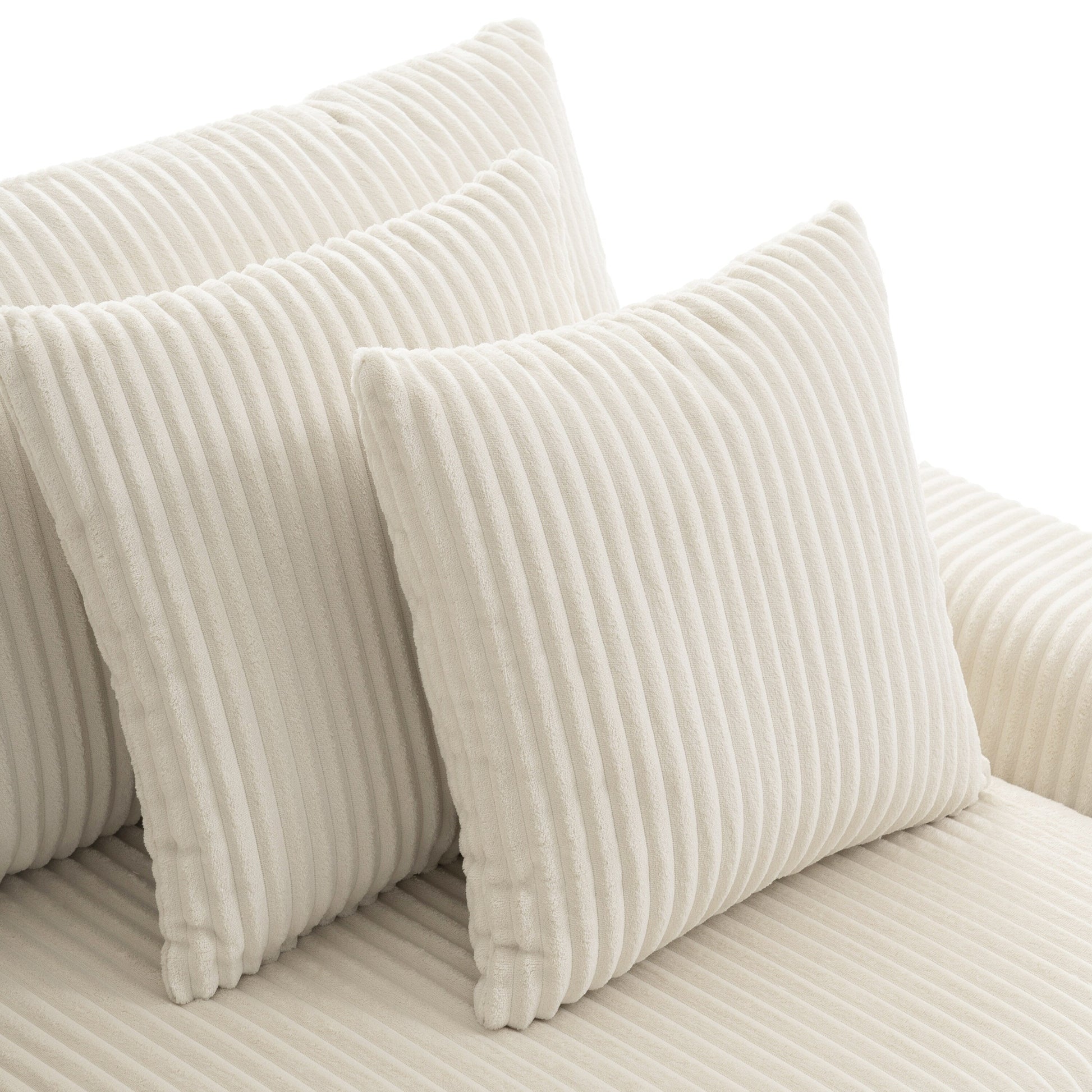 Canapé sectionnel en velours côtelé avec haut-parleurs Bluetooth, chargeur USB, porte-gobelets, rangement, pouf, assise profonde et large