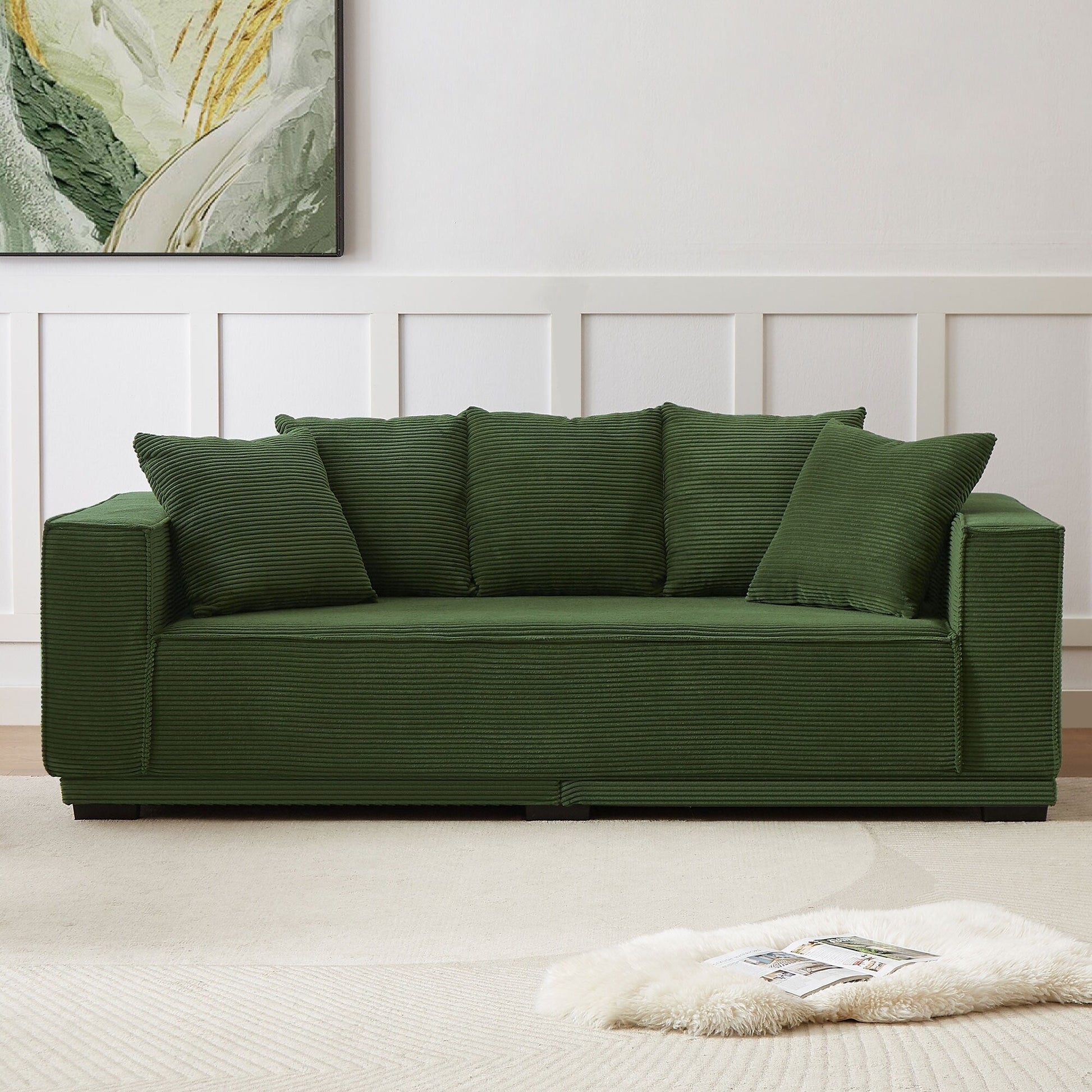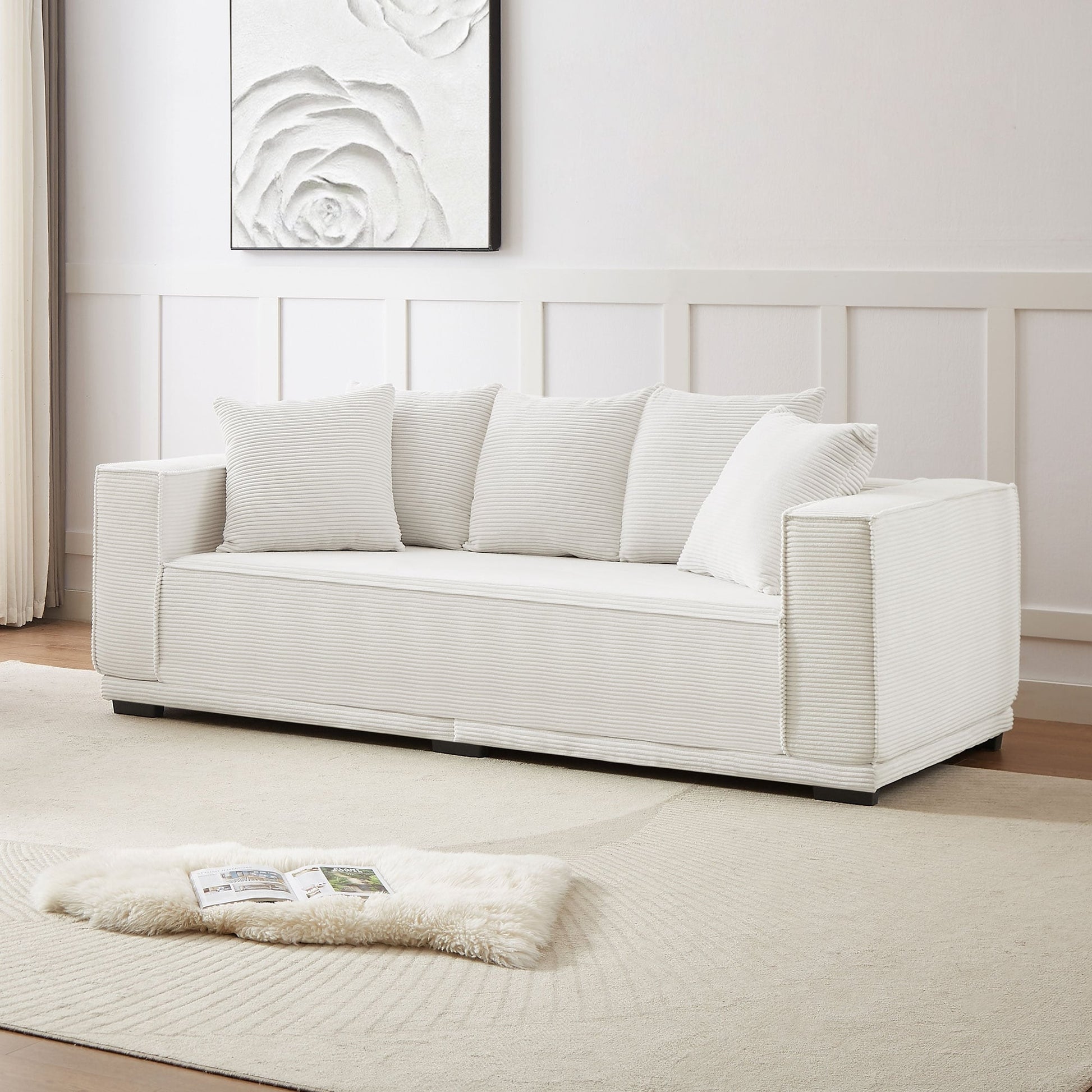 Canapé 3 places rembourré en velours côtelé avec coussins décoratifs