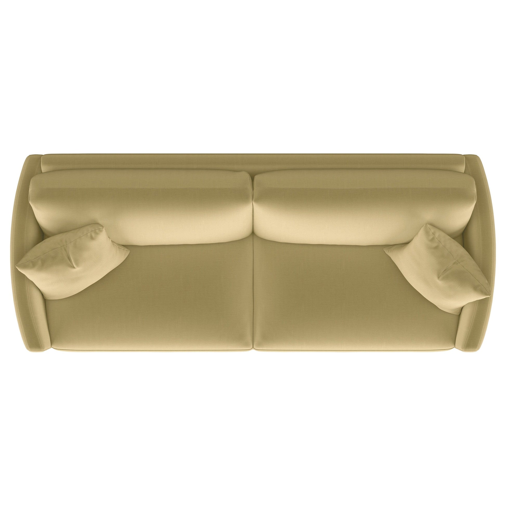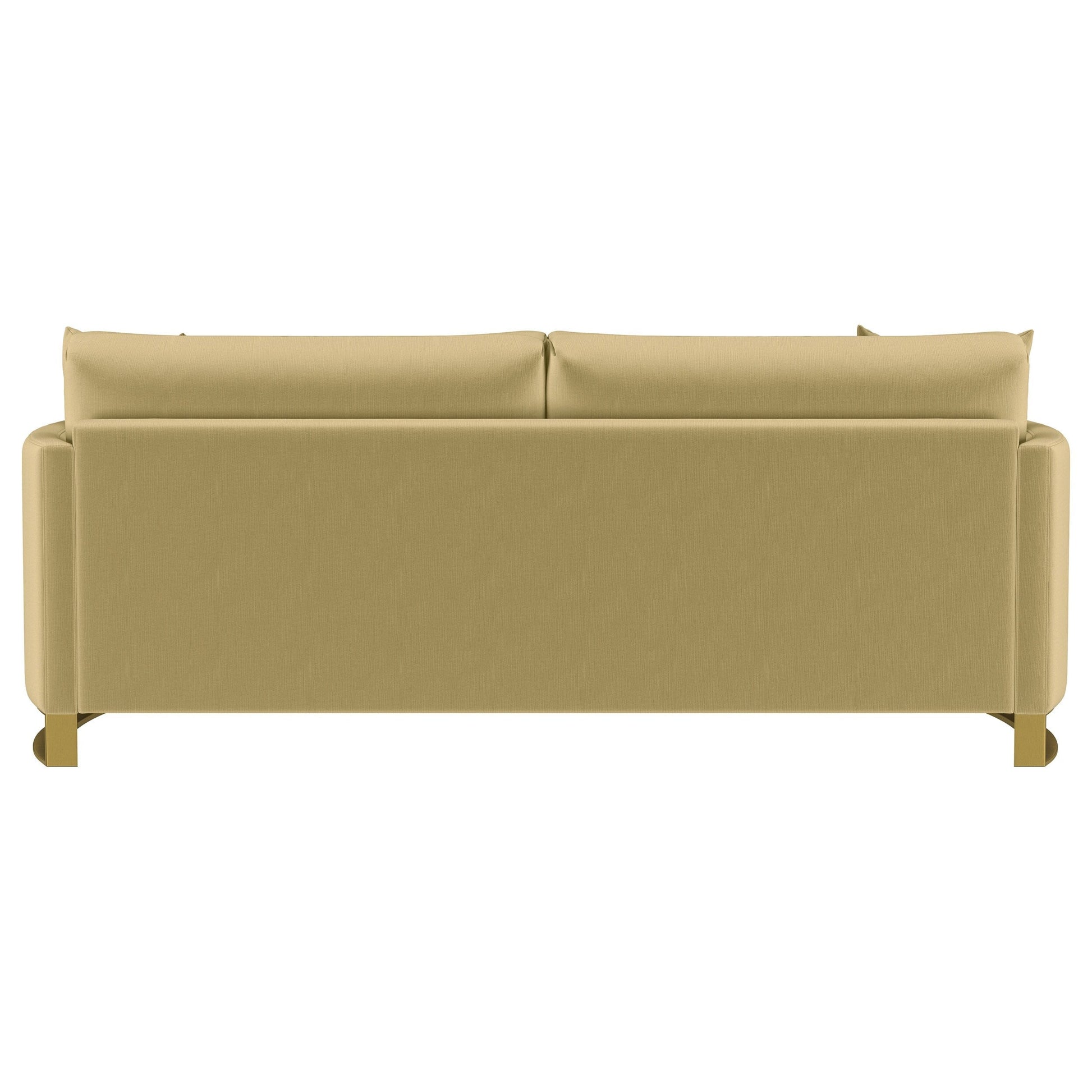 Offrez-vous un confort luxueux avec ce canapé en velours texturé. Ses coussins d'assise et de dossier réversibles en mélange de plumes sont agrémentés d'accoudoirs incurvés et de pieds en acier inoxydable doré. Son revêtement lisse et ses détails lustrés allient simplicité et splendeur intemporelle, faisant de ce meuble la pièce maîtresse idéale des intérieurs raffinés. Avec sa silhouette accueillante et sa présence gracieuse, il sublime style et détente.