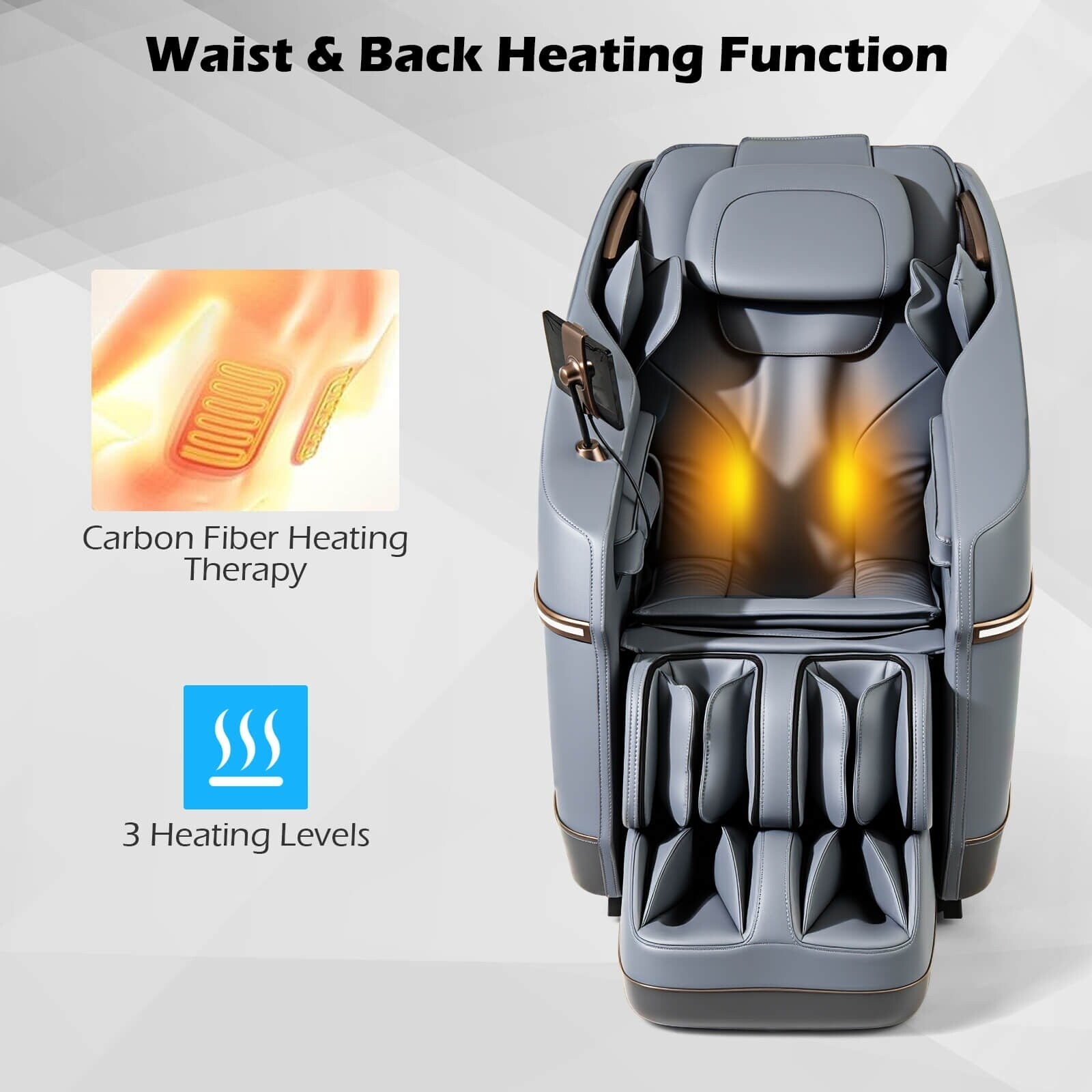 Le fauteuil de massage SL Track offre une zone de massage plus large, couvrant la tête, la nuque, les épaules, le dos, la taille, les hanches et les cuisses. Grâce à son scanner d'épaules, il ajuste automatiquement les rouleaux de massage pour un massage précis et adapté à chaque personne. 16 airbags, 3 niveaux de chauffage au niveau de la taille et 3 vitesses de grattage des pieds assurent un confort optimal. De plus, il propose 19 modes automatiques, 6 techniques de massage, 3 largeurs, 5 vitesses et 5 intensités de pression d'air réglables. Il est particulièrement adapté aux personnes travaillant longtemps en position assise. Son haut-parleur Bluetooth diffuse une musique agréable. Le fauteuil de massage répond aux commandes vocales, telles que « Allumez le fauteuil », « Allumez », « Étirez la nuque » et « Pause ». Il est également équipé d'un écran tactile LCD pour une utilisation facile. Aucun assemblage requis. Profitez immédiatement de votre massage.