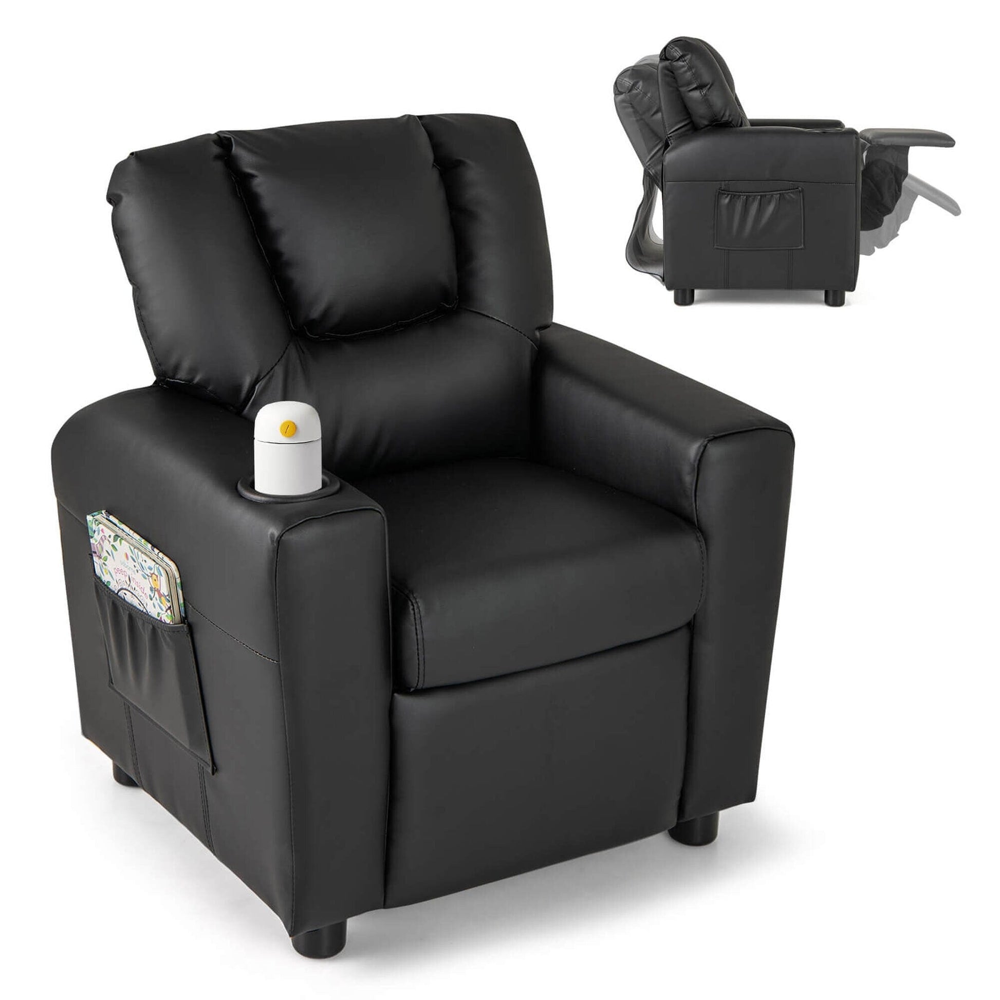 Fauteuil inclinable pour enfants Costway avec porte-gobelet et poche latérale réglable