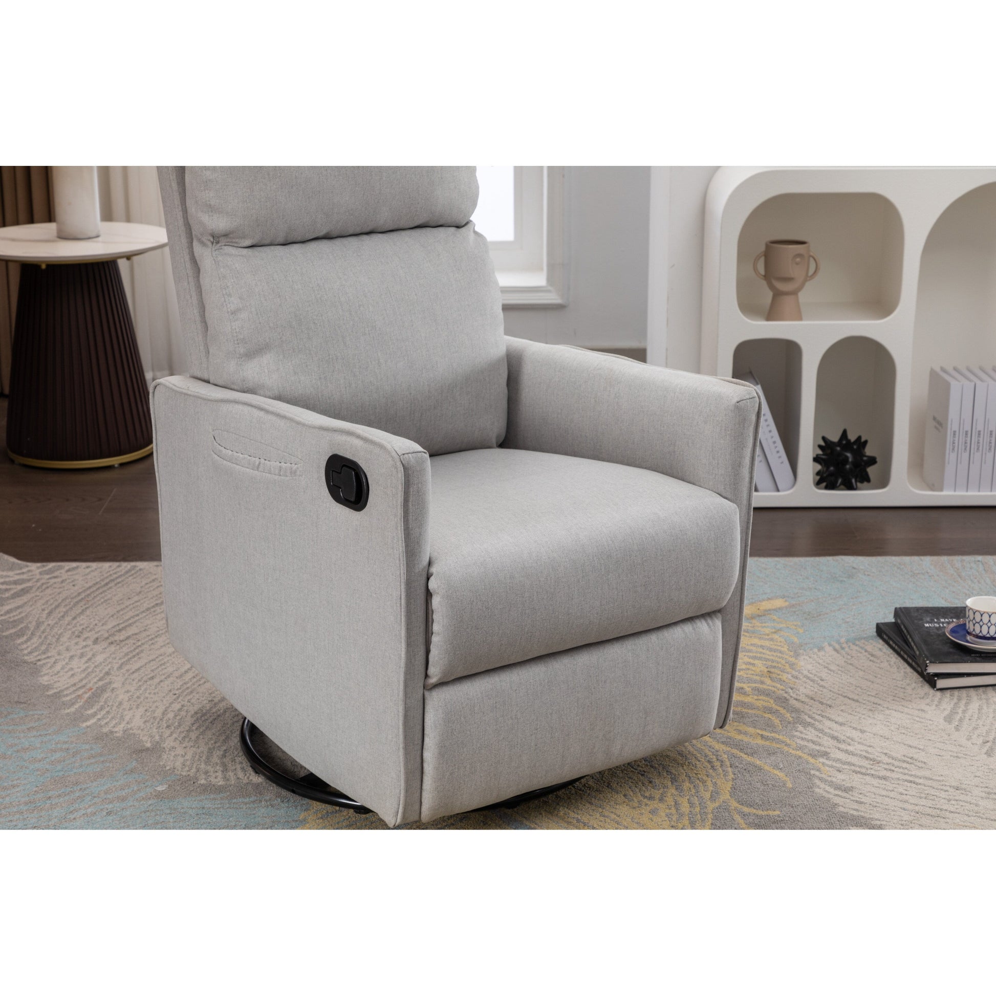 Fauteuil à bascule pivotant en coton et lin avec dossier et repose-pieds réglables