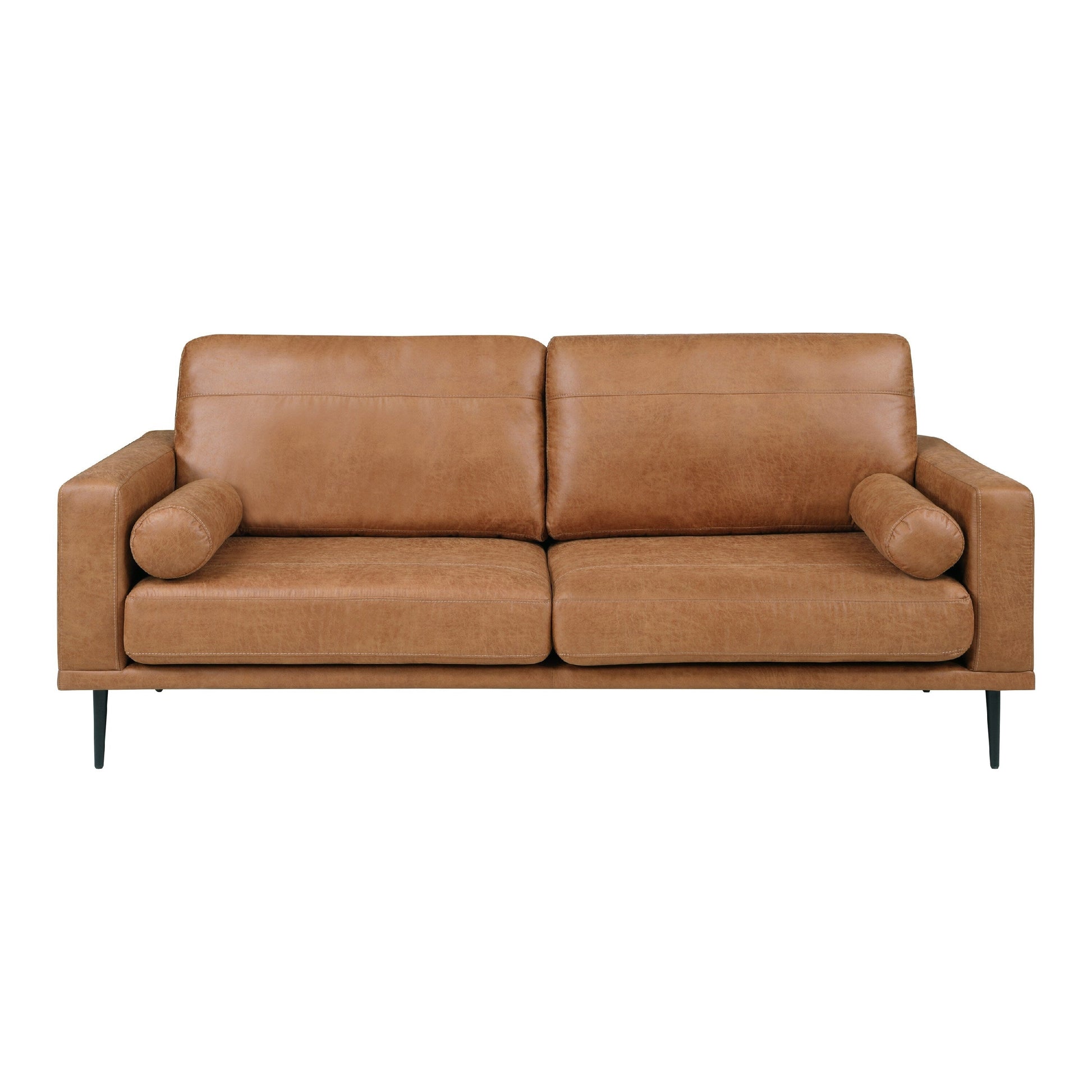 Canapé Coxi avec 2 coussins traversins, microfibre marron douce, 82 pouces