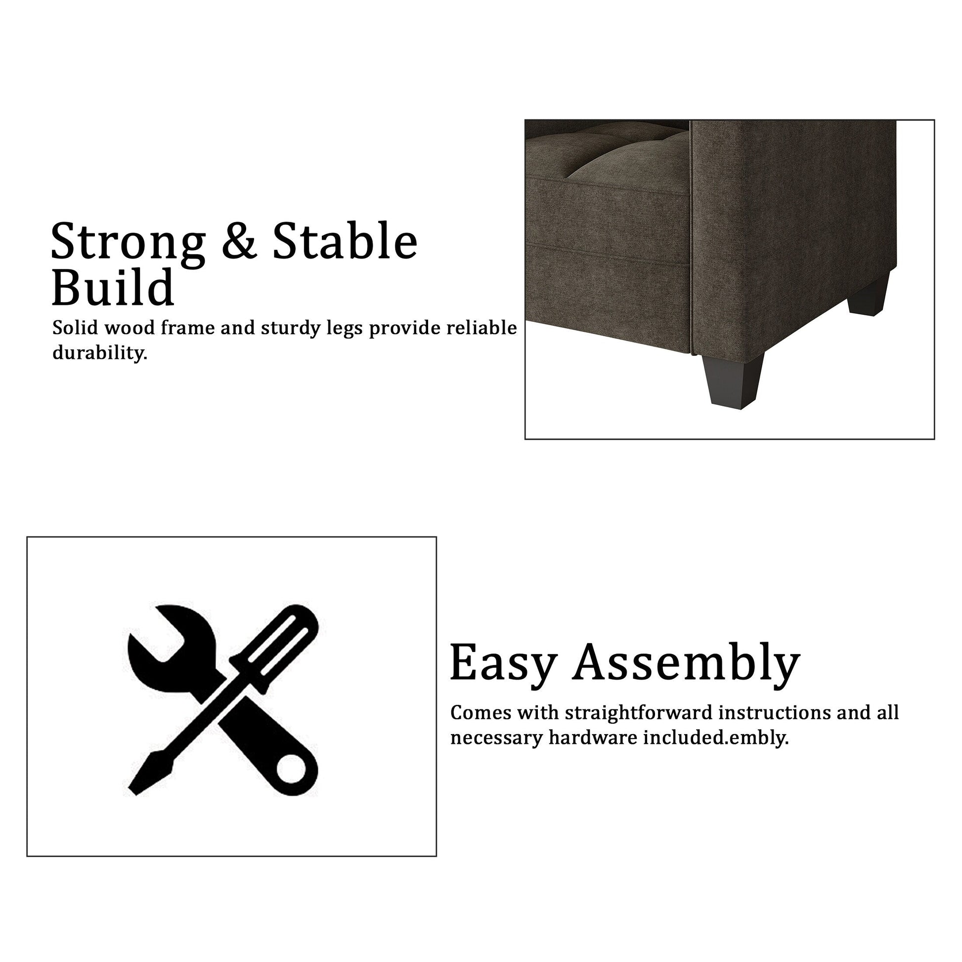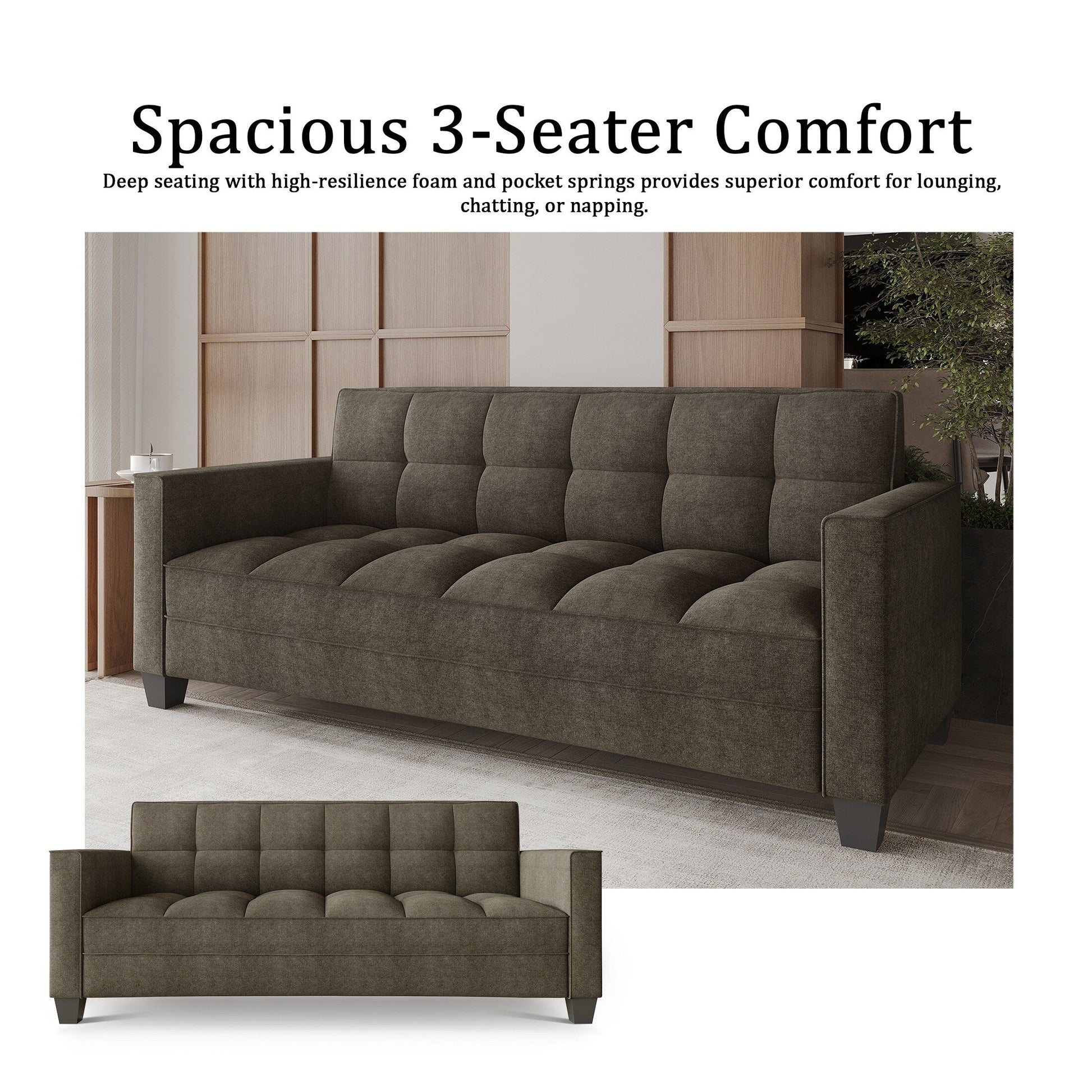 Apportez confort et style à votre intérieur avec cet élégant canapé trois places, idéal pour se détendre ou recevoir. Ses coutures capitonnées raffinées apportent une touche raffinée, tandis que ses ressorts ensachés et ses coussins en mousse haute densité offrent un confort et une durabilité supérieurs. Doté d'accoudoirs carrés moelleux pour un soutien accru et de quatre pieds en plastique robustes pour une stabilité durable, ce canapé est recouvert d'un tissu 100 % lin polyester doux et de qualité supérieure. Disponible en beige, gris, bleu et marron, il s'intègre parfaitement à tous les styles de décoration. Facile à assembler et livré dans un seul carton, il est un ajout pratique et élégant à tout espace de vie.