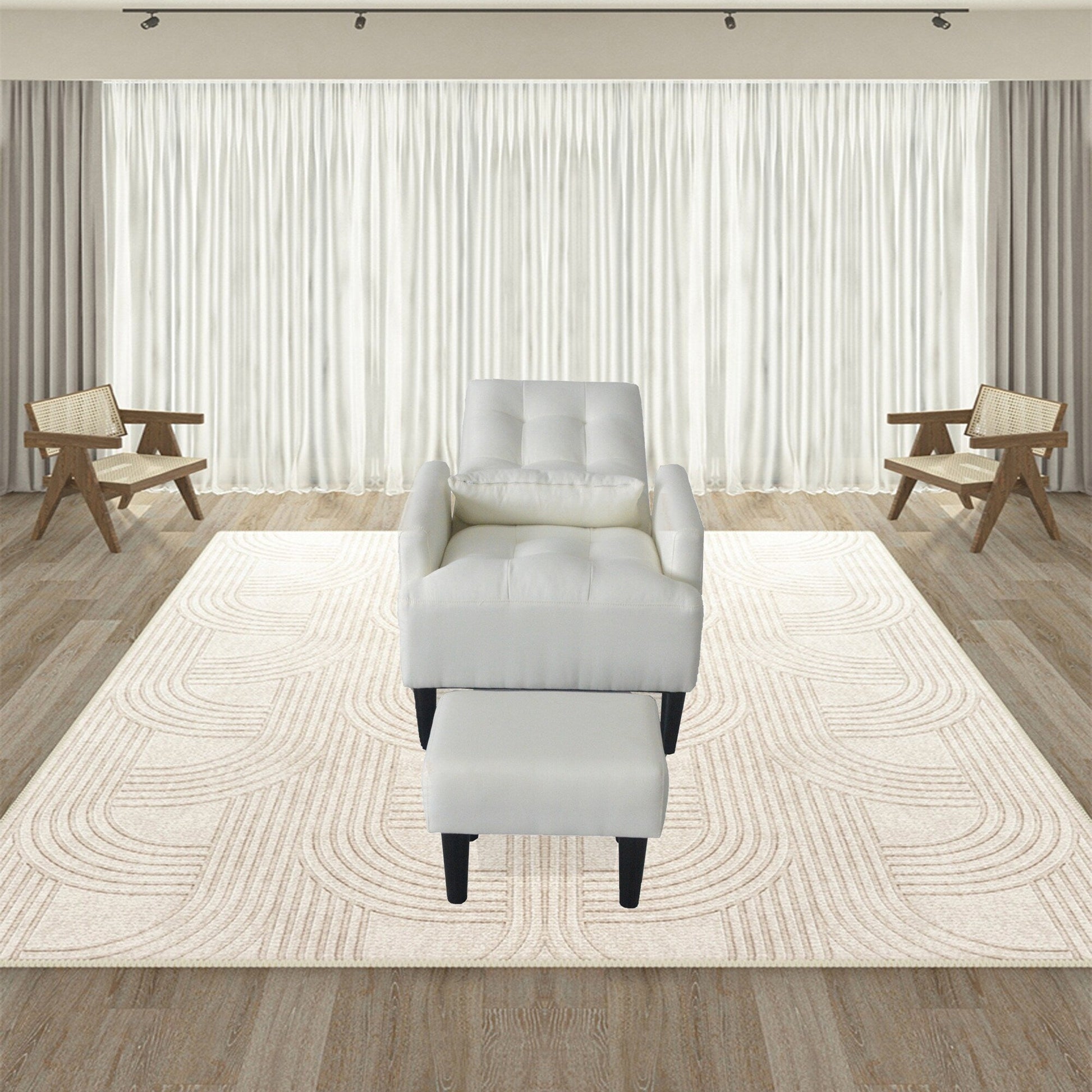 Fauteuil de salon multifonction rembourré à dossier haut, couleur blanc crème, 26,77 po, avec pouf