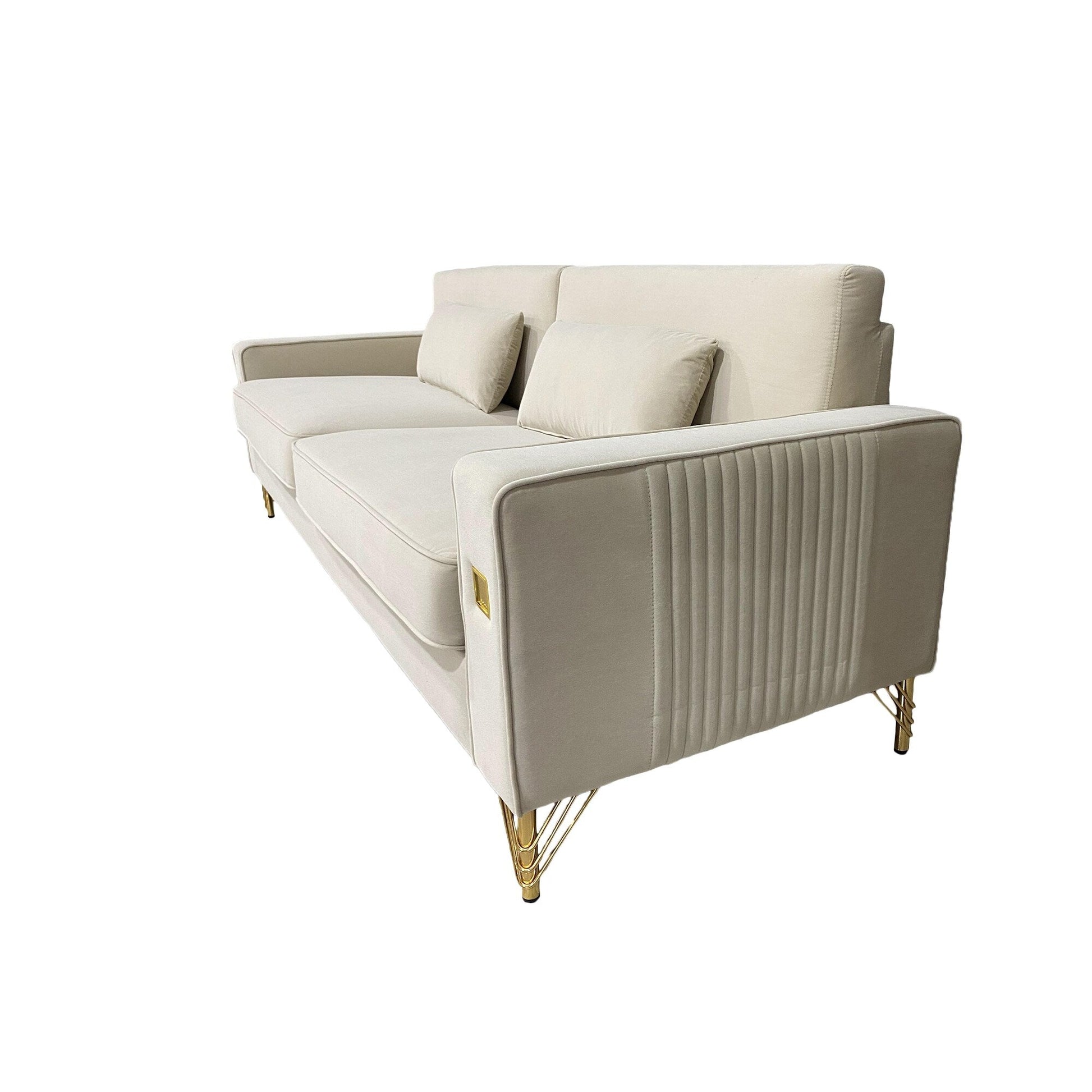 Canapé 3 places en velours blanc crème moderne 85,63 avec touches dorées et coussins moelleux pour le salon