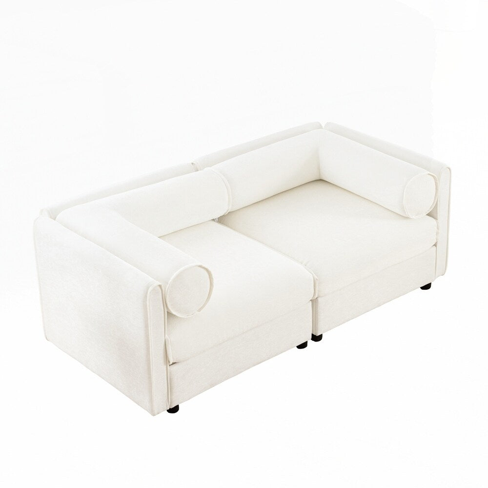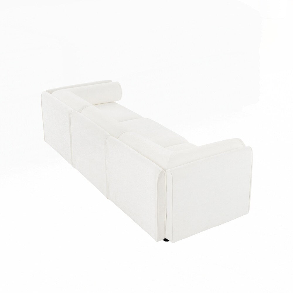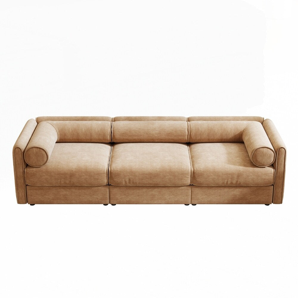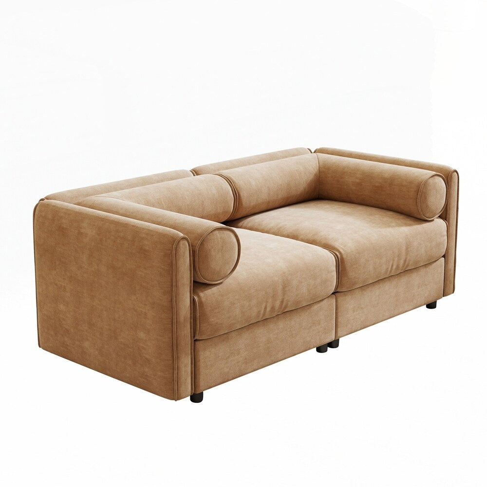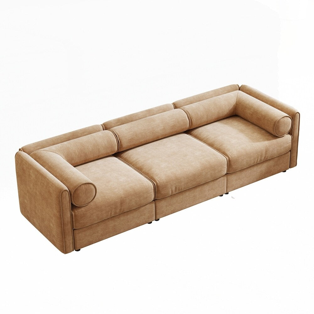 Canapé en chenille avec dossier et accoudoirs cylindriques et siège de rangement