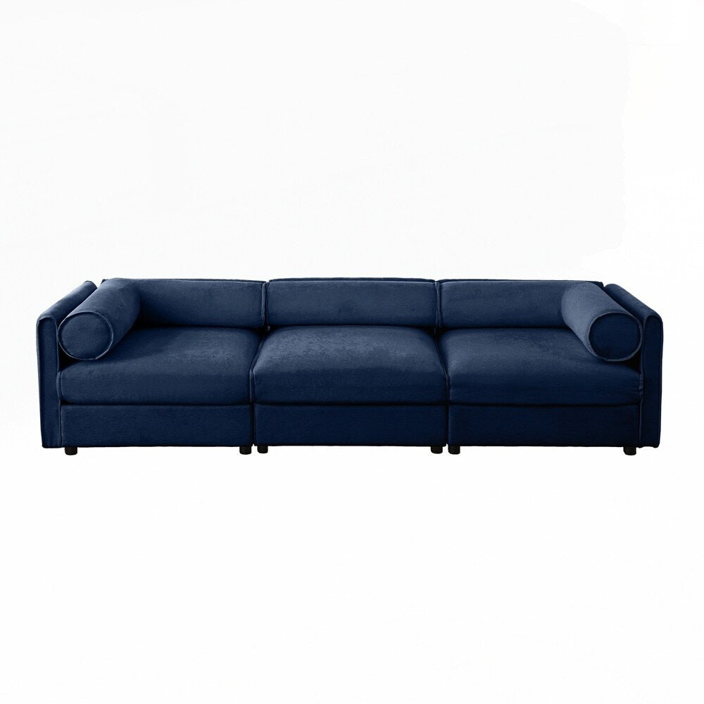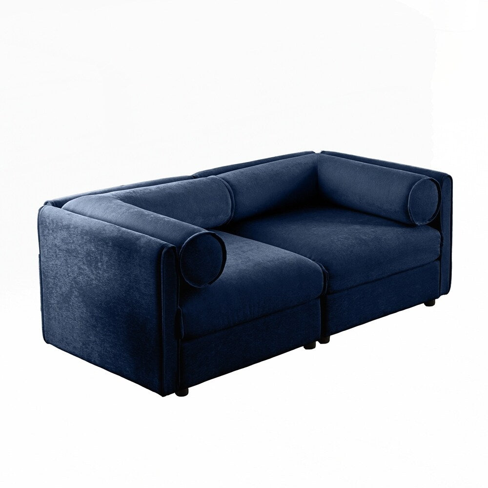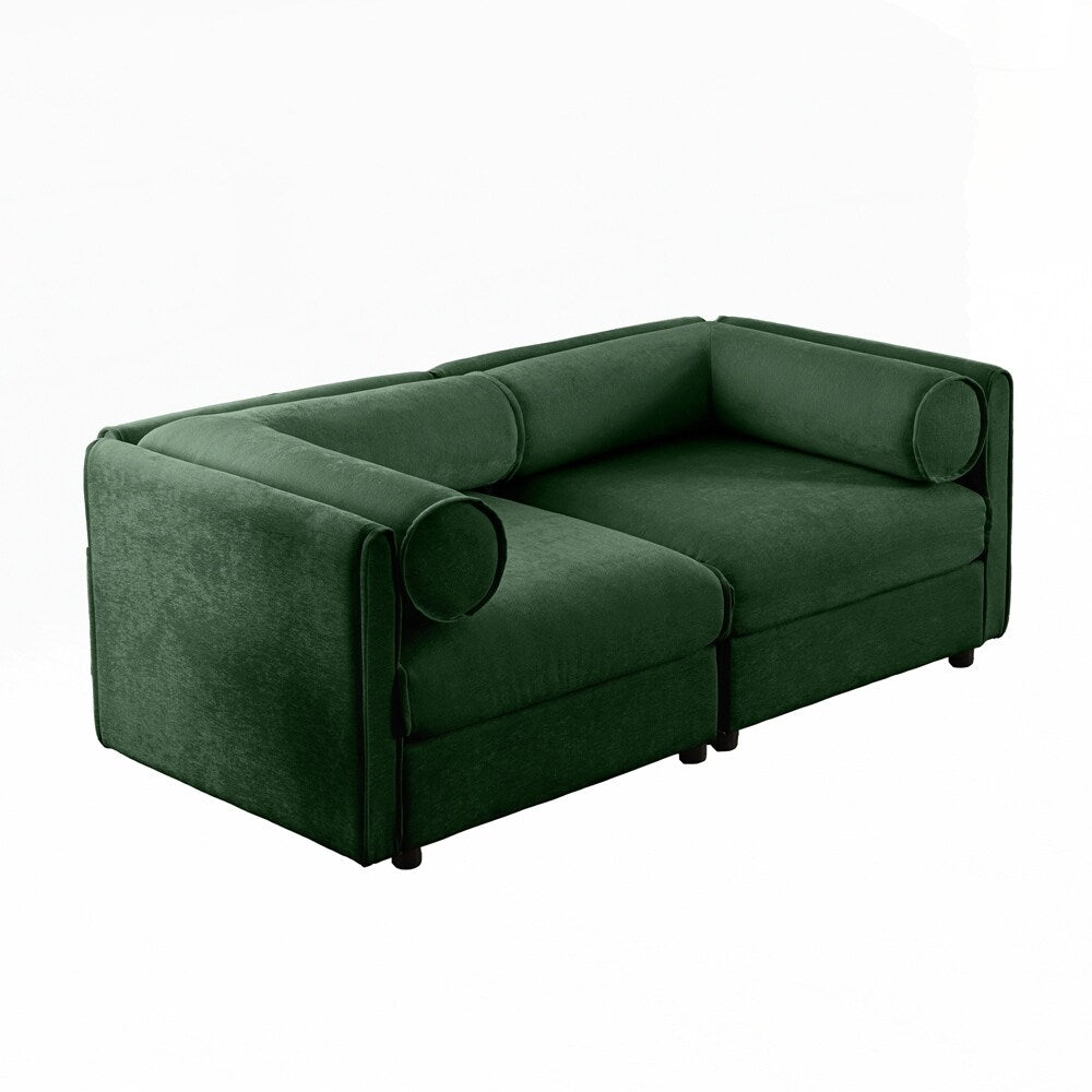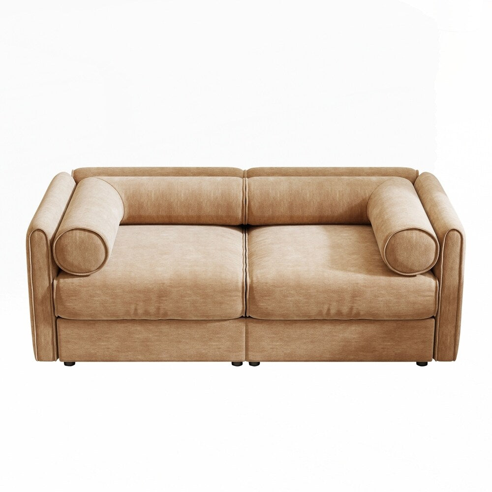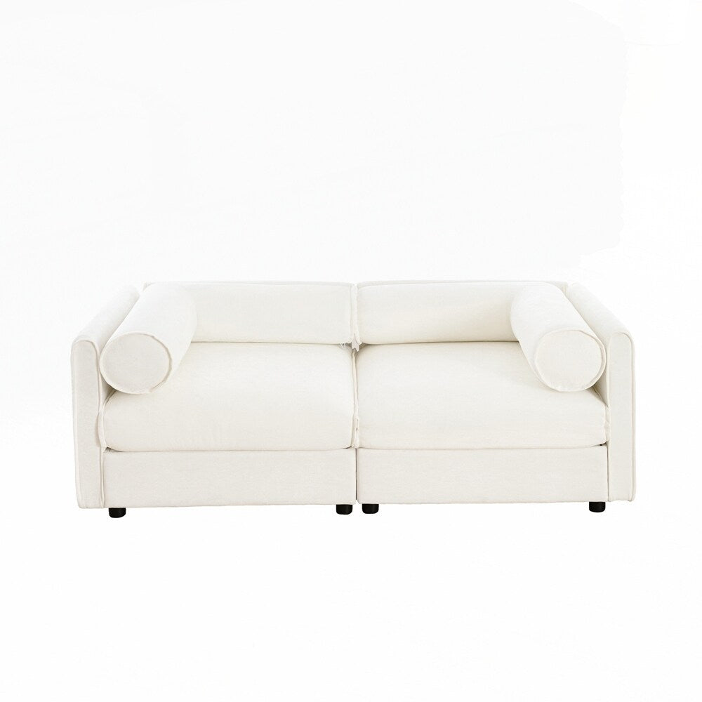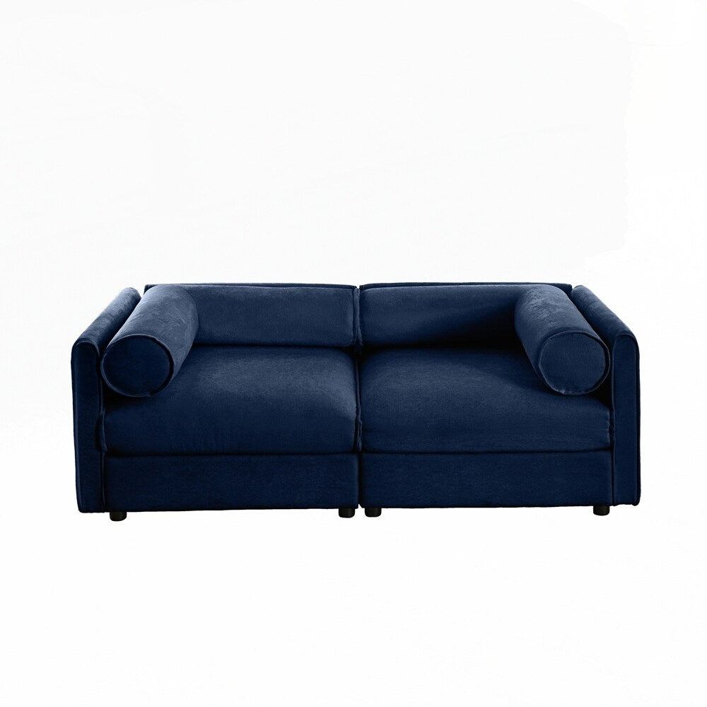 Canapé en chenille avec dossier et accoudoirs cylindriques et siège de rangement
