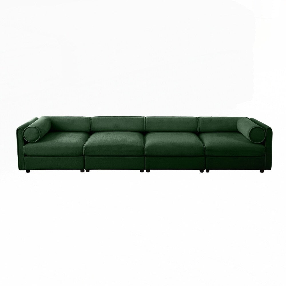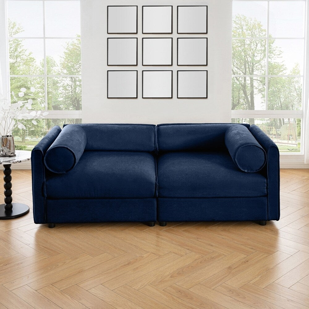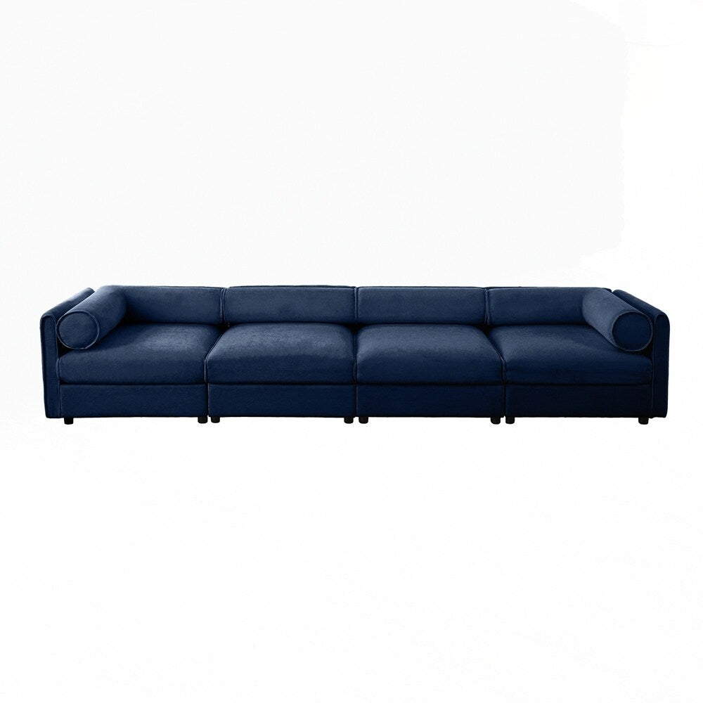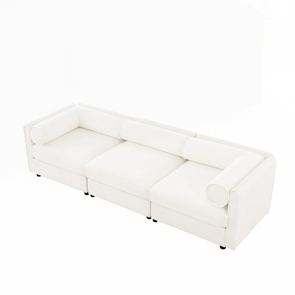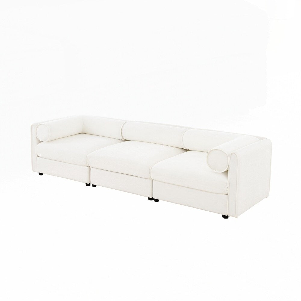 Canapé en chenille avec dossier et accoudoirs cylindriques et siège de rangement