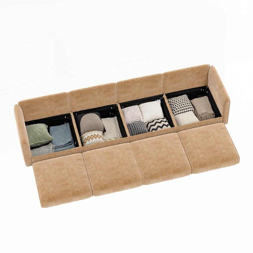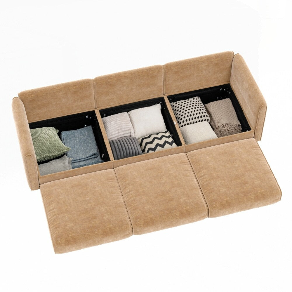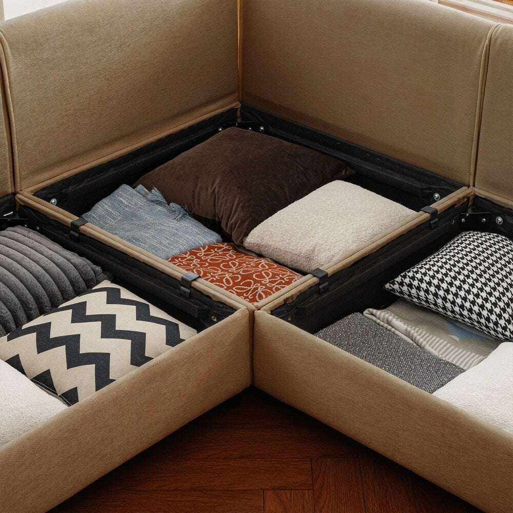- Solutions de rangement astucieuses - Optimisez la fonctionnalité de votre salon grâce aux compartiments de rangement intégrés aux sièges et au pouf. Idéal pour ranger couvertures, oreillers, magazines ou télécommandes, ce canapé vous permet de garder votre espace bien rangé et organisé sans sacrifier le style.