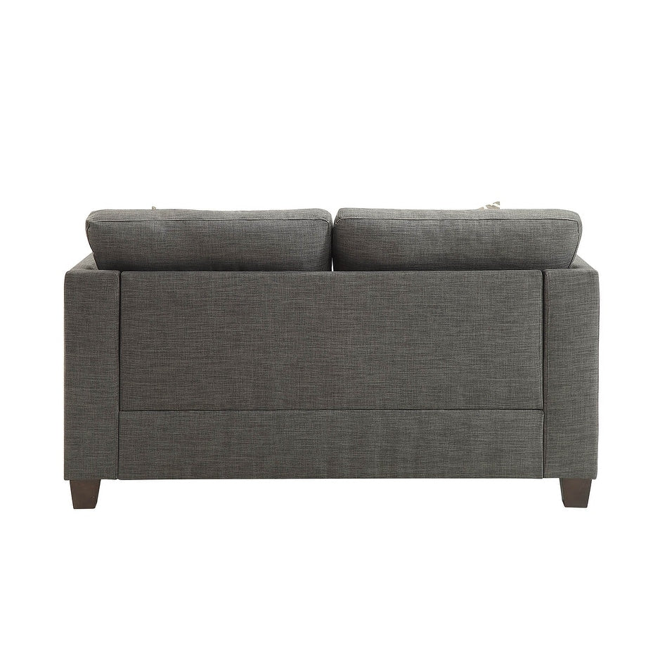Canapé causeuse en lin gris foncé avec coussins et clous décoratifs