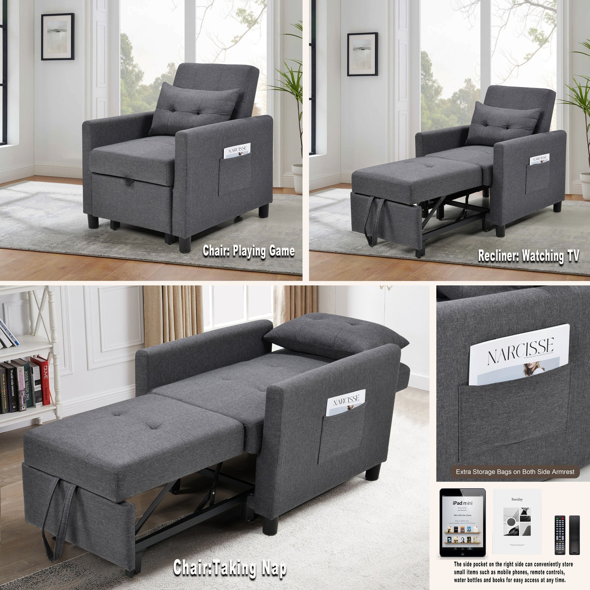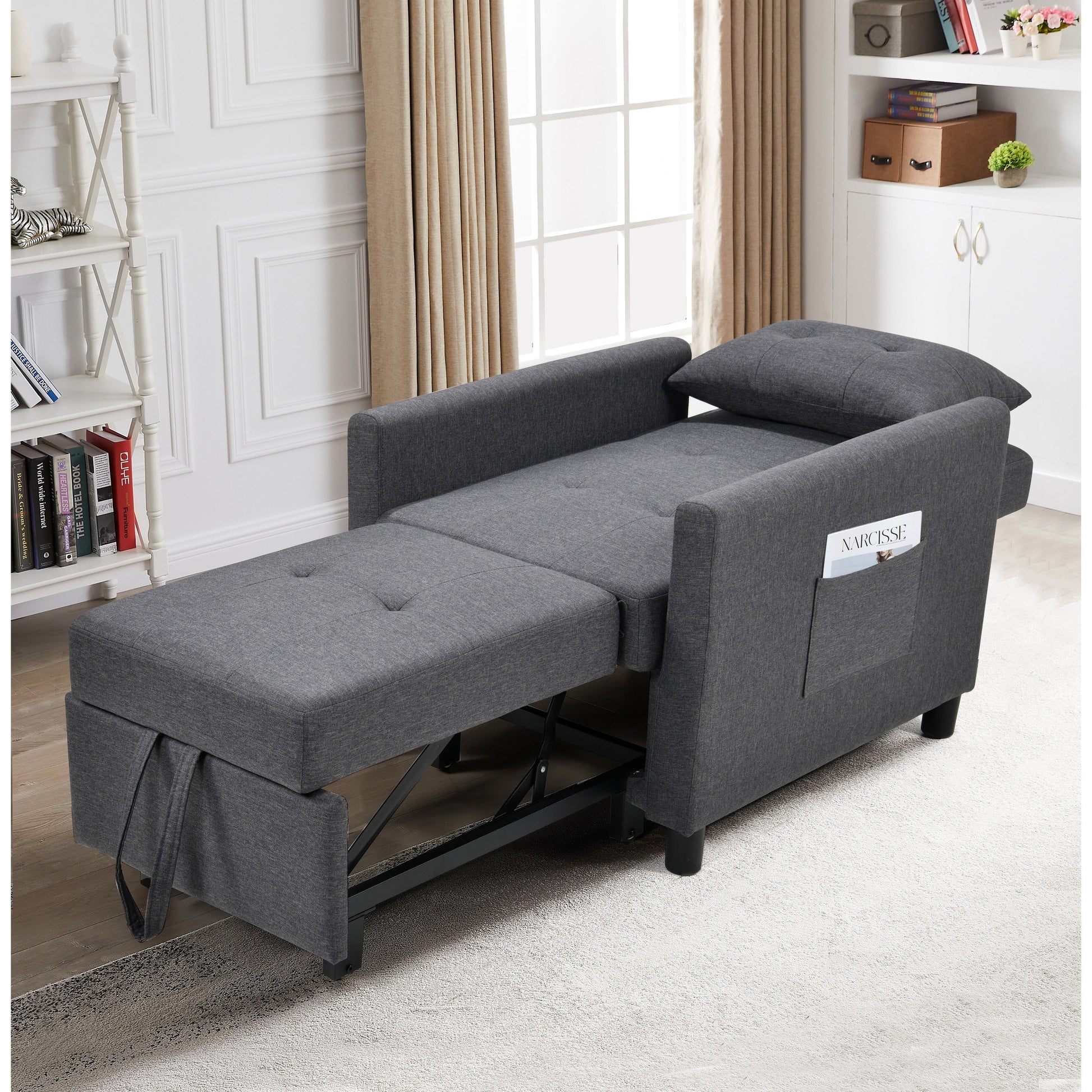 Canapé-lit convertible 3 en 1 gris foncé moderne de 27,5 pouces avec dossier réglable et oreiller pour le salon