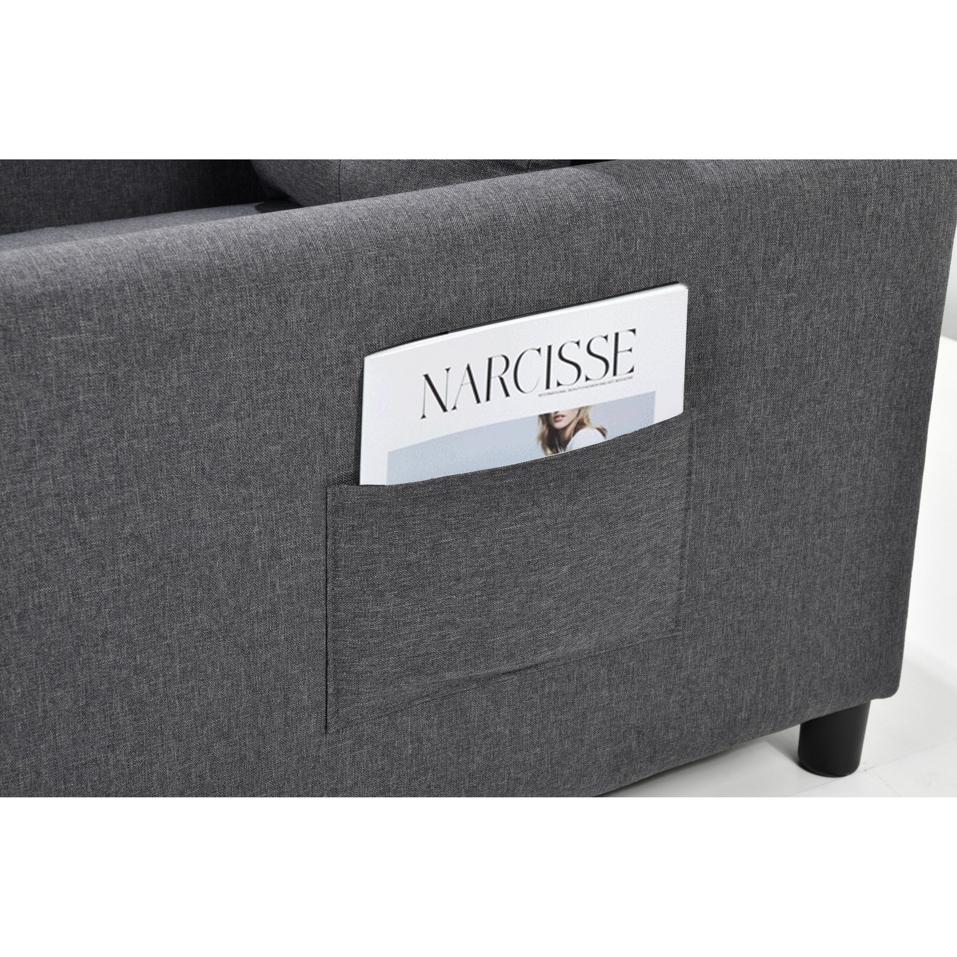 - Un oreiller et une poche latérale : Ce canapé-lit multifonctionnel est équipé d'un oreiller. Ce dernier peut servir de coussin lombaire pour bien soutenir votre taille en position assise, vous permettant ainsi de lire, de regarder la télévision ou de jouer à des jeux, ou de coussin pour un sommeil réparateur. La poche latérale permet de ranger facilement de petits objets tels que téléphones portables, télécommandes, bouteilles d'eau et livres, pour un accès facile à tout moment.