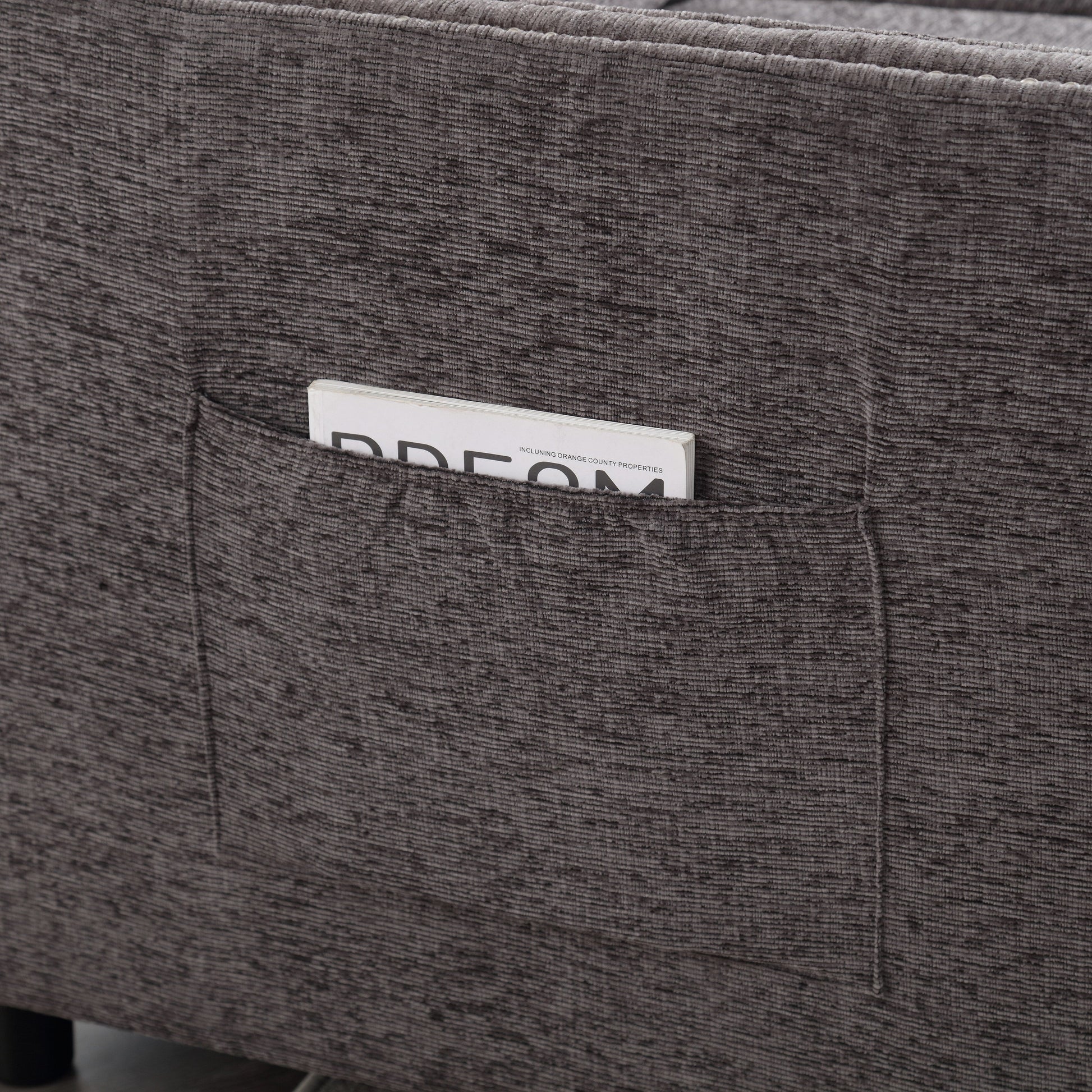 - Recouvert d'un tissu chenille semblable à un nuage, le canapé offre un toucher doux tout en offrant une texture duveteuse et respirante.
