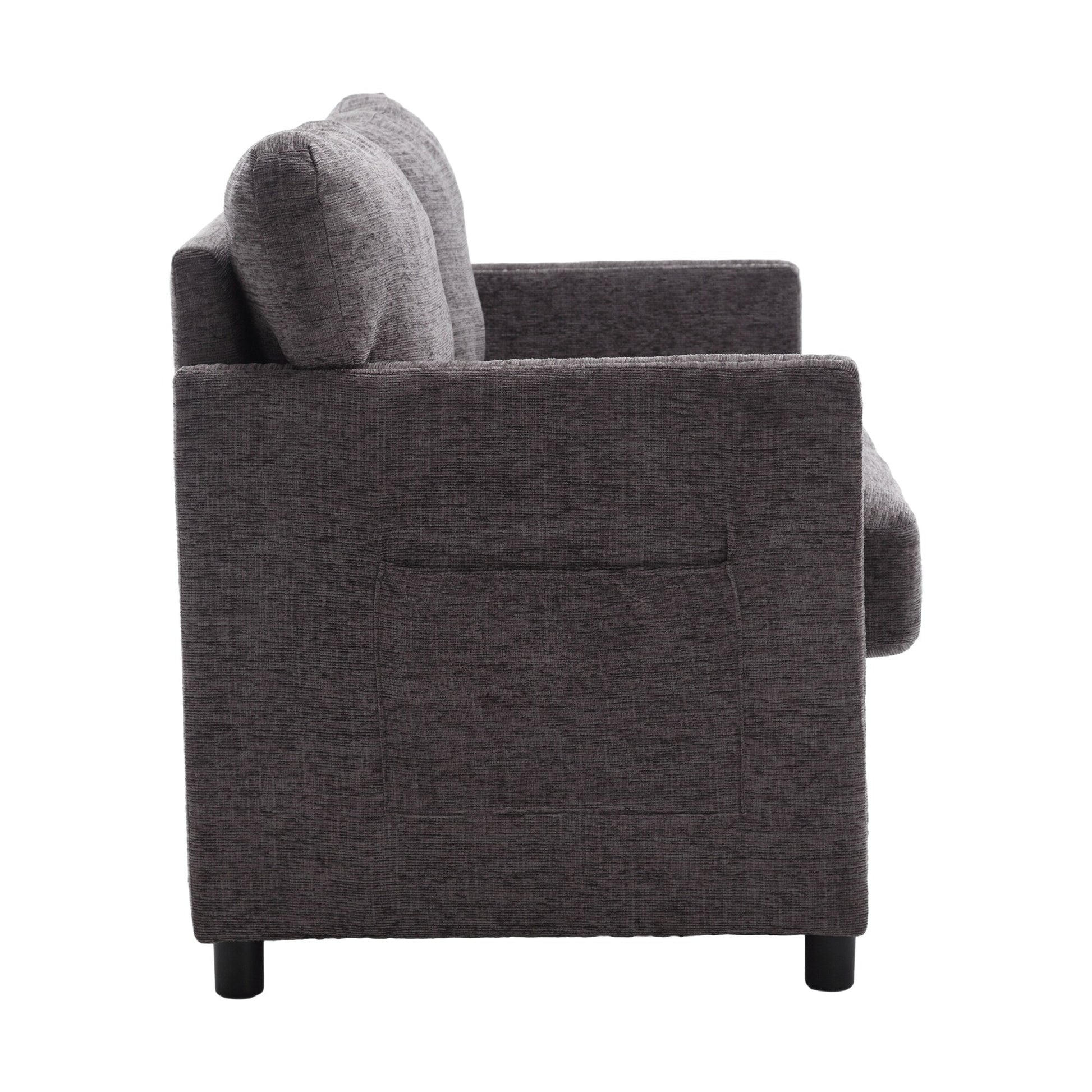 Canapé causeuse gris foncé moderne 52,36 pouces en chenille avec poche et clous pour le salon