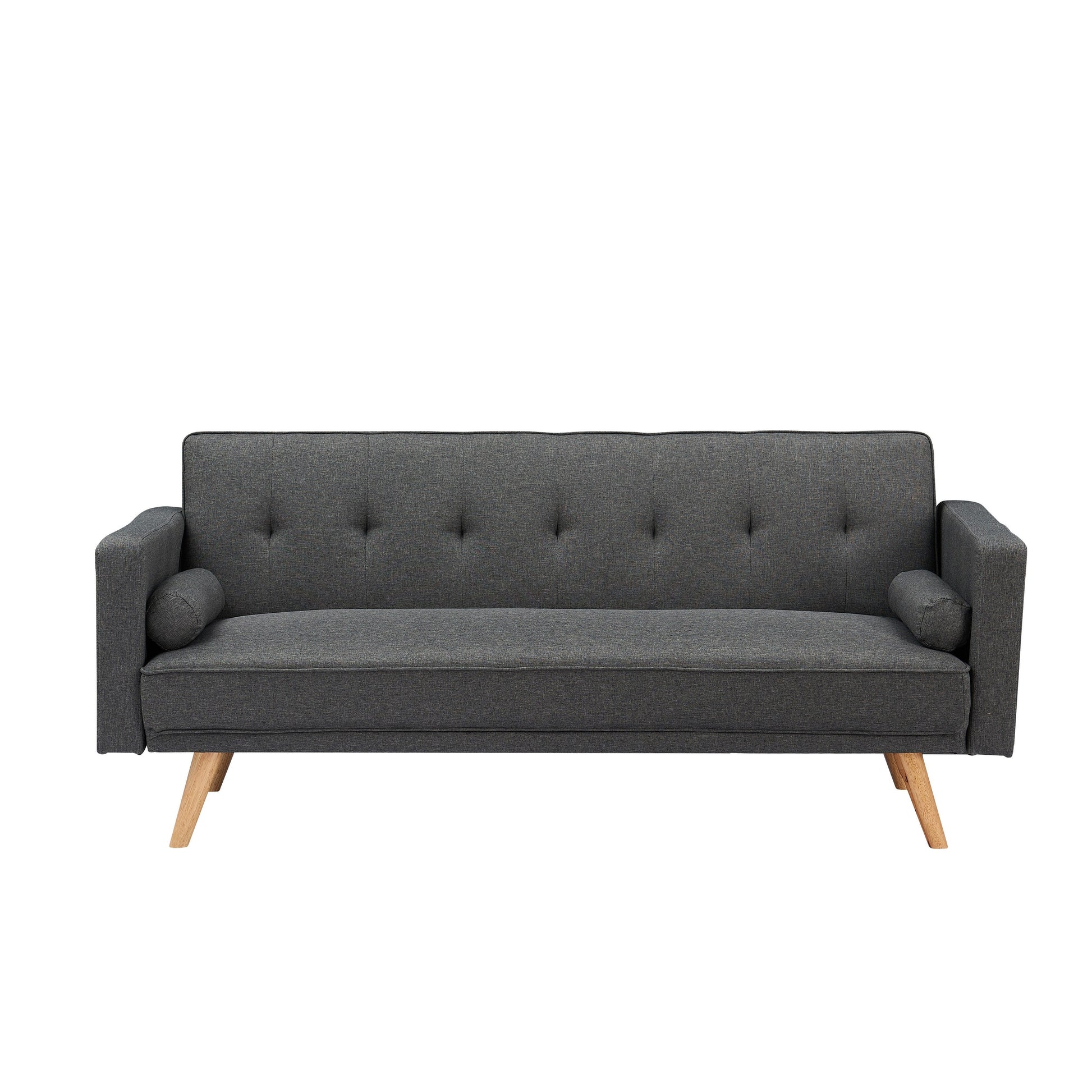 Canapé-lit 3 places gris foncé moderne en coton 71,65 avec dossier capitonné et deux coussins ronds pour le salon