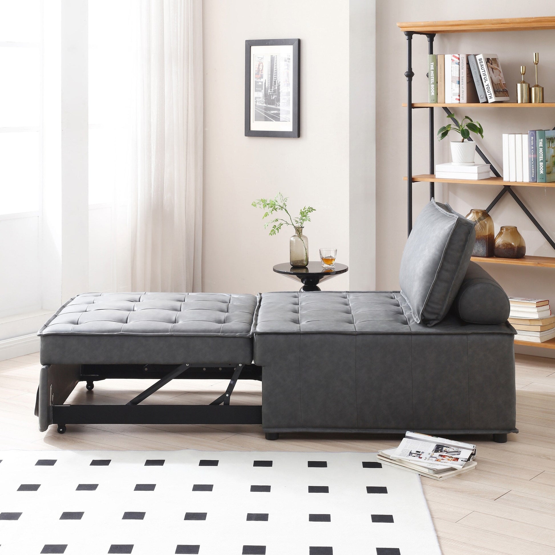 Canapé-lit gigogne simple multifonction en similicuir gris foncé 39 avec dossier réglable et oreiller pour le salon