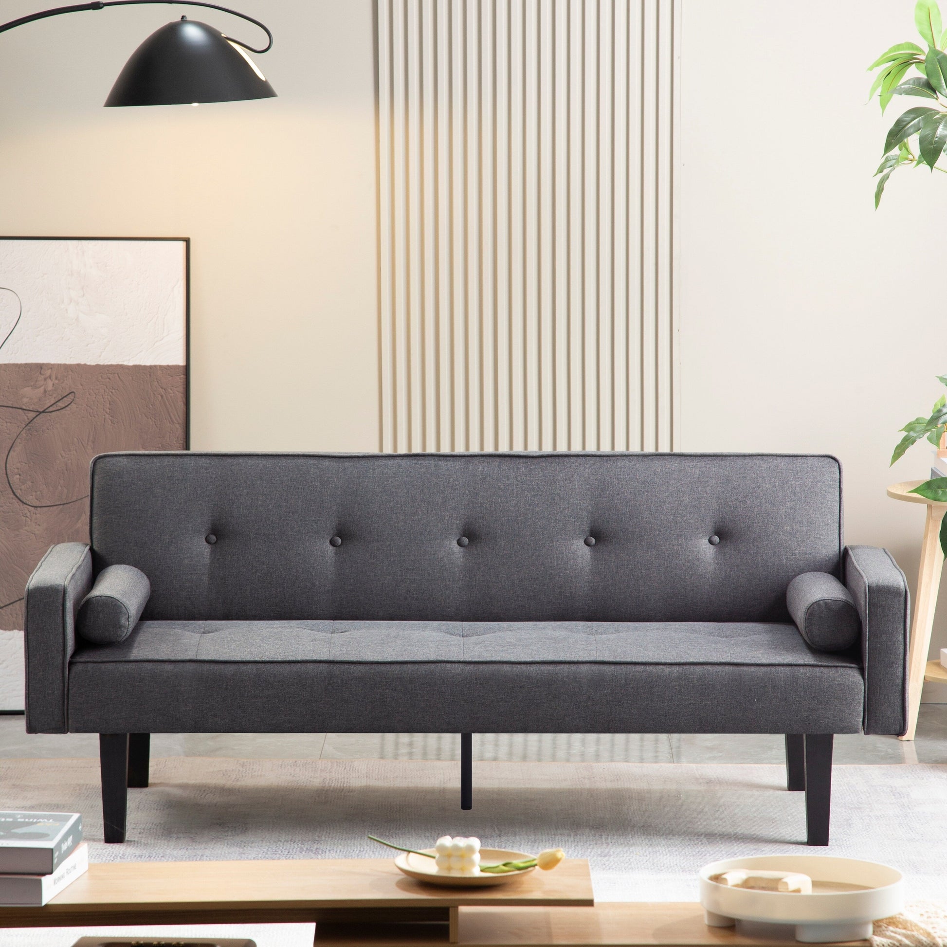 Canapé-lit futon 3 places convertible gris foncé moderne 71,65 avec pieds en bois massif et oreillers pour le salon