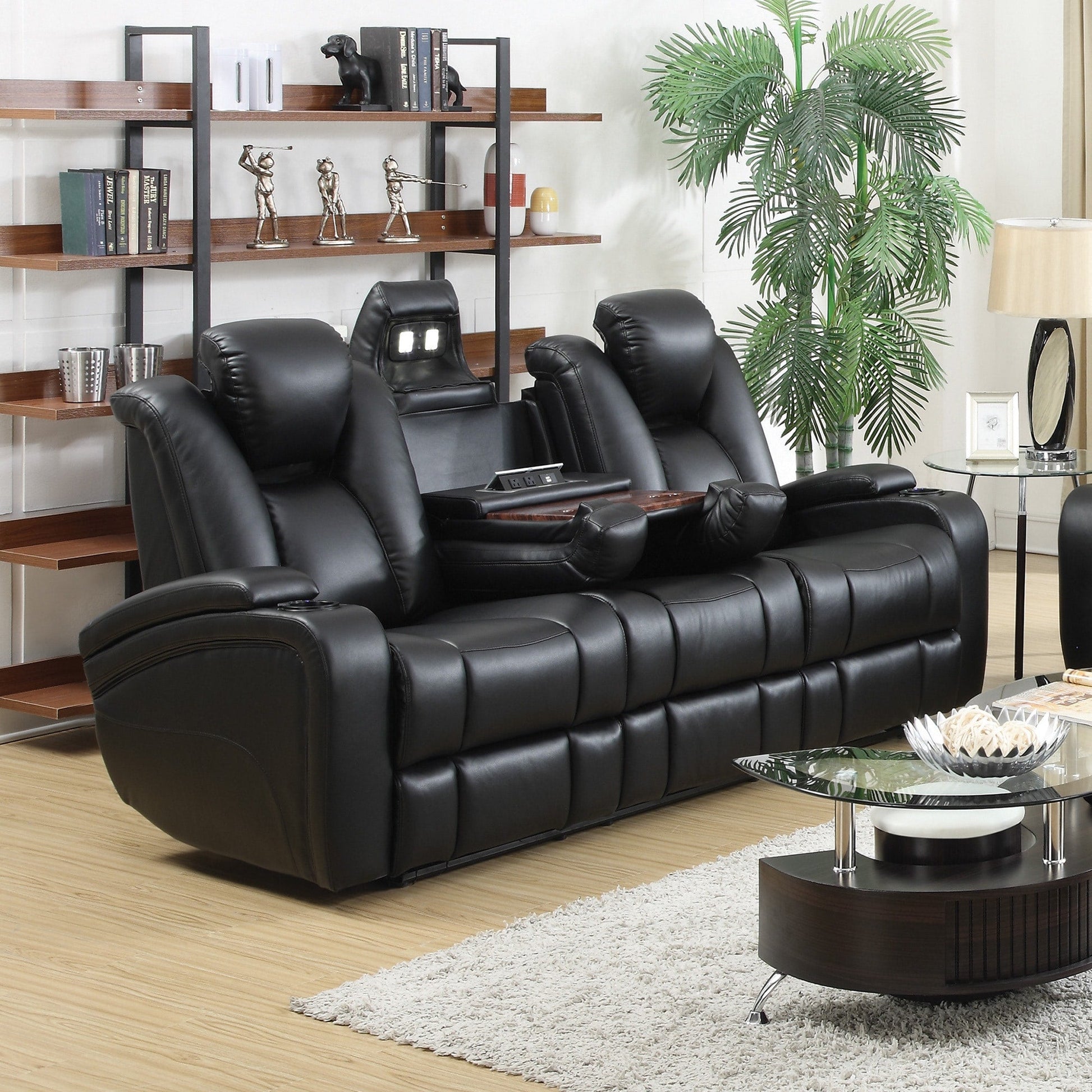 Canapé électrique Delange en similicuir noir avec appuie-têtes