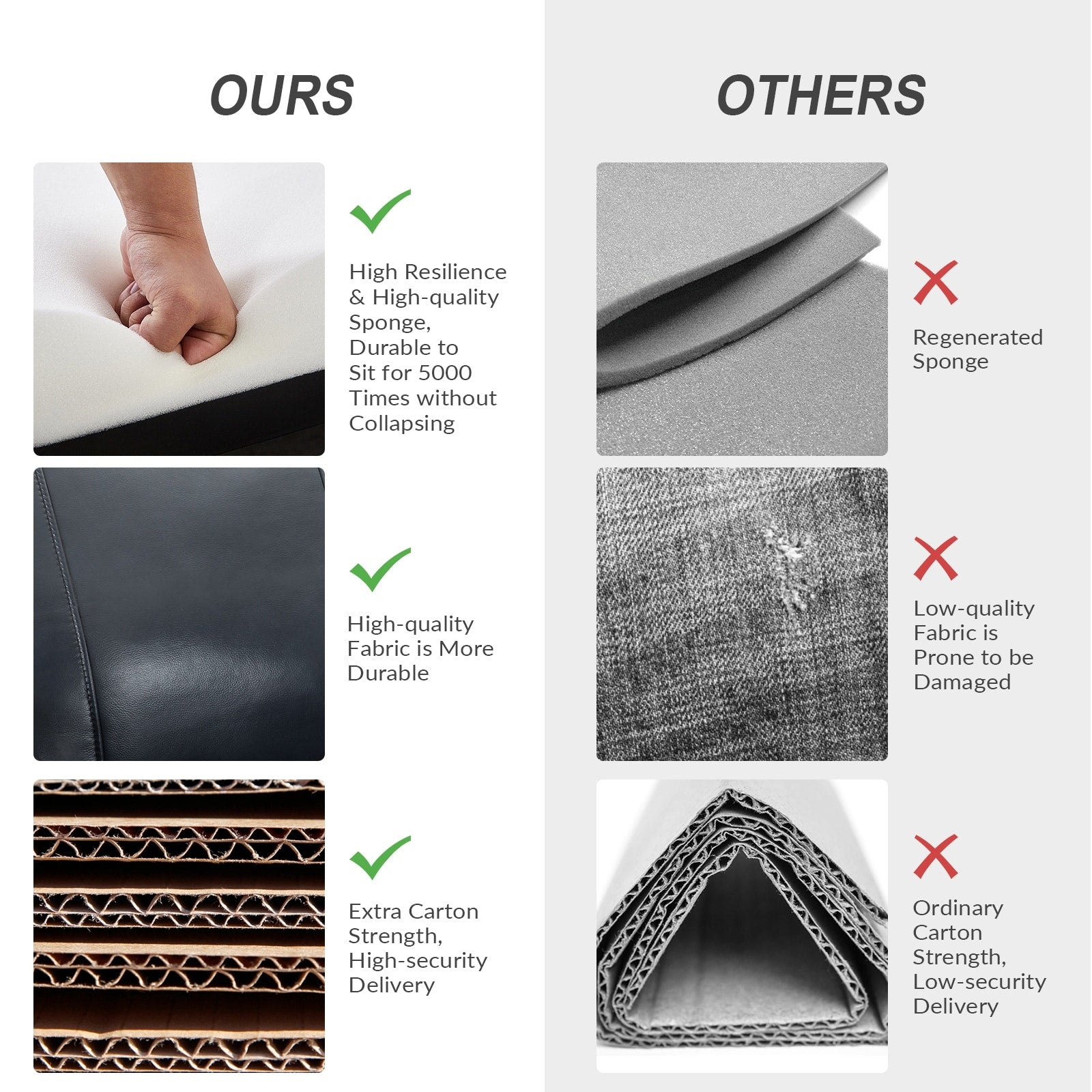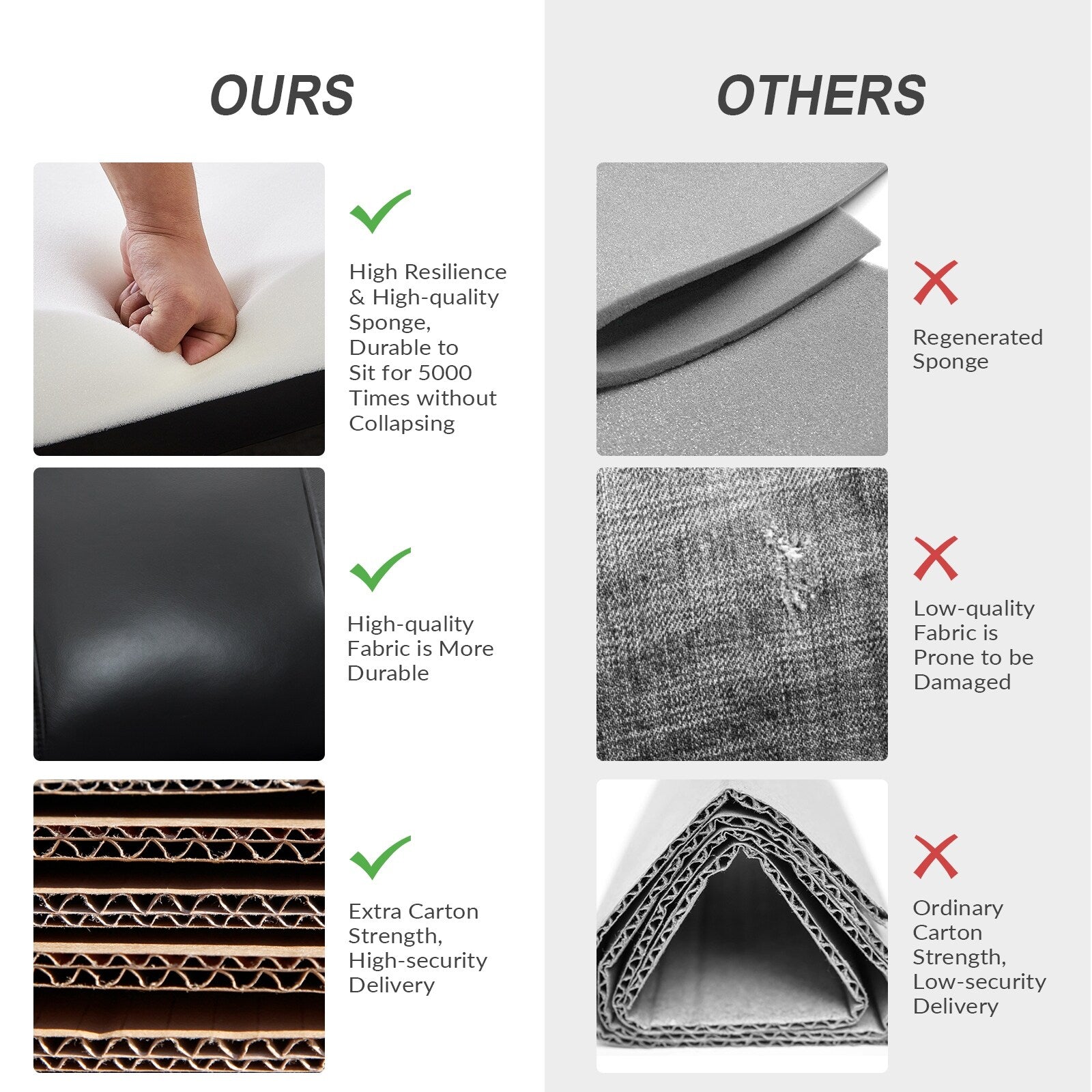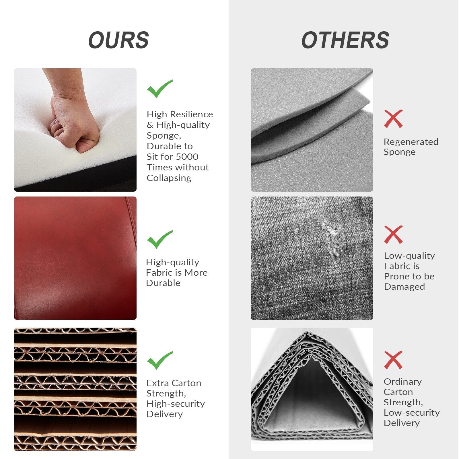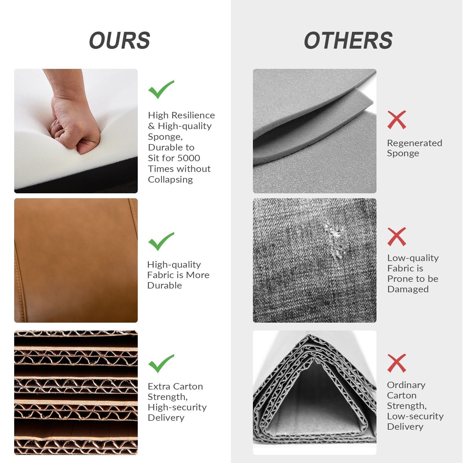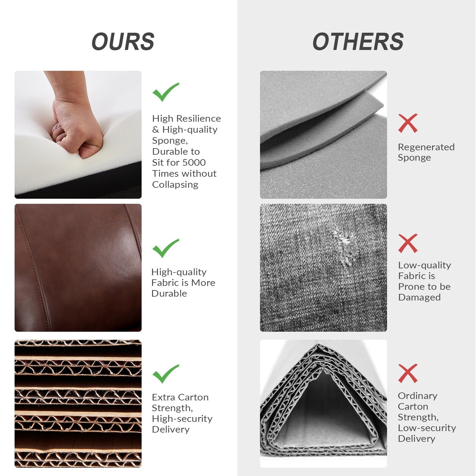 - Siège confortable : ressort en S intégré avec mousse souple et coton polypropylène enveloppé de cuir véritable pour créer un endroit parfait pour les loisirs.