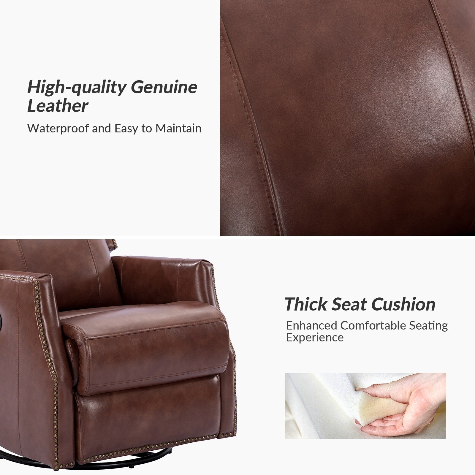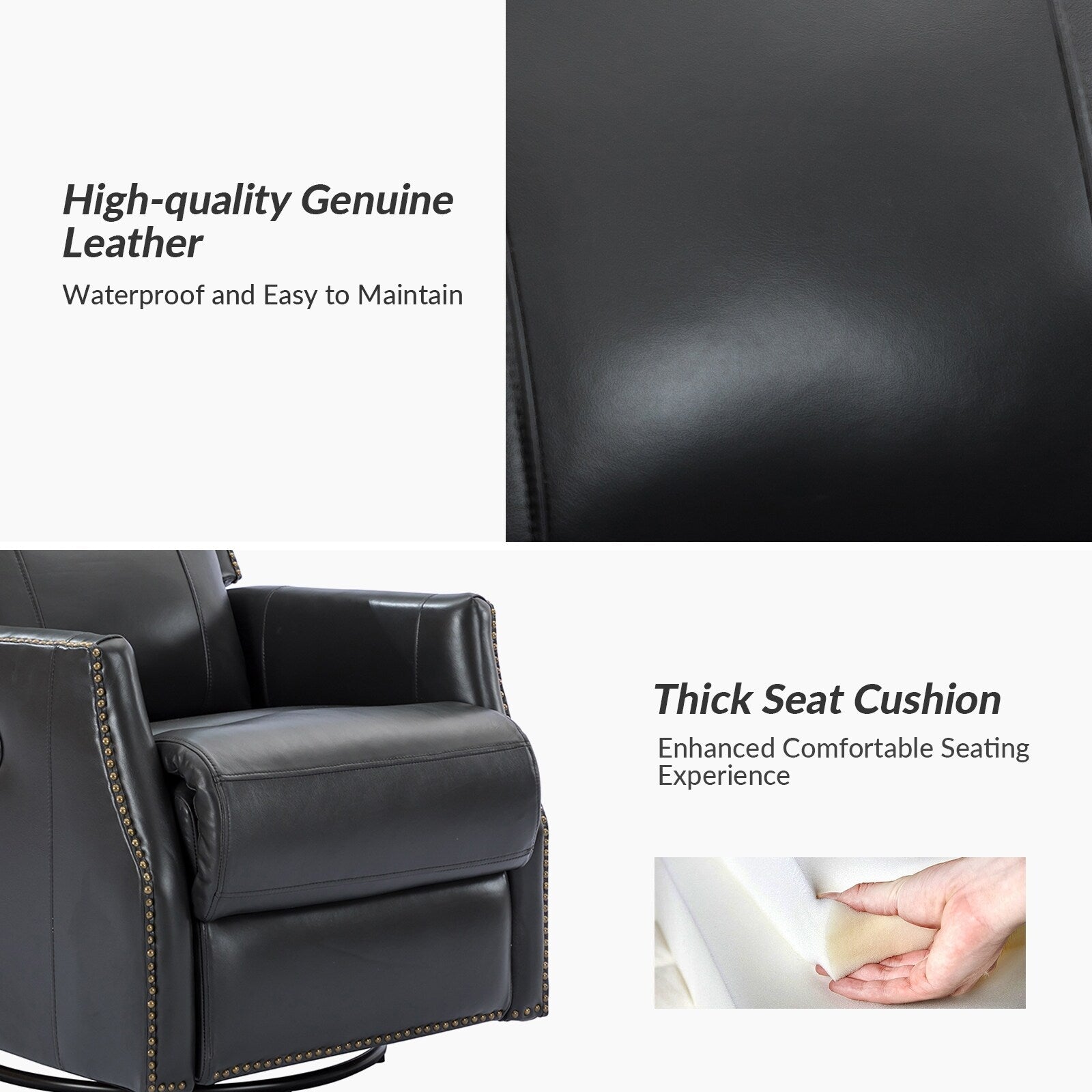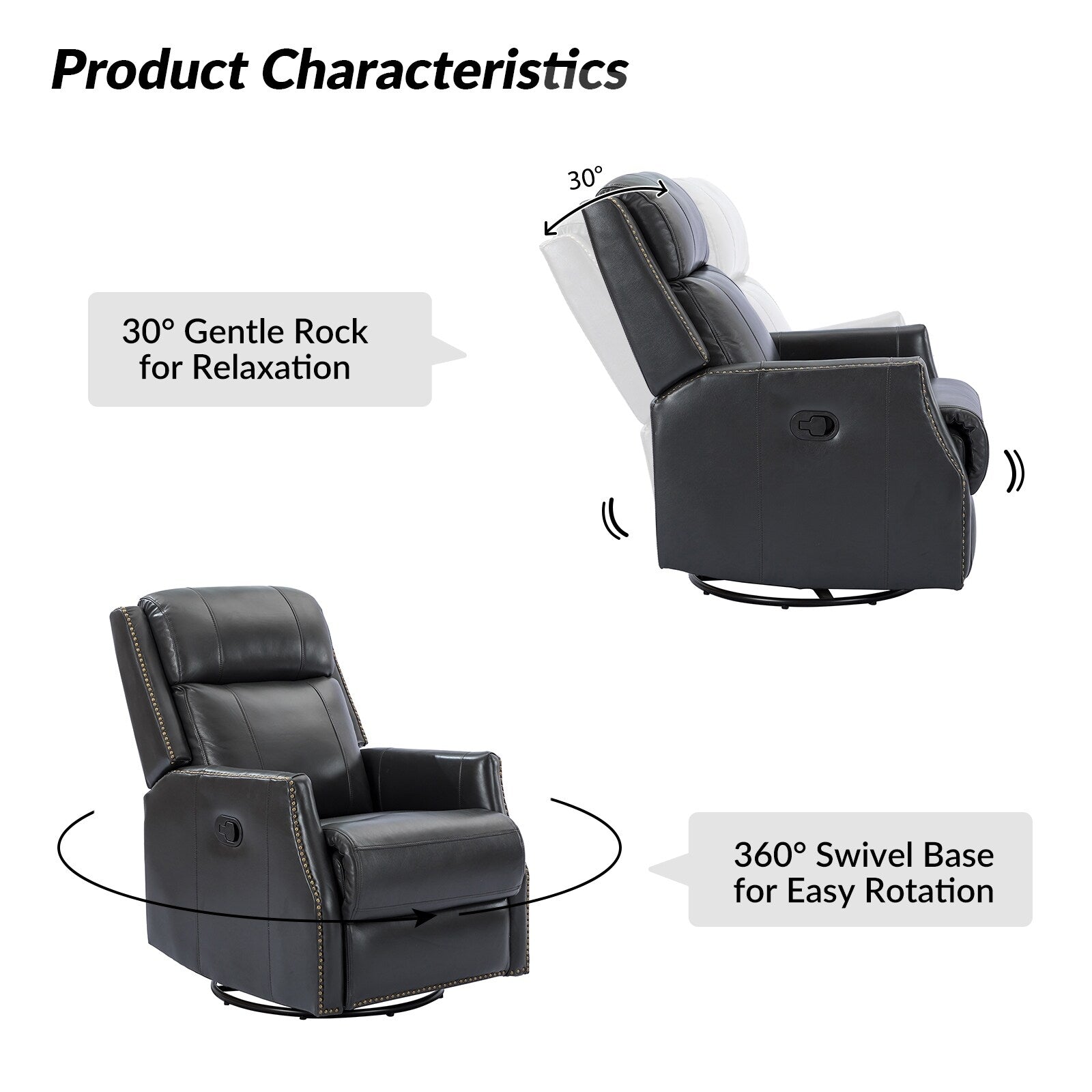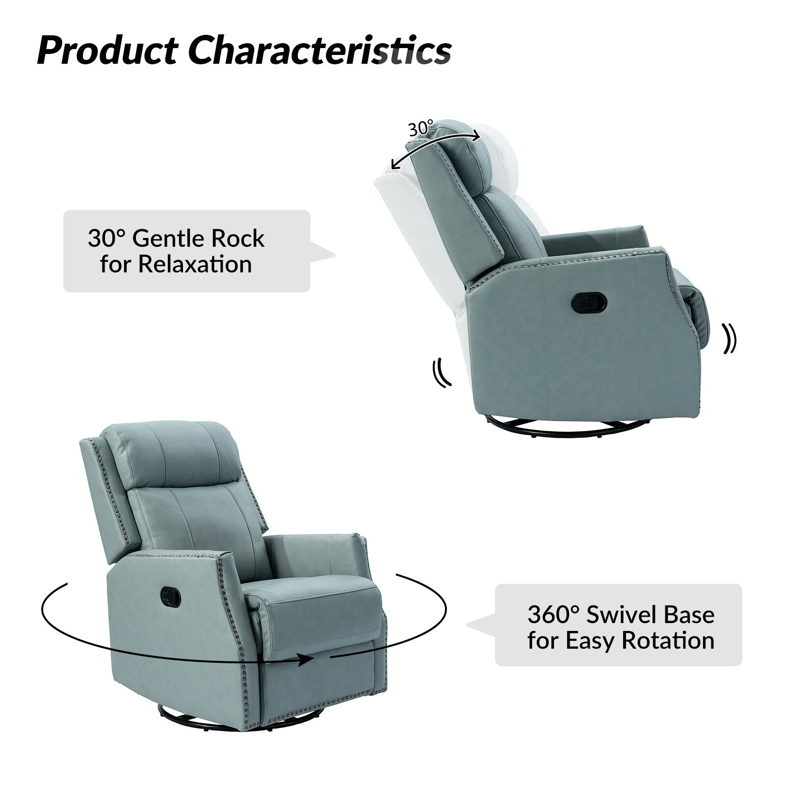 - Style contemporain : cet ensemble de fauteuil inclinable pivotant avec garnitures à têtes de clous convient à tous les types de décoration de salon.