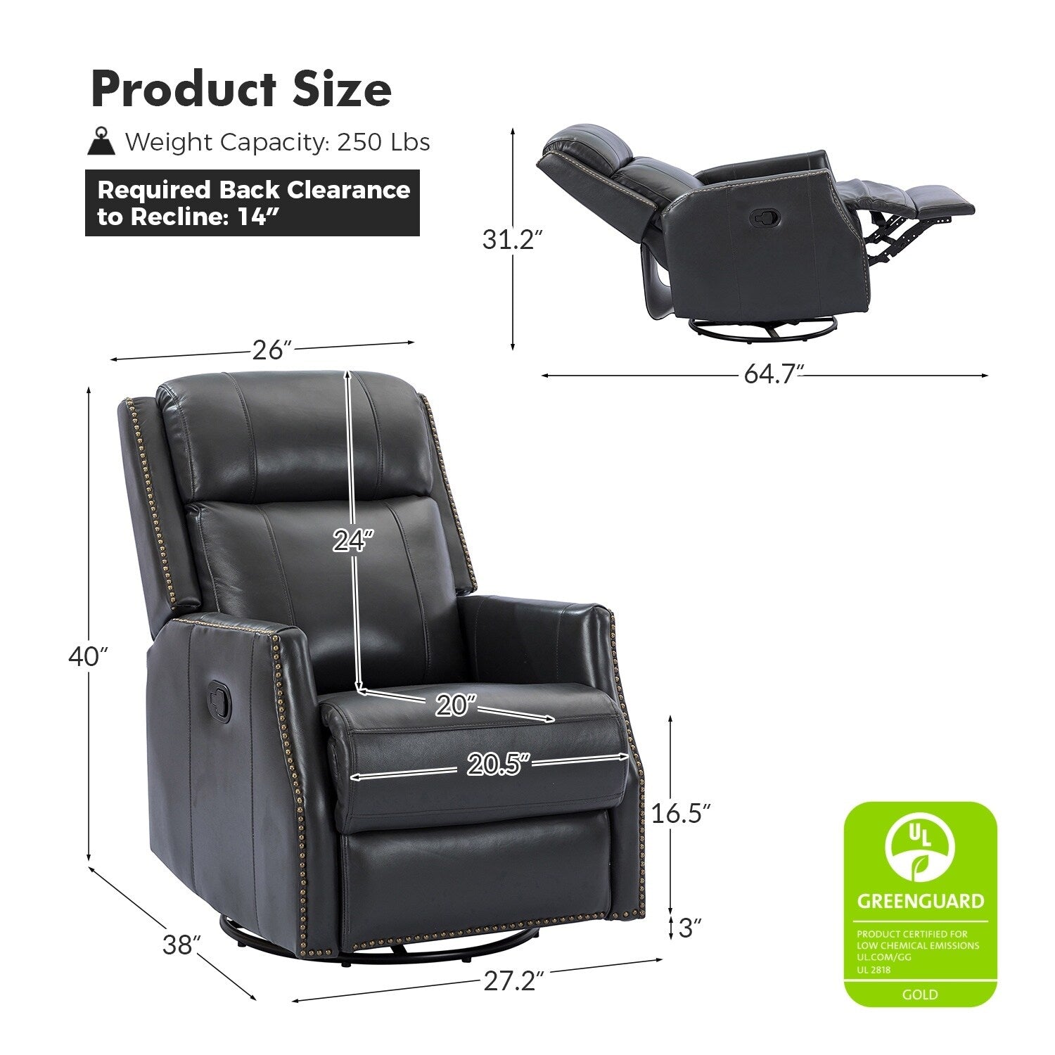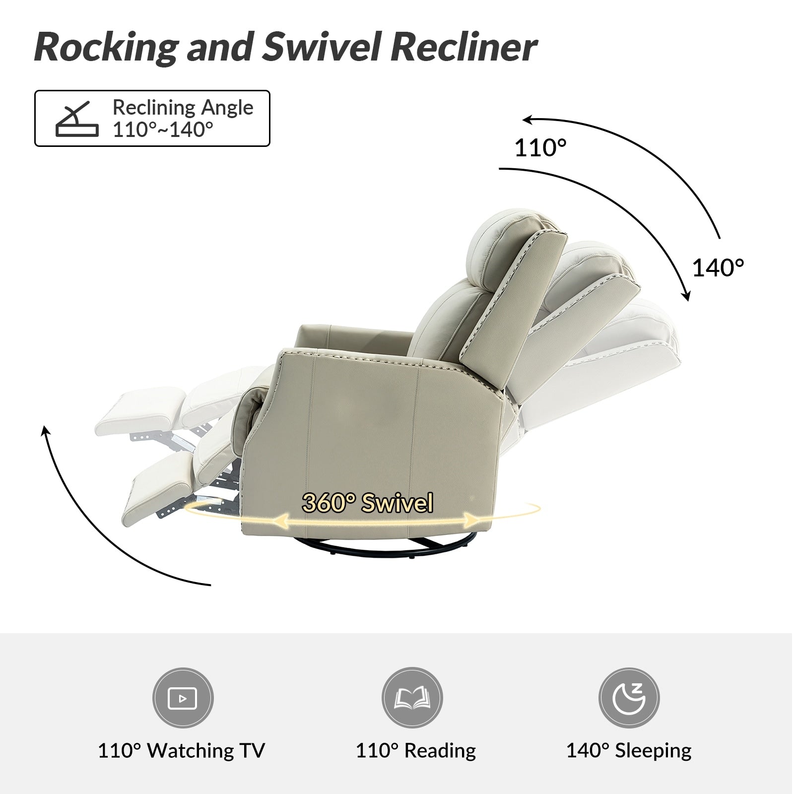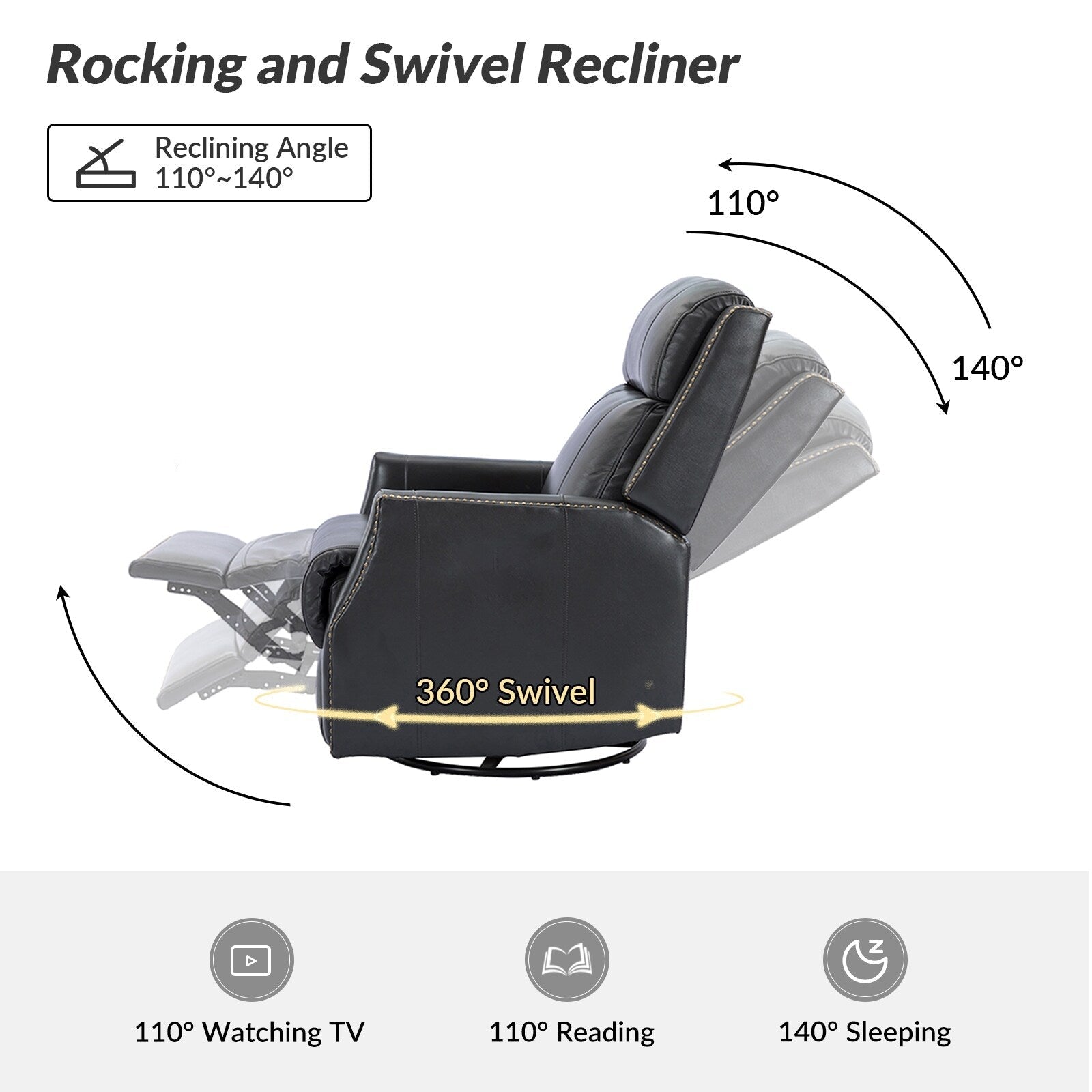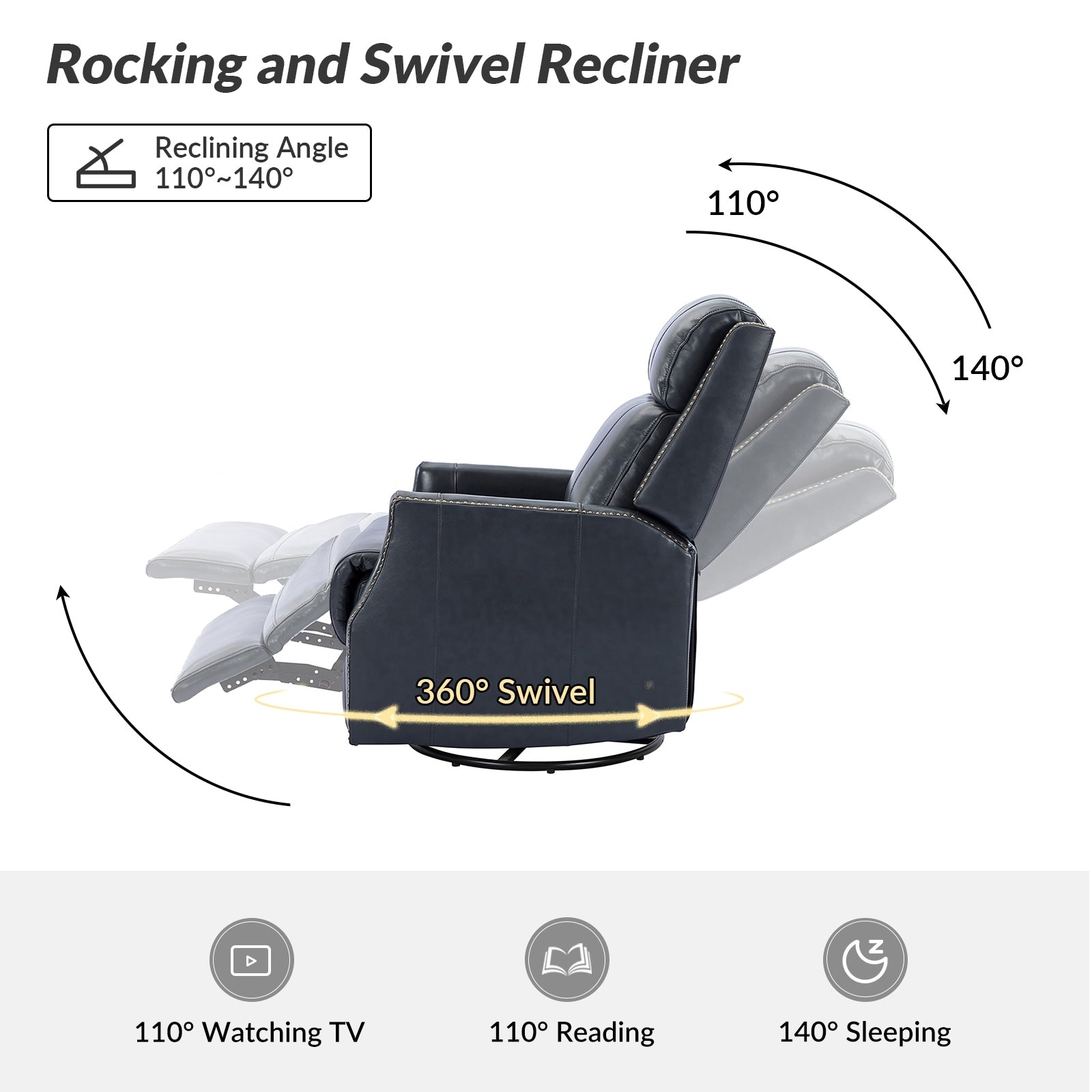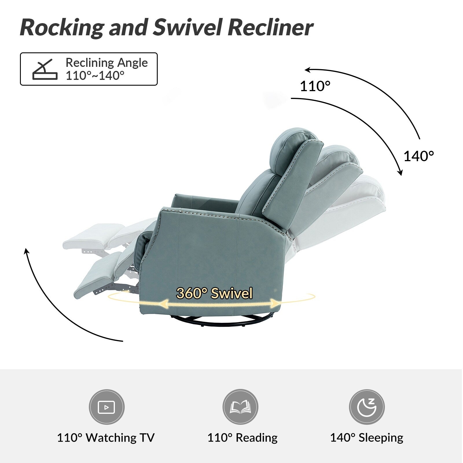 - Style contemporain : cet ensemble de fauteuil inclinable pivotant avec garnitures à têtes de clous convient à tous les types de décoration de salon.